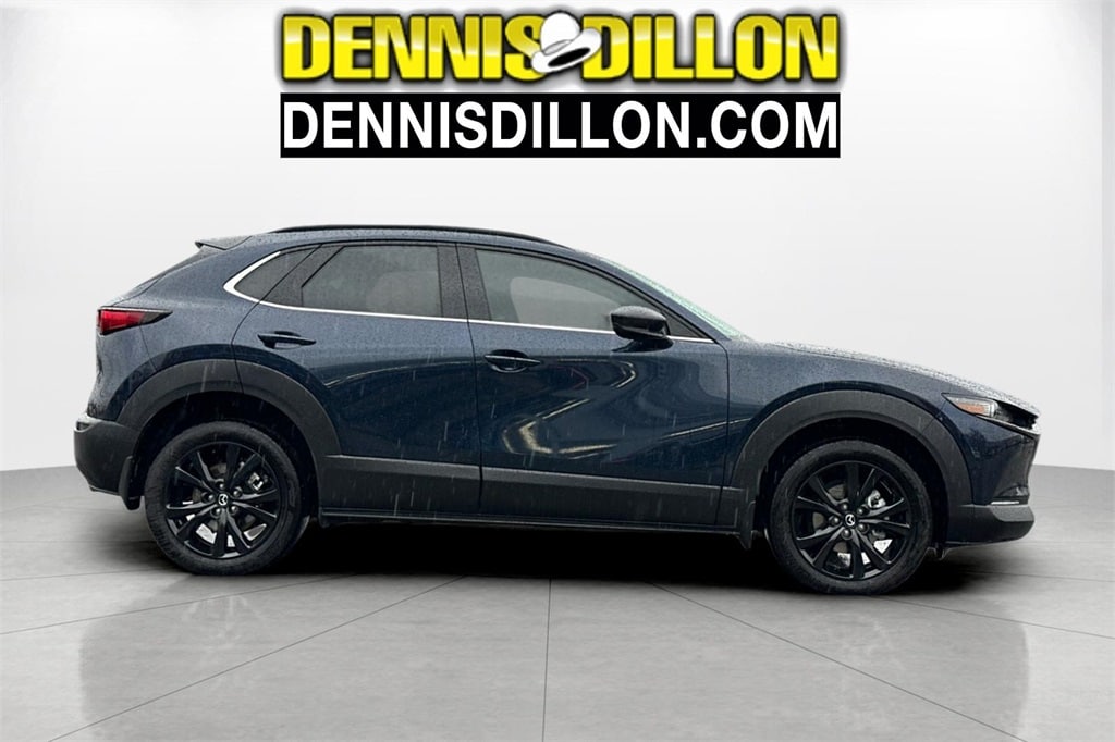 Certified. Clean CARFAX. Deep Crystal Blue Mica 2025 Mazda CX-30 2.5 Turbo Premium Package AWD 6-Speed Automatic 2.5L I4 12 Speakers, 4-Wheel Disc Brakes, ABS brakes, Air Conditioning, Alloy wheels, AM/FM radio: SiriusXM, AppLink/Apple CarPlay and Android Auto, Auto High-beam Headlights, Auto-dimming Rear-View mirror, Automatic temperature control, Brake assist, Bumpers: body-color, Compass, Delay-off headlights, Driver door bin, Driver vanity mirror, Dual front impact airbags, Dual front side impact airbags, Electronic Stability Control, Emergency communication system: Mazda Connected Services (3-year trial subscription included), Exterior Parking Camera Rear, Front & Rear Splash Guards, Front anti-roll bar, Front Bucket Seats, Front Center Armrest, Front dual zone A/C, Front reading lights, Front wheel independent suspension, Fully automatic headlights, Heads-Up Display, Heated door mirrors, Heated Front Bucket Seats, Heated front seats, Heated steering wheel, Illuminated entry, Knee airbag, Leather Seat Trim, Leather Shift Knob, Leather steering wheel, Low tire pressure warning, MAZDA CONNECT Infotainment System, Memory seat, Navigation system: MAZDA CONNECT, Occupant sensing airbag, Outside temperature display, Overhead airbag, Overhead console, Panic alarm, Passenger door bin, Passenger vanity mirror, Power door mirrors, Power driver seat, Power Liftgate, Power moonroof, Power steering, Power windows, Radio data system, Radio: AM/FM/HD Audio w/Mazda Online Navigation, Rain sensing wipers, Rear seat center armrest, Rear side impact airbag, Rear window defroster, Rear window wiper, Remote keyless entry, Speed control, Speed-sensing steering, Split folding rear seat, Spoiler, Steering wheel mounted audio controls, Tachometer, Telescoping steering wheel, Tilt steering wheel, Traction control, Trip computer, Turn signal indicator mirrors, Variably intermittent wipers, Wheels: 18" x 7J Aluminum Alloy, ///MAZDA CERTIFIED///.