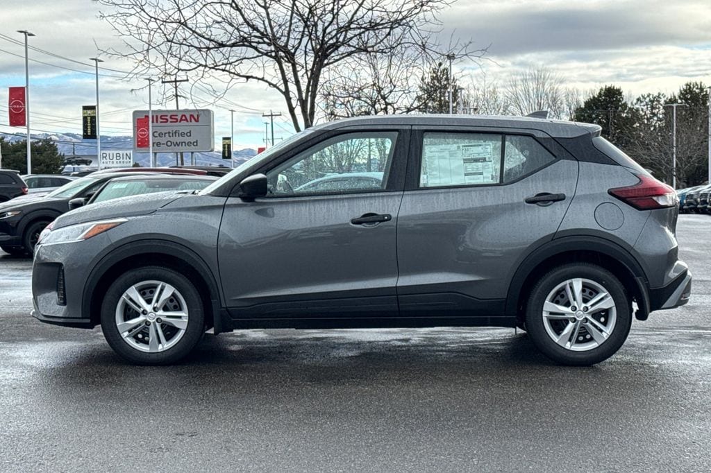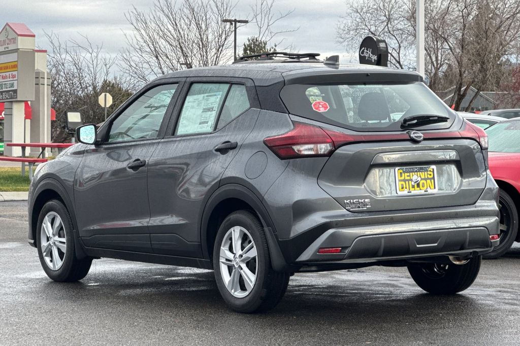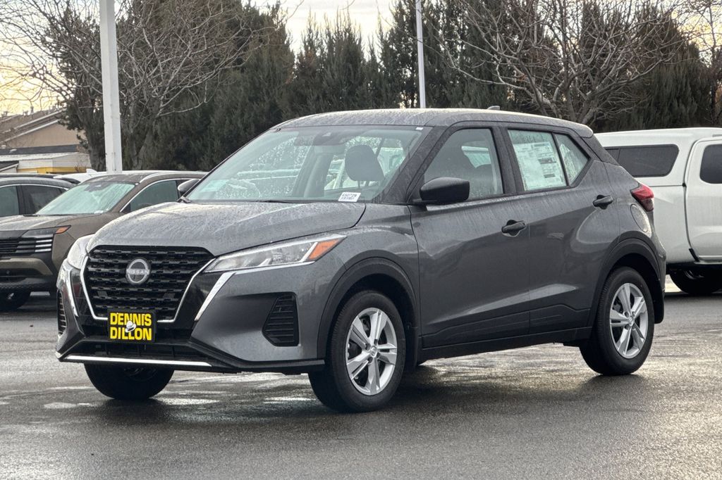 Gun Metallic 2025 Nissan Kicks Play S 4D Sport Utility FWD CVT with Xtronic 1.6L 4-Cylinder DOHC 16V 16" Steel Wheels w/Full Covers, 6 Speakers, ABS brakes, Air Conditioning, AM/FM radio, Apple CarPlay/Android Auto, Auto High-beam Headlights, Blind Spot Warning, Brake assist, Bumpers: body-color, Carpeted Floor Mats w/Cargo Mat, Center Armrest w/Storage, Cloth Seat Trim w/Single Stitch, Door Pocket Light, Driver door bin, Driver vanity mirror, Driver's Seat Mounted Armrest, Dual front impact airbags, Dual front side impact airbags, Electronic Stability Control, Frameless Auto-Dimming Mirror, Front anti-roll bar, Front Bucket Seats, Front reading lights, Front wheel independent suspension, Fully automatic headlights, Illuminated entry, Interior Ambient Lighting, Interior Electronics Package, Knee airbag, Low tire pressure warning, Occupant sensing airbag, Outside temperature display, Overhead airbag, Panic alarm, Passenger door bin, Passenger vanity mirror, Power door mirrors, Power steering, Power windows, Radio data system, Radio: AM/FM Audio System, Rear Parking Sensors, Rear reading lights, Rear side impact airbag, Rear window defroster, Rear window wiper, Remote keyless entry, Speed control, Splash Guards Grain (4 Piece), Split folding rear seat, Sport steering wheel, Steering wheel mounted audio controls, Tachometer, Telescoping steering wheel, Tilt steering wheel, Traction control, Trip computer, Universal Remote, Variably intermittent wipers.