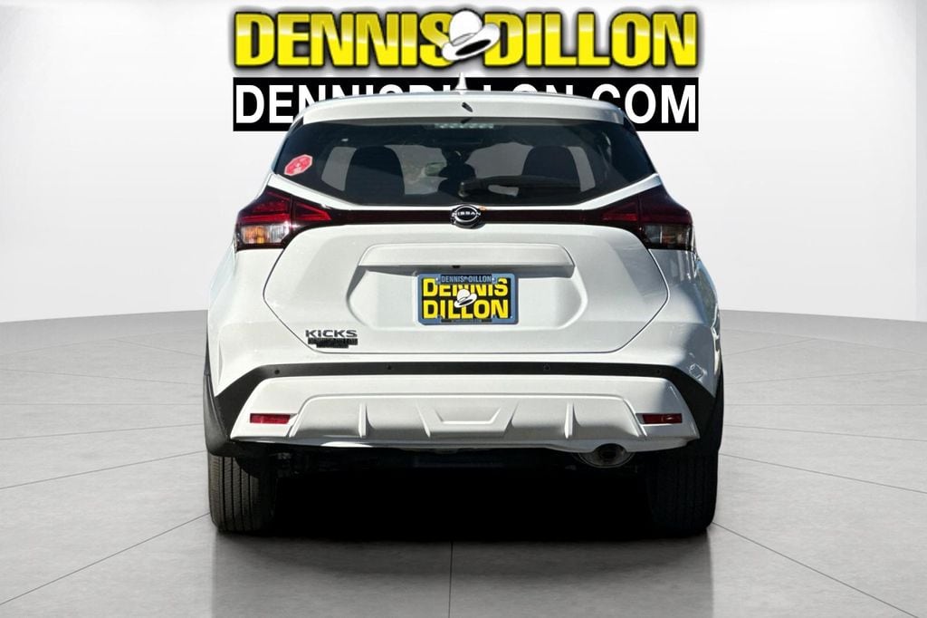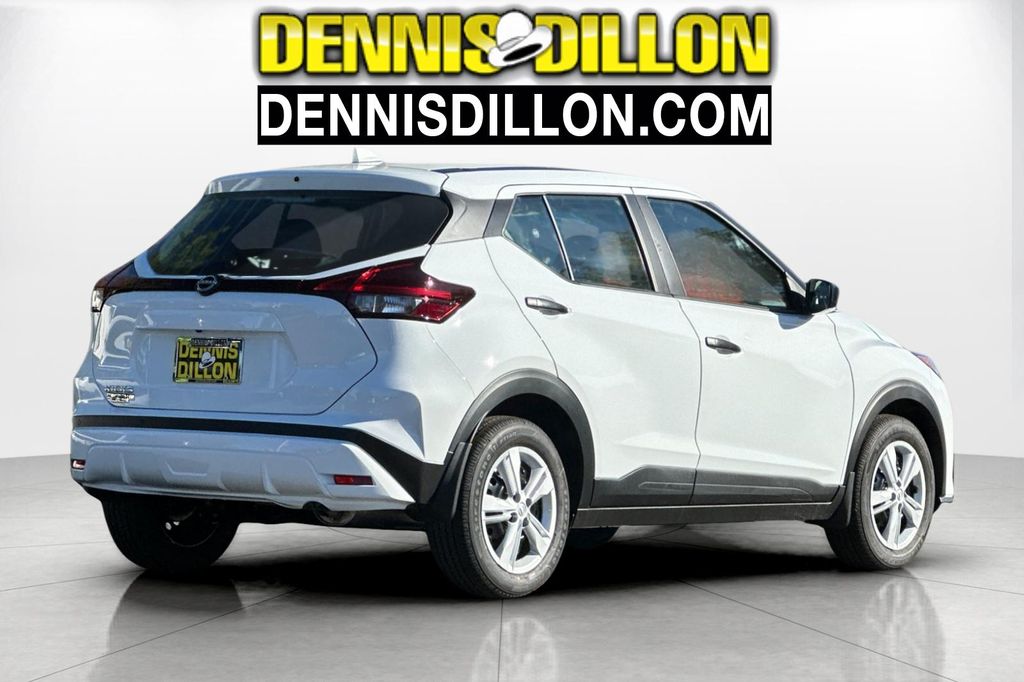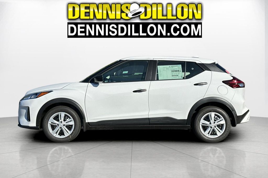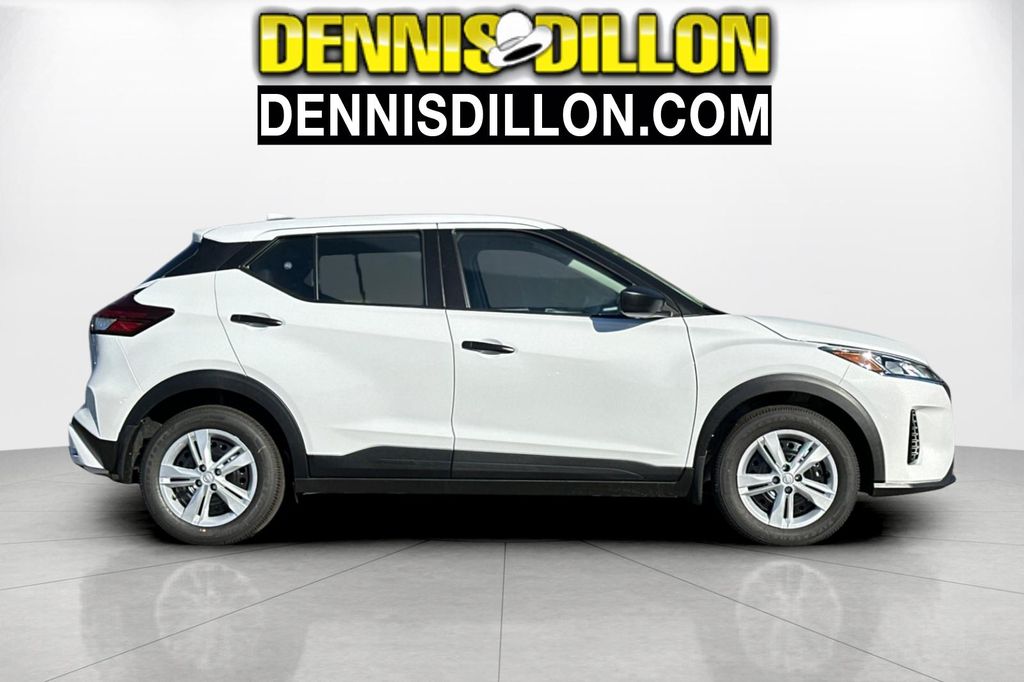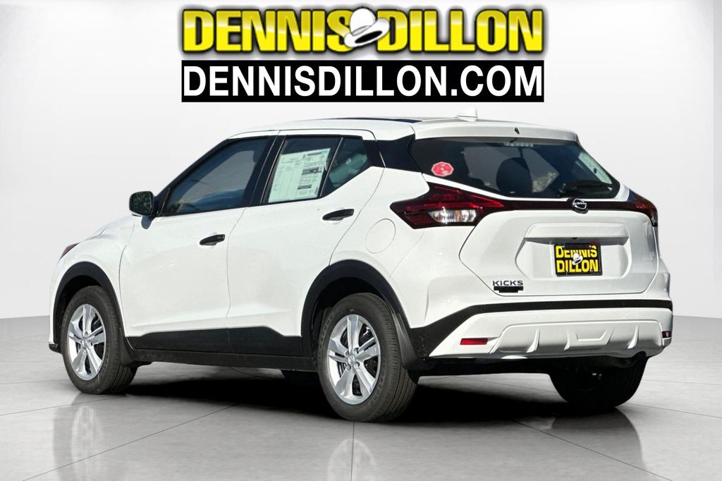 Fresh Powder 2025 Nissan Kicks Play S 4D Sport Utility FWD CVT with Xtronic 1.6L 4-Cylinder DOHC 16V 16" Steel Wheels w/Full Covers, 6 Speakers, ABS brakes, Air Conditioning, AM/FM radio, Apple CarPlay/Android Auto, Auto High-beam Headlights, Blind Spot Warning, Brake assist, Bumpers: body-color, Carpeted Floor Mats w/Cargo Mat, Center Armrest w/Storage, Cloth Seat Trim w/Single Stitch, Driver door bin, Driver vanity mirror, Driver's Seat Mounted Armrest, Dual front impact airbags, Dual front side impact airbags, Electronic Stability Control, Front anti-roll bar, Front Bucket Seats, Front reading lights, Front wheel independent suspension, Fully automatic headlights, Illuminated entry, Knee airbag, Low tire pressure warning, Occupant sensing airbag, Outside temperature display, Overhead airbag, Panic alarm, Passenger door bin, Passenger vanity mirror, Power door mirrors, Power steering, Power windows, Radio data system, Radio: AM/FM Audio System, Rear Parking Sensors, Rear reading lights, Rear side impact airbag, Rear window defroster, Rear window wiper, Remote keyless entry, Speed control, Splash Guards Grain (4 Piece), Split folding rear seat, Sport steering wheel, Steering wheel mounted audio controls, Tachometer, Telescoping steering wheel, Tilt steering wheel, Traction control, Trip computer, Variably intermittent wipers.