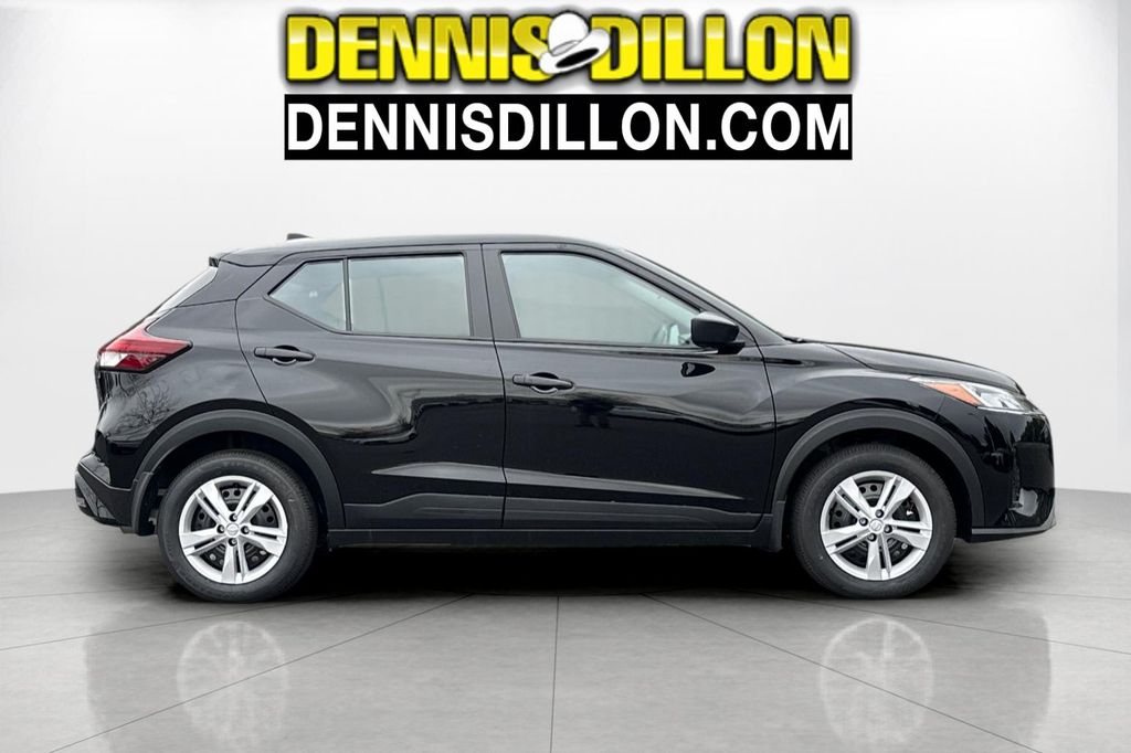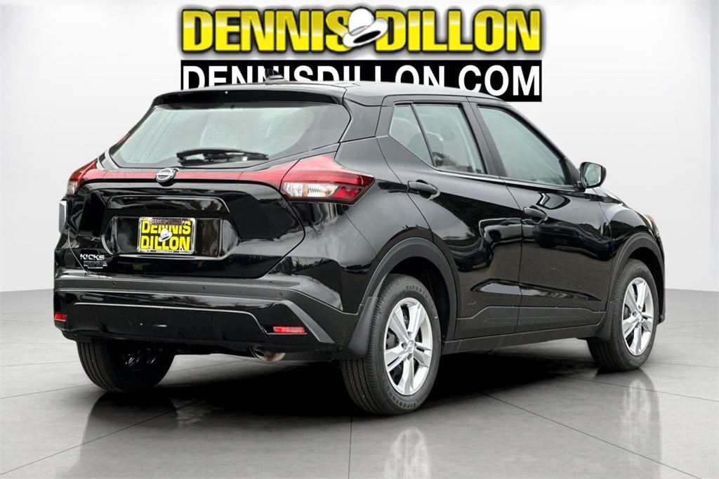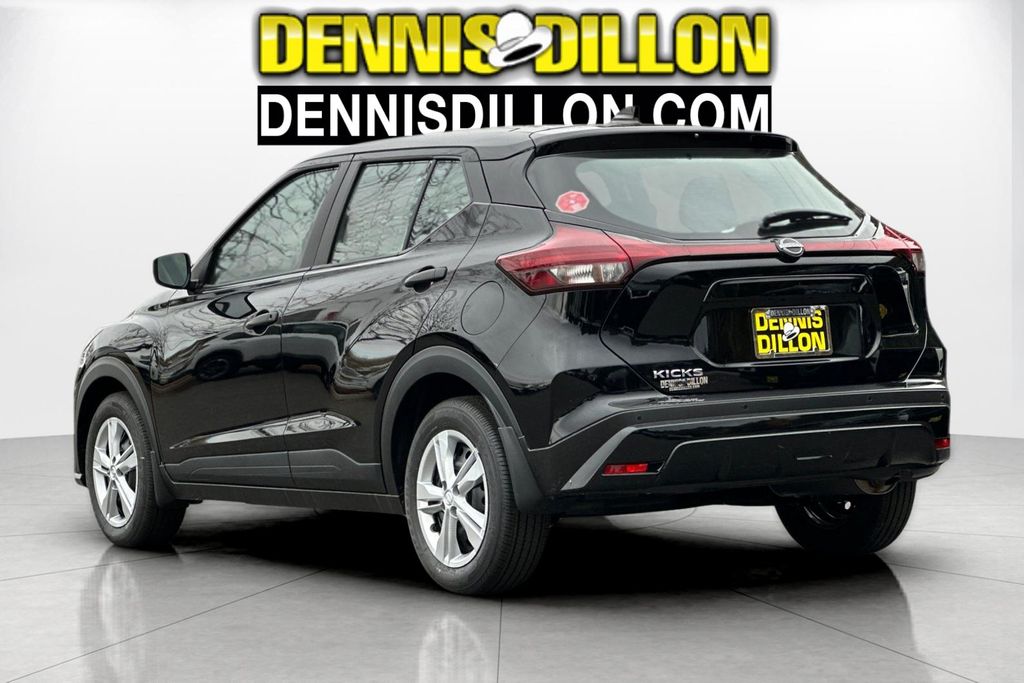 Super Black 2025 Nissan Kicks Play S 4D Sport Utility FWD CVT with Xtronic 1.6L 4-Cylinder DOHC 16V 16" Steel Wheels w/Full Covers, 6 Speakers, ABS brakes, Air Conditioning, AM/FM radio, Apple CarPlay/Android Auto, Auto High-beam Headlights, Blind Spot Warning, Brake assist, Bumpers: body-color, Carpeted Floor Mats w/Cargo Mat, Center Armrest w/Storage, Cloth Seat Trim w/Single Stitch, Driver door bin, Driver vanity mirror, Driver's Seat Mounted Armrest, Dual front impact airbags, Dual front side impact airbags, Electronic Stability Control, Front anti-roll bar, Front Bucket Seats, Front reading lights, Front wheel independent suspension, Fully automatic headlights, Illuminated entry, Knee airbag, Low tire pressure warning, Occupant sensing airbag, Outside temperature display, Overhead airbag, Panic alarm, Passenger door bin, Passenger vanity mirror, Power door mirrors, Power steering, Power windows, Radio data system, Radio: AM/FM Audio System, Rear Parking Sensors, Rear reading lights, Rear side impact airbag, Rear window defroster, Rear window wiper, Remote keyless entry, Speed control, Splash Guards Grain (4 Piece), Split folding rear seat, Sport steering wheel, Steering wheel mounted audio controls, Tachometer, Telescoping steering wheel, Tilt steering wheel, Traction control, Trip computer, Variably intermittent wipers.