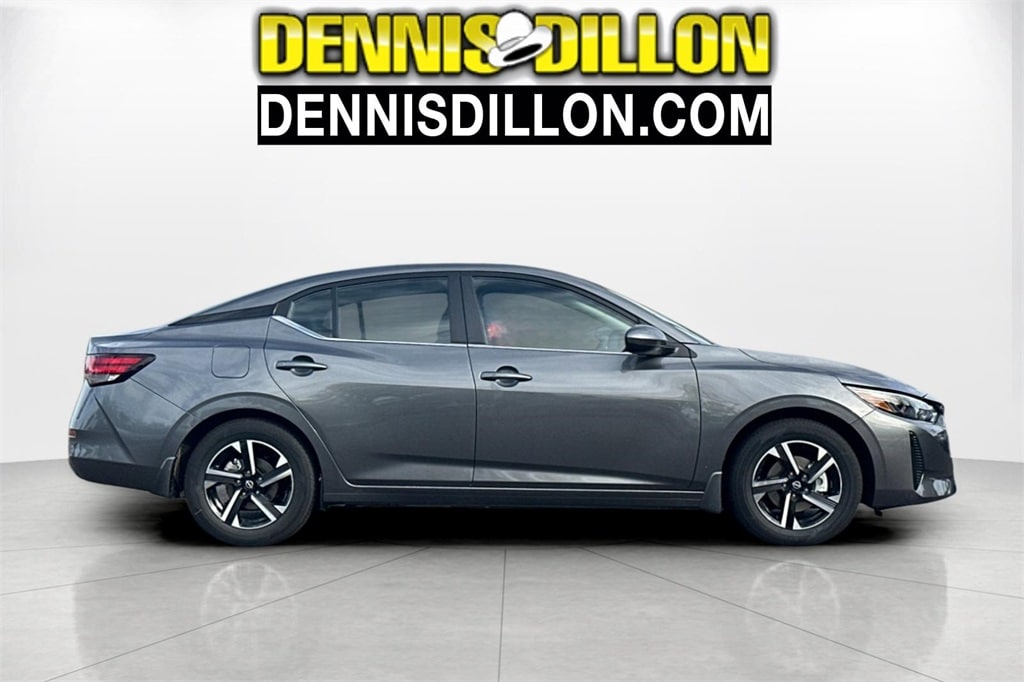 Gun Metallic 2025 Nissan Sentra SV 4D Sedan FWD CVT with Xtronic 2.0L I4 DOHC 16" Alloy Wheels, 4-Wheel Disc Brakes, 8 Speakers, ABS brakes, Air Conditioning, All-Weather Package, Alloy wheels, AM/FM radio: SiriusXM, Auto High-beam Headlights, Blind Spot Warning, Body Colored Splash Guards (4-Piece), Brake assist, Bumpers: body-color, Carpeted Floor Mats w/Trunk Mat, Clear Rear Bumper Protector, Delay-off headlights, Door Sill Plates, Driver door bin, Driver vanity mirror, Dual front impact airbags, Dual front side impact airbags, Dual Zone Auto Climate Control, Electronic Stability Control, Four wheel independent suspension, Front anti-roll bar, Front Bucket Seats, Front Center Armrest, Front reading lights, Fully automatic headlights, Heated Exterior Mirrors, Heated Front Seats, Illuminated entry, Knee airbag, Leather-Wrapped Heated Steering Wheel, Low tire pressure warning, NissanConnect featuring Apple CarPlay and Android Auto, Occupant sensing airbag, Outside temperature display, Overhead airbag, Overhead console, Panic alarm, Passenger door bin, Passenger vanity mirror, Power door mirrors, Power steering, Power windows, Radio data system, Radio: AM/FM w/RDS/MP3/Aux-In, Rear anti-roll bar, Rear Parking Sensors, Rear side impact airbag, Rear window defroster, Remote Engine Start, Remote keyless entry, Security system, Speed control, Speed-sensing steering, Split folding rear seat, Steering wheel mounted audio controls, Tachometer, Telescoping steering wheel, Tilt steering wheel, Traction control, Trip computer, Upgraded Cloth Seat Trim, Variably intermittent wipers.