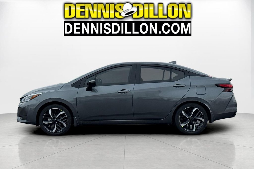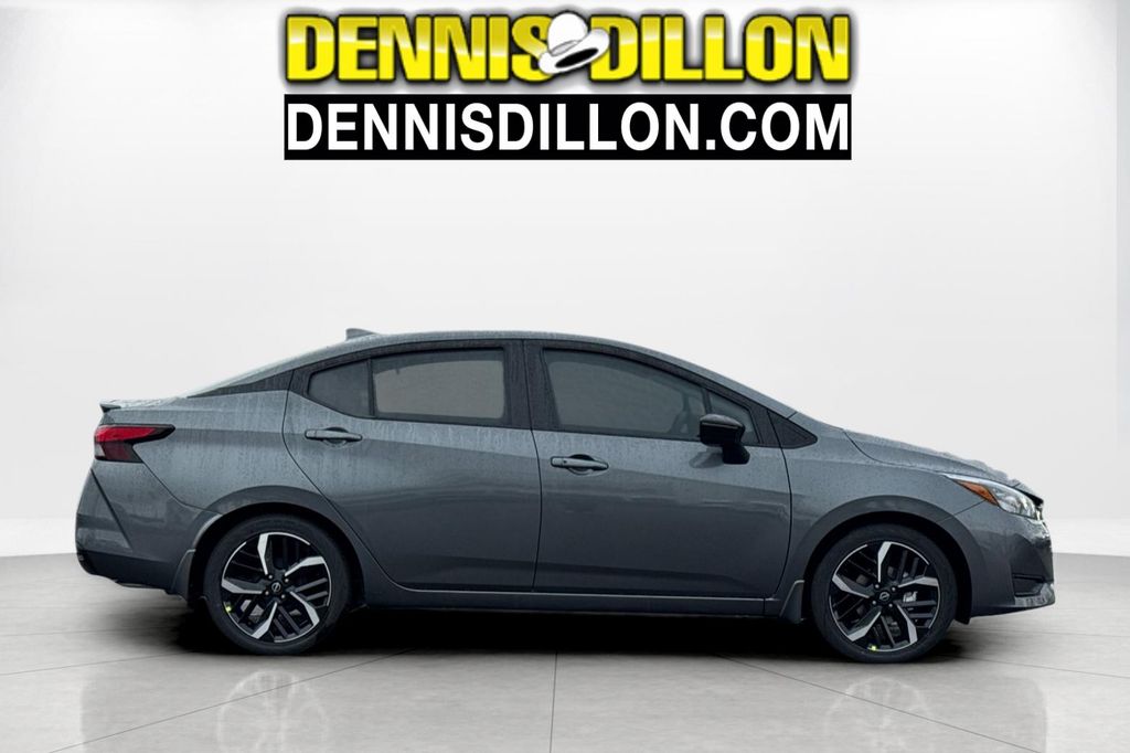 Gun Metallic 2025 Nissan Versa 1.6 SR 4D Sedan FWD CVT 1.6L I4 DOHC 16V 17" Aluminum Alloy Wheels, 6 Speakers, ABS brakes, Air Conditioning, Alloy wheels, AM/FM radio: SiriusXM, Apple CarPlay/Android Auto, Auto High-beam Headlights, Automatic temperature control, Blind Spot Warning, Brake assist, Bumpers: body-color, Carpeted Floor Mats & Trunk Mat (5-Piece Set), Delay-off headlights, Driver door bin, Driver vanity mirror, Dual front impact airbags, Dual front side impact airbags, Electronic Stability Control, Emergency communication system, Front anti-roll bar, Front Bucket Seats, Front Center Armrest, Front reading lights, Front wheel independent suspension, Fully automatic headlights, Heated door mirrors, Heated Front Bucket Seats, Heated front seats, Illuminated entry, Knee airbag, Leather steering wheel, Low tire pressure warning, Occupant sensing airbag, Outside temperature display, Overhead airbag, Panic alarm, Passenger door bin, Passenger vanity mirror, Power door mirrors, Power steering, Power windows, Radio data system, Radio: AM/FM Audio System, Rear Parking Sensors, Rear side impact airbag, Rear window defroster, Remote keyless entry, Shopping Bag Hooks, Speed control, Splash Guards, Split folding rear seat, Spoiler, SR Fabric Seat Trim, Steering wheel mounted audio controls, Tachometer, Telescoping steering wheel, Tilt steering wheel, Traction control, Trip computer, Trunk Net, Trunk Package, Turn signal indicator mirrors, Variably intermittent wipers.