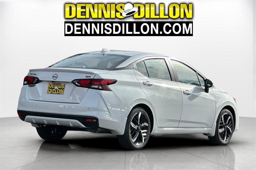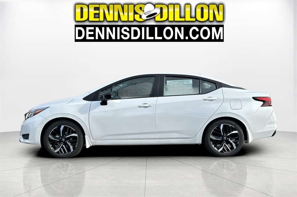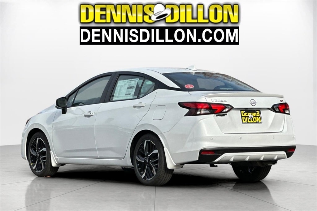 Aspen White Tricoat 2025 Nissan Versa 1.6 SR 4D Sedan FWD CVT 1.6L I4 DOHC 16V 17" Aluminum Alloy Wheels, 6 Speakers, ABS brakes, Air Conditioning, Alloy wheels, AM/FM radio: SiriusXM, Apple CarPlay/Android Auto, Auto High-beam Headlights, Automatic temperature control, Blind Spot Warning, Brake assist, Bumpers: body-color, Carpeted Floor Mats & Trunk Mat (5-Piece Set), Delay-off headlights, Driver door bin, Driver vanity mirror, Dual front impact airbags, Dual front side impact airbags, Electronic Stability Control, Emergency communication system, Front anti-roll bar, Front Bucket Seats, Front Center Armrest, Front reading lights, Front wheel independent suspension, Fully automatic headlights, Heated door mirrors, Heated Front Bucket Seats, Heated front seats, Illuminated entry, Knee airbag, Leather steering wheel, Low tire pressure warning, Occupant sensing airbag, Outside temperature display, Overhead airbag, Panic alarm, Passenger door bin, Passenger vanity mirror, Power door mirrors, Power steering, Power windows, Premium Paint, Radio data system, Radio: AM/FM Audio System, Rear Parking Sensors, Rear side impact airbag, Rear window defroster, Remote keyless entry, Shopping Bag Hooks, Speed control, Splash Guards, Split folding rear seat, Spoiler, SR Fabric Seat Trim, Steering wheel mounted audio controls, Tachometer, Telescoping steering wheel, Tilt steering wheel, Traction control, Trip computer, Trunk Net, Trunk Package, Turn signal indicator mirrors, Variably intermittent wipers.