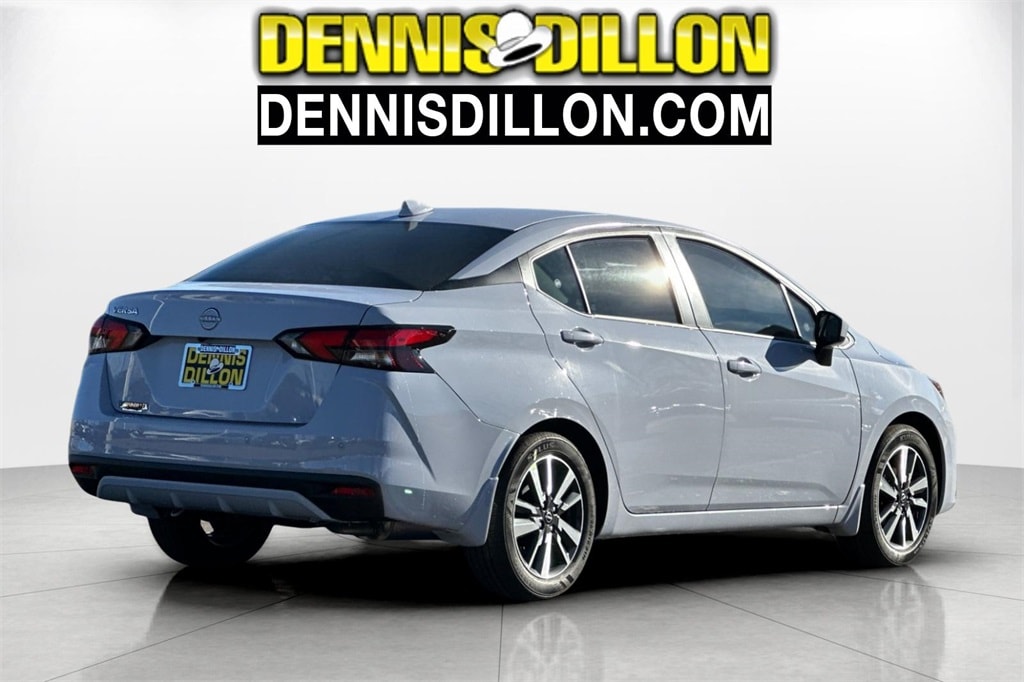 Gray Sky Pearl 2025 Nissan Versa 1.6 SV 4D Sedan FWD CVT 1.6L I4 DOHC 16V 16" Aluminum Alloy Wheels, 4 Speakers, ABS brakes, Air Conditioning, Alloy wheels, Apple CarPlay/Android Auto, Auto High-beam Headlights, Blind Spot Warning, Brake assist, Bumpers: body-color, Carpeted Floor Mats & Trunk Mat (5-Piece Set), Delay-off headlights, Driver door bin, Driver vanity mirror, Dual front impact airbags, Dual front side impact airbags, Electronic Stability Control, Front anti-roll bar, Front Bucket Seats, Front Center Armrest, Front reading lights, Front wheel independent suspension, Fully automatic headlights, Heated door mirrors, Illuminated entry, Knee airbag, Low tire pressure warning, Occupant sensing airbag, Outside temperature display, Overhead airbag, Panic alarm, Passenger door bin, Passenger vanity mirror, Power door mirrors, Power steering, Power windows, Premium Paint, Radio data system, Radio: AM/FM Audio System, Rear Parking Sensors, Rear side impact airbag, Rear window defroster, Remote keyless entry, Shopping Bag Hooks, Speed control, Splash Guards, Split folding rear seat, Steering wheel mounted audio controls, Tachometer, Telescoping steering wheel, Tilt steering wheel, Traction control, Trip computer, Trunk Net, Trunk Package, Upgraded Cloth Seat Trim, Variably intermittent wipers.