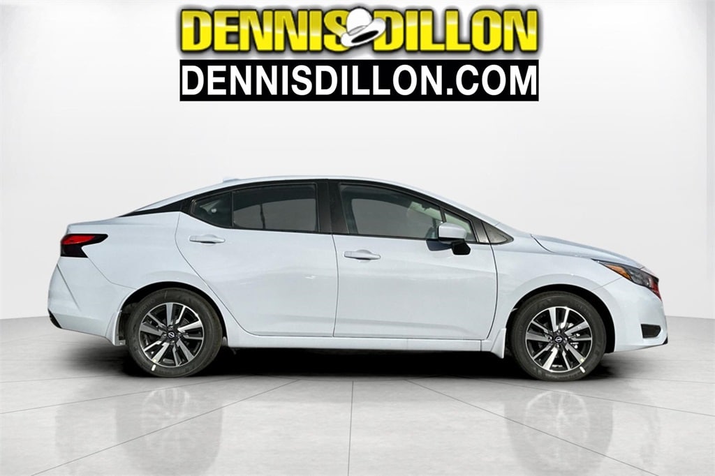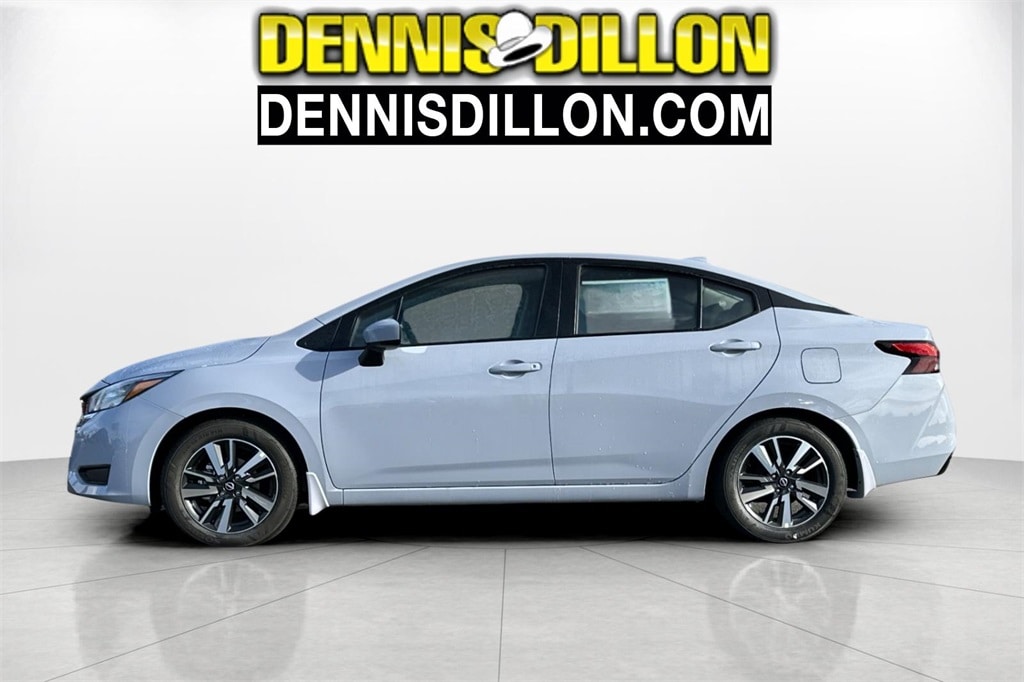 Gray Sky Pearl 2025 Nissan Versa 1.6 SV 4D Sedan FWD CVT 1.6L I4 DOHC 16V 16" Aluminum Alloy Wheels, 4 Speakers, ABS brakes, Air Conditioning, Alloy wheels, Apple CarPlay/Android Auto, Auto High-beam Headlights, Blind Spot Warning, Brake assist, Bumpers: body-color, Carpeted Floor Mats & Trunk Mat (5-Piece Set), Delay-off headlights, Driver door bin, Driver vanity mirror, Dual front impact airbags, Dual front side impact airbags, Electronic Stability Control, Front anti-roll bar, Front Bucket Seats, Front Center Armrest, Front reading lights, Front wheel independent suspension, Fully automatic headlights, Heated door mirrors, Illuminated entry, Knee airbag, Low tire pressure warning, Occupant sensing airbag, Outside temperature display, Overhead airbag, Panic alarm, Passenger door bin, Passenger vanity mirror, Power door mirrors, Power steering, Power windows, Premium Paint, Radio data system, Radio: AM/FM Audio System, Rear Parking Sensors, Rear side impact airbag, Rear window defroster, Remote keyless entry, Shopping Bag Hooks, Speed control, Splash Guards, Split folding rear seat, Steering wheel mounted audio controls, Tachometer, Telescoping steering wheel, Tilt steering wheel, Traction control, Trip computer, Trunk Net, Trunk Package, Upgraded Cloth Seat Trim, USB Charging Cable Set, Variably intermittent wipers.