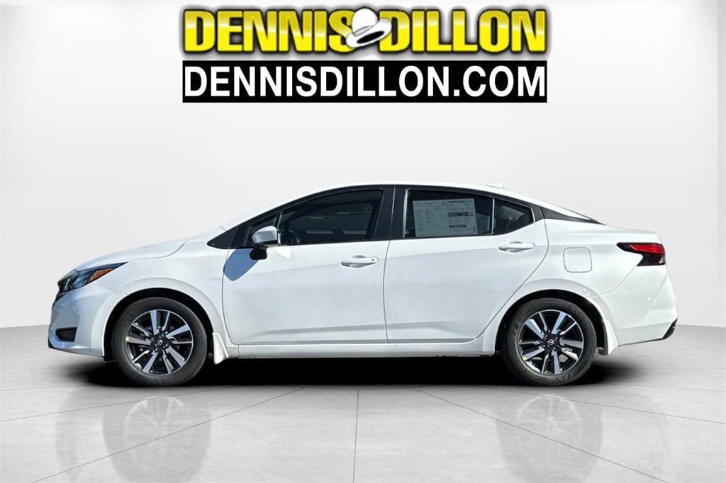 Aspen White Tricoat 2025 Nissan Versa 1.6 SV 4D Sedan FWD CVT 1.6L I4 DOHC 16V 16" Aluminum Alloy Wheels, 4 Speakers, ABS brakes, Air Conditioning, Alloy wheels, Apple CarPlay/Android Auto, Auto High-beam Headlights, Blind Spot Warning, Brake assist, Bumpers: body-color, Carpeted Floor Mats & Trunk Mat (5-Piece Set), Delay-off headlights, Driver door bin, Driver vanity mirror, Dual front impact airbags, Dual front side impact airbags, Electronic Stability Control, Front anti-roll bar, Front Bucket Seats, Front Center Armrest, Front reading lights, Front wheel independent suspension, Fully automatic headlights, Heated door mirrors, Illuminated entry, Knee airbag, Low tire pressure warning, Occupant sensing airbag, Outside temperature display, Overhead airbag, Panic alarm, Passenger door bin, Passenger vanity mirror, Power door mirrors, Power steering, Power windows, Premium Paint, Radio data system, Radio: AM/FM Audio System, Rear Parking Sensors, Rear side impact airbag, Rear window defroster, Remote keyless entry, Shopping Bag Hooks, Speed control, Splash Guards, Split folding rear seat, Steering wheel mounted audio controls, Tachometer, Telescoping steering wheel, Tilt steering wheel, Traction control, Trip computer, Trunk Net, Trunk Package, Upgraded Cloth Seat Trim, Variably intermittent wipers.