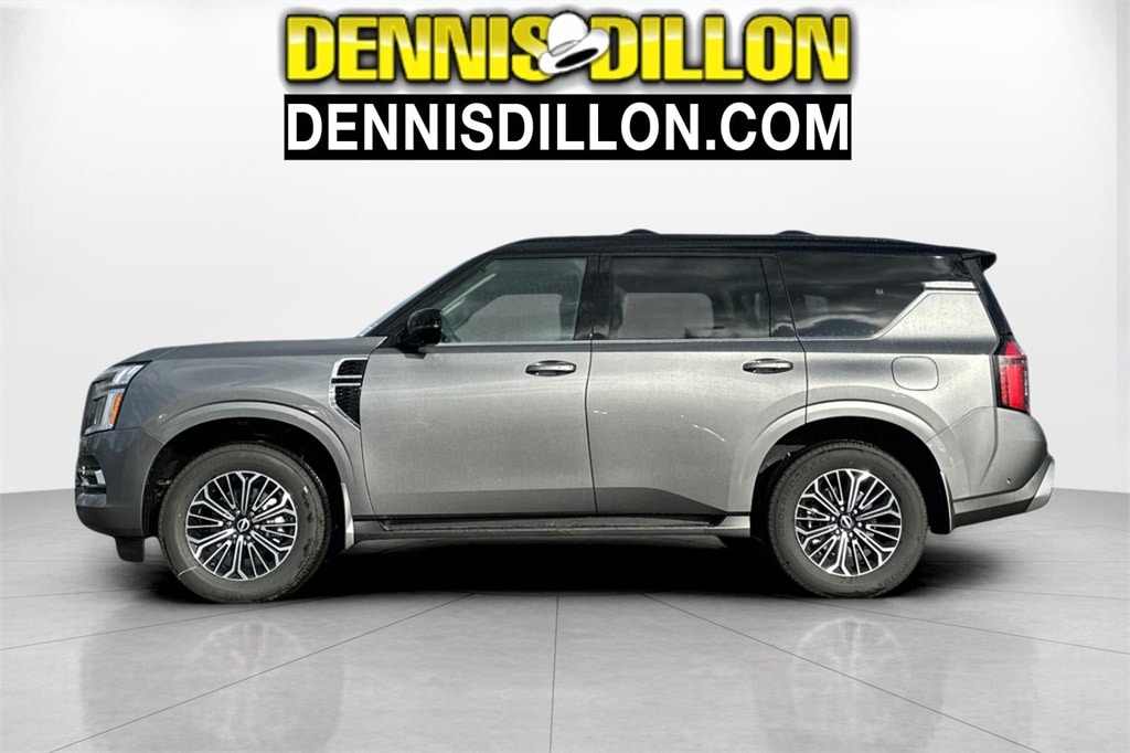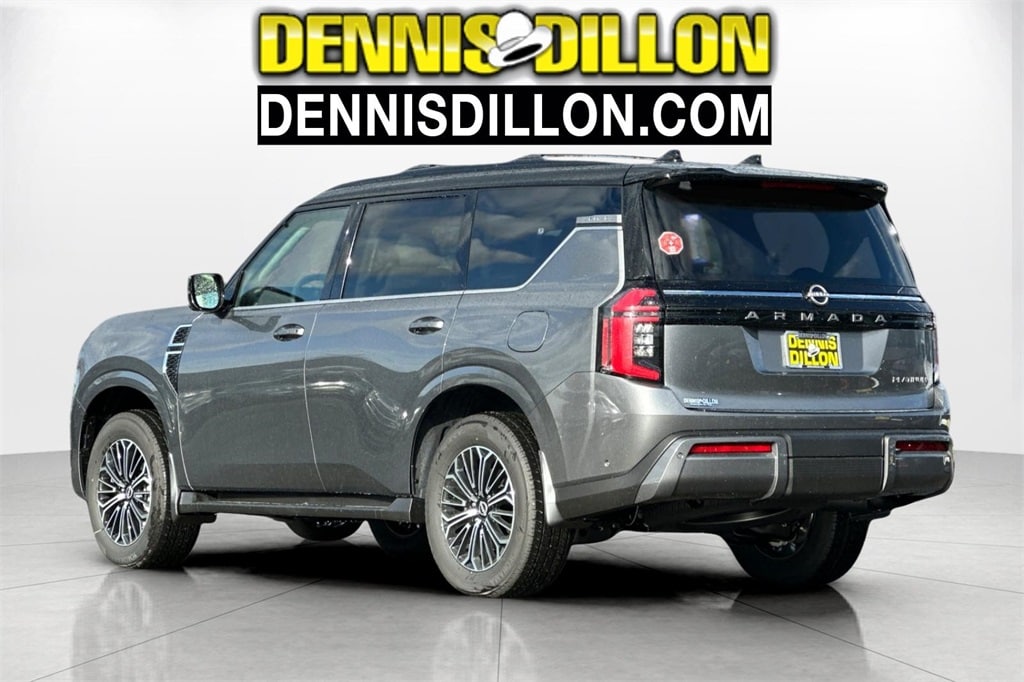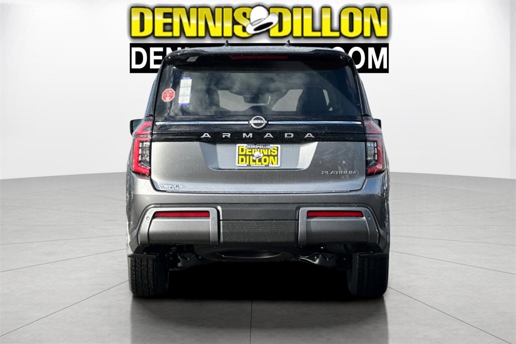Gun Metallic/Super Black 2026 Nissan Armada Platinum 4D Sport Utility 4WD 9-Speed Automatic 3.5L DOHC 12 Speakers, 2-Tone Roof, 3rd row seats: split-bench, 4-Wheel Disc Brakes, ABS brakes, Air Conditioning, Alloy wheels, AM/FM radio: SiriusXM w/360L, Anti-whiplash front head restraints, Apple CarPlay/Android Auto, Auto High-beam Headlights, Auto tilt-away steering wheel, Auto-dimming door mirrors, Auto-dimming Rear-View mirror, Auto-leveling suspension, Automatic temperature control, Brake assist, Bumpers: body-color, Carpeted Floor Mats with Captain Chairs, Climate Controlled Heated and Ventilated Front Seats, Compass, Cross Bars, Delay-off headlights, Driver door bin, Driver vanity mirror, Dual front impact airbags, Dual front side impact airbags, Electronic Stability Control, Emergency communication system: NissanConnect Services, Four wheel independent suspension, Front anti-roll bar, Front Bucket Seats, Front Center Armrest, Front dual zone A/C, Front fog lights, Front reading lights, Fully automatic headlights, Garage door transmitter: HomeLink, Genuine wood dashboard insert, Heads-Up Display, Heated door mirrors, Heated front seats, Heated rear seats, Heated steering wheel, HVAC memory, Illuminated entry, Illuminated Kick Plates, Knee airbag, Leather steering wheel, Low tire pressure warning, Memory seat, Navigation system: Google Maps, Occupant sensing airbag, Outside temperature display, Overhead airbag, Overhead console, Panic alarm, Passenger door bin, Passenger vanity mirror, Power door mirrors, Power driver seat, Power Liftgate, Power moonroof, Power passenger seat, Power steering, Power windows, ProPILOT Assist 2.1, Quilted Leather Seat Trim, Radio: NissanConnect with SiriusXM 360L, Rain sensing wipers, Rear air conditioning, Rear anti-roll bar, Rear Bumper Protector, Rear reading lights, Rear window defroster, Rear window wiper, Reclining 3rd row seat, Remote keyless entry, Security system, Speed control, Speed-sensing steering, Speed-Sensitive Wipers, Splash Guards, Split folding rear seat, Spoiler, Steering wheel memory, Steering wheel mounted audio controls, Tachometer, Telescoping steering wheel, Tilt steering wheel, Traction control, Trip computer, Turn signal indicator mirrors, Variably intermittent wipers, Ventilated front seats, Voltmeter, Wheels: 20" x 8.5J Machined and Painted Alloy.
