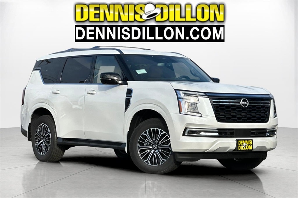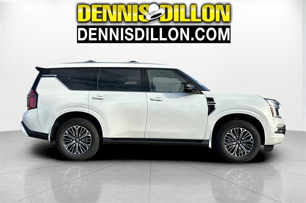 Aspen White Tricoat 2026 Nissan Armada SL 4D Sport Utility 4WD 9-Speed Automatic 3.5L DOHC 12 Speakers, 2nd Row Center Console with Two Cupholders, 2nd Row Outboard Captain's Chairs with Armrests, 3rd row seats: split-bench, 4-Wheel Disc Brakes, ABS brakes, Air Conditioning, Alloy wheels, AM/FM radio: SiriusXM w/360L, Anti-whiplash front head restraints, Apple CarPlay/Android Auto, Auto High-beam Headlights, Auto tilt-away steering wheel, Auto-dimming door mirrors, Auto-dimming Rear-View mirror, Auto-leveling suspension, Automatic temperature control, Brake assist, Bumpers: body-color, Captain's Chair Seat Package, Carpeted Floor Mats with Captain Chairs, Compass, Cross Bars, Delay-off headlights, Driver door bin, Driver vanity mirror, Dual front impact airbags, Dual front side impact airbags, Electronic Stability Control, Emergency communication system: NissanConnect Services, EZ Flex Second Row Seating System with One Touch Release, Four wheel independent suspension, Front anti-roll bar, Front Bucket Seats, Front Center Armrest, Front dual zone A/C, Front reading lights, Fully automatic headlights, Garage door transmitter: myQ Connected Garage, Genuine wood dashboard insert, Heated door mirrors, Heated Front Bucket Seats, Heated front seats, Heated steering wheel, HVAC memory, Illuminated entry, Knee airbag, Leather steering wheel, Low tire pressure warning, Memory seat, Navigation system: Google Maps, Occupant sensing airbag, Outside temperature display, Overhead airbag, Overhead console, Panic alarm, Passenger door bin, Passenger vanity mirror, Power door mirrors, Power driver seat, Power Liftgate, Power passenger seat, Power steering, Power windows, Premium Paint, Radio: NissanConnect with SiriusXM 360L, Rain sensing wipers, Rear air conditioning, Rear anti-roll bar, Rear Bumper Protector, Rear reading lights, Rear seat center armrest, Rear window defroster, Rear window wiper, Reclining 3rd row seat, Remote keyless entry, Security system, Speed control, Speed-sensing steering, Speed-Sensitive Wipers, Splash Guards, Split folding rear seat, Spoiler, Steering wheel memory, Steering wheel mounted audio controls, Tachometer, TailorFit Seat Trim, Telescoping steering wheel, Tilt steering wheel, Traction control, Trip computer, Turn signal indicator mirrors, Variably intermittent wipers, Voltmeter, Wheels: 20" x 8.5J Machined and Painted Alloy.