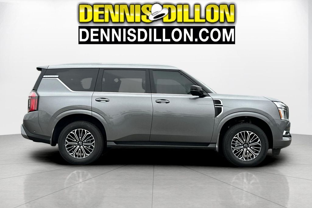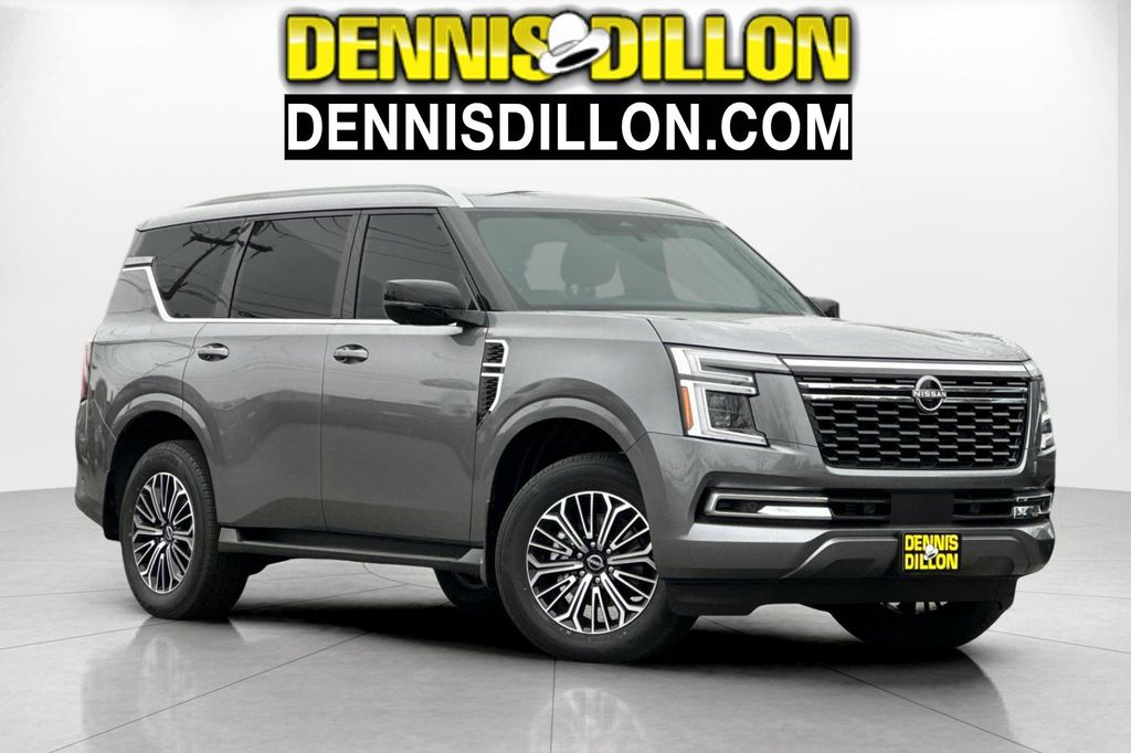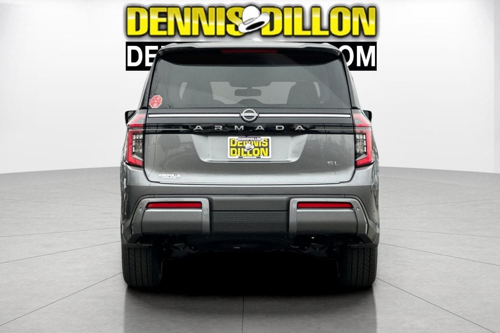 Gun Metallic 2026 Nissan Armada SL 4D Sport Utility 4WD 9-Speed Automatic 3.5L DOHC 12 Speakers, 2nd Row Center Console with Two Cupholders, 2nd Row Outboard Captain's Chairs with Armrests, 3rd row seats: split-bench, 4-Wheel Disc Brakes, ABS brakes, Air Conditioning, Alloy wheels, AM/FM radio: SiriusXM w/360L, Anti-whiplash front head restraints, Apple CarPlay/Android Auto, Auto High-beam Headlights, Auto tilt-away steering wheel, Auto-dimming door mirrors, Auto-dimming Rear-View mirror, Auto-leveling suspension, Automatic temperature control, Brake assist, Bumpers: body-color, Captain's Chair Seat Package, Carpeted Floor Mats with Captain Chairs, Compass, Delay-off headlights, Driver door bin, Driver vanity mirror, Dual front impact airbags, Dual front side impact airbags, Electronic Stability Control, Emergency communication system: NissanConnect Services, EZ Flex Second Row Seating System with One Touch Release, Four wheel independent suspension, Front anti-roll bar, Front Bucket Seats, Front Center Armrest, Front dual zone A/C, Front reading lights, Fully automatic headlights, Garage door transmitter: myQ Connected Garage, Genuine wood dashboard insert, Heated door mirrors, Heated Front Bucket Seats, Heated front seats, Heated steering wheel, HVAC memory, Illuminated entry, Knee airbag, Leather steering wheel, Low tire pressure warning, Memory seat, Navigation system: Google Maps, Occupant sensing airbag, Outside temperature display, Overhead airbag, Overhead console, Panic alarm, Passenger door bin, Passenger vanity mirror, Power door mirrors, Power driver seat, Power Liftgate, Power passenger seat, Power steering, Power windows, Radio: NissanConnect with SiriusXM 360L, Rain sensing wipers, Rear air conditioning, Rear anti-roll bar, Rear Bumper Protector, Rear reading lights, Rear seat center armrest, Rear window defroster, Rear window wiper, Reclining 3rd row seat, Remote keyless entry, Security system, Speed control, Speed-sensing steering, Speed-Sensitive Wipers, Splash Guards, Split folding rear seat, Spoiler, Steering wheel memory, Steering wheel mounted audio controls, Tachometer, TailorFit Seat Trim, Telescoping steering wheel, Tilt steering wheel, Traction control, Trip computer, Turn signal indicator mirrors, Variably intermittent wipers, Voltmeter, Wheels: 20" x 8.5J Machined and Painted Alloy.