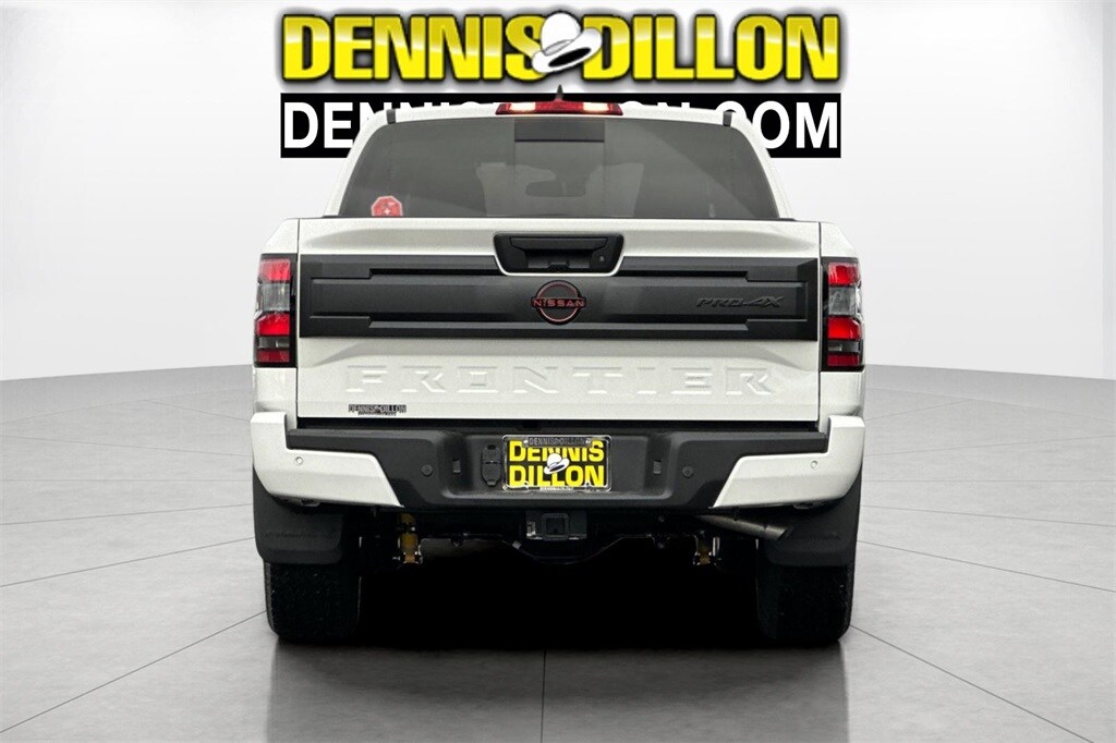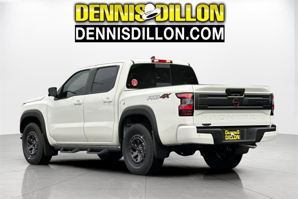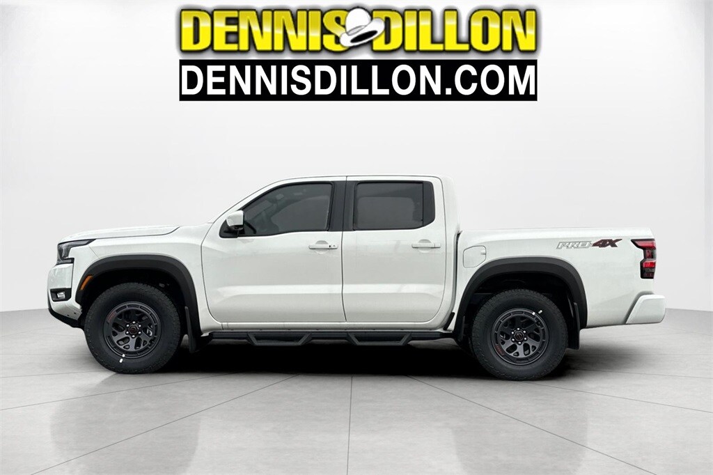 Glacier White 2026 Nissan Frontier PRO-4X 4D Crew Cab 4WD 9-Speed Automatic with Overdrive 3.8L DI DOHC 24V V6 120V Power Outlet in Bed, 120V Power Outlet in Rear Center Console, 17" Painted Alloy Wheels, 3.692 Axle Ratio, 4-Wheel Disc Brakes, 6 Speakers, ABS brakes, Air Conditioning, Alloy wheels, AM/FM radio: SiriusXM, Anti-whiplash front head restraints, Auto High-beam Headlights, Automatic temperature control, Bed Under-Rail Lighting, Blind Spot Warning, Brake assist, Bumpers: body-color, Delay-off headlights, Driver door bin, Driver vanity mirror, Dual front impact airbags, Dual front side impact airbags, Electronic Stability Control, Electronic Tailgate Lock, Emergency communication system, Essentials Kit, Front anti-roll bar, Front Bucket Seats, Front Center Armrest, Front dual zone A/C, Front fog lights, Front reading lights, Front wheel independent suspension, Fully automatic headlights, Heated Front Bucket Seats, Heated Front Seats, Heated Outside Mirrors, Heated Steering Wheel, Illuminated entry, Intelligent Around View Monitor (I-AVM), Knee airbag, Leather steering wheel, Low tire pressure warning, Mud Flaps, Occupant sensing airbag, Off-Road Style Step Rails, Overhead airbag, Overhead console, Panic alarm, Passenger door bin, Passenger vanity mirror, Power door mirrors, Power driver seat, Power passenger seat, Power steering, Power windows, PRO Embroidered Premium Cloth Seat Trim, PRO-4X Convenience Package, Radio data system, Radio: SXM/AM/FM/AUX/USB Audio System, Rear anti-roll bar, Rear seat center armrest, Rear side impact airbag, Rear step bumper, Remote Engine Starter, Remote keyless entry, Security system, Speed control, Speed-sensing steering, Split folding rear seat, Spray-In Bedliner, Steering wheel mounted audio controls, Tachometer, Telescoping steering wheel, Tilt steering wheel, Traction control, Trailer Hitch w/Wiring Harness, Trip computer, Utili-Track System, Variably intermittent wipers, Voltmeter, Wireless Apple CarPlay/Wireless Android Auto, Wireless Charging for Personal Devices.