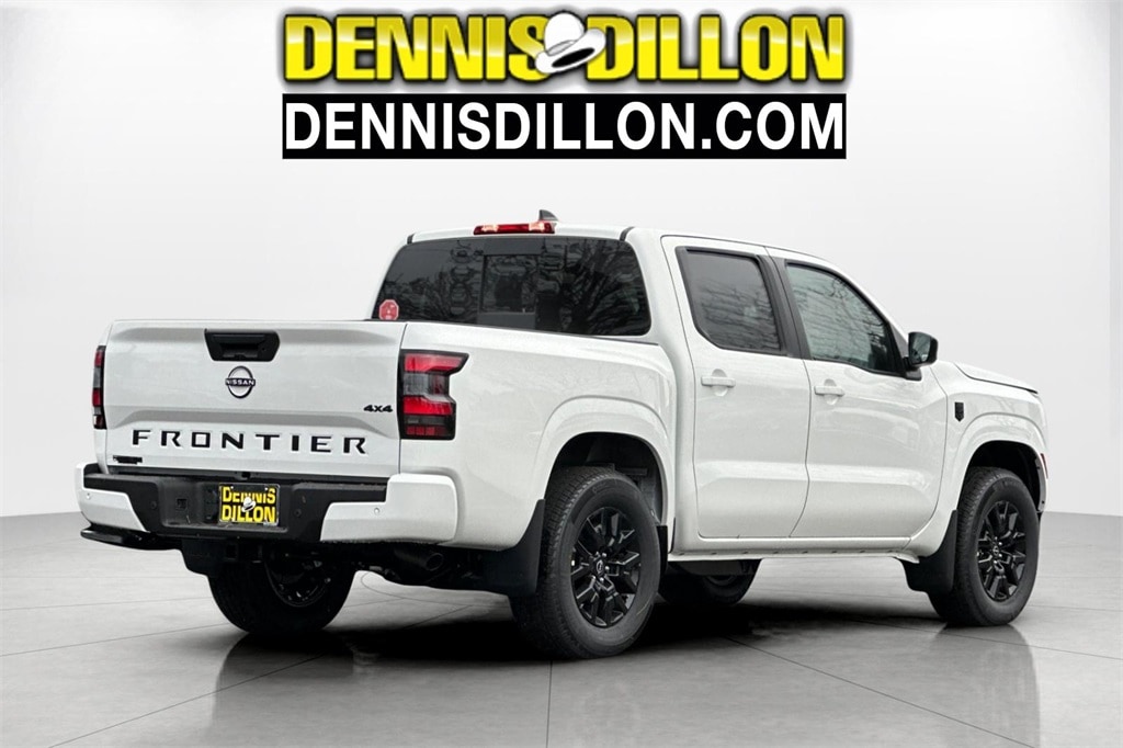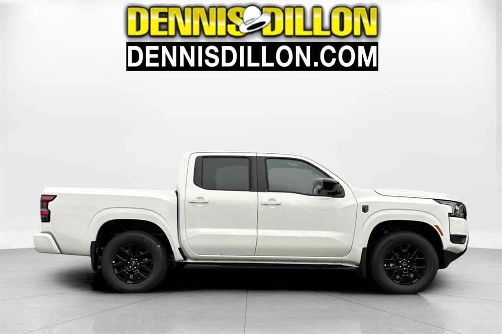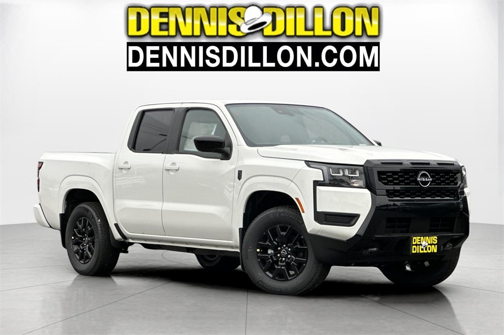 Glacier White 2026 Nissan Frontier SV 4D Crew Cab 4WD 9-Speed Automatic with Overdrive 3.8L DI DOHC 24V V6 17" Alloy Wheels, 3.692 Axle Ratio, 4-Wheel Disc Brakes, 6 Speakers, ABS brakes, Air Conditioning, All Season Floor Mats, All-Weather Content Package, Alloy wheels, AM/FM radio: SiriusXM, Anti-whiplash front head restraints, Auto High-beam Headlights, Blind Spot Warning, Brake assist, Bumpers: body-color, Dark Armor Package, Dark FRONTIER Tailgate Lettering, Dark Grill Surround/Mesh/Inner Fascia, Dark Mirror Caps, Delay-off headlights, Driver door bin, Driver vanity mirror, Drop-In Bed Liner & Bumper Step, Dual front impact airbags, Dual front side impact airbags, Electronic Stability Control, Emergency communication system, Front anti-roll bar, Front Bucket Seats, Front Center Armrest, Front reading lights, Front wheel independent suspension, Fully automatic headlights, Heated Front Seats, Heated Leather Steering Wheel, HVAC - Dual-Zone Front Auto A/C, Illuminated entry, Knee airbag, Low tire pressure warning, Occupant sensing airbag, Overhead airbag, Overhead console, Panic alarm, Passenger door bin, Passenger vanity mirror, Power door mirrors, Power driver seat, Power steering, Power windows, Premium Cloth Seat Trim, Radio data system, Radio: SXM/AM/FM/AUX/USB Audio System, Rear anti-roll bar, Rear seat center armrest, Rear side impact airbag, Rear step bumper, Remote Engine Starter, Remote keyless entry, Security system, Speed control, Speed-sensing steering, Splash Guards, Split folding rear seat, Steering wheel mounted audio controls, Tachometer, Telescoping steering wheel, Tilt steering wheel, Tow Package, Tow/Haul Mode Switch, Traction control, Trip computer, Variably intermittent wipers, Voltmeter, Wheels: 17" Dark, Wireless Apple CarPlay/Wireless Android Auto.