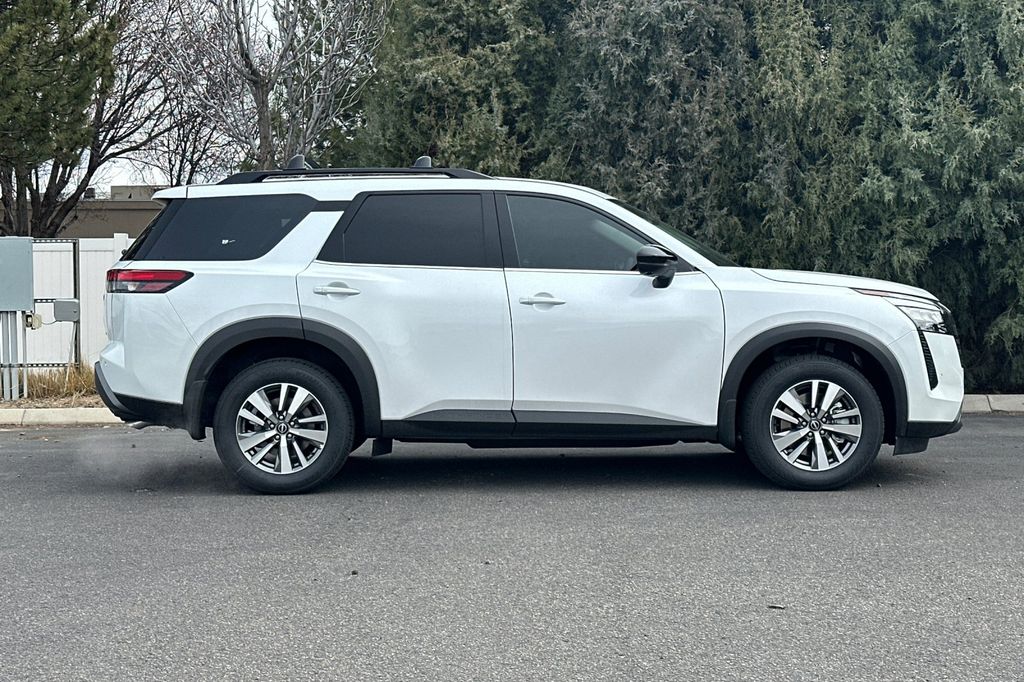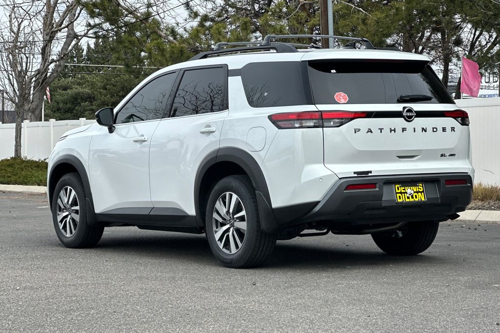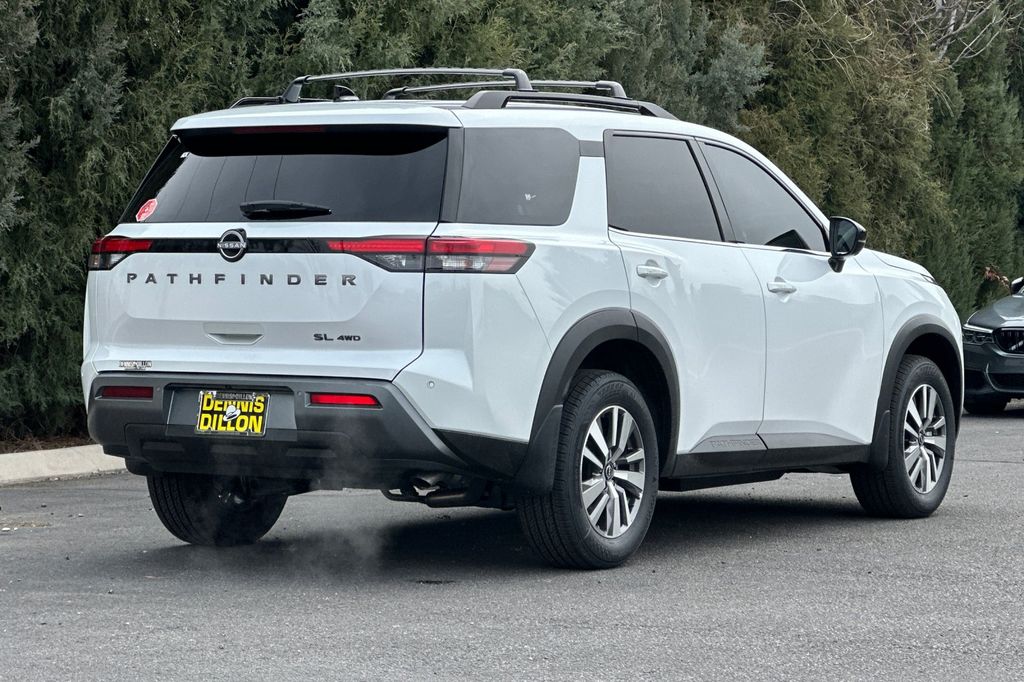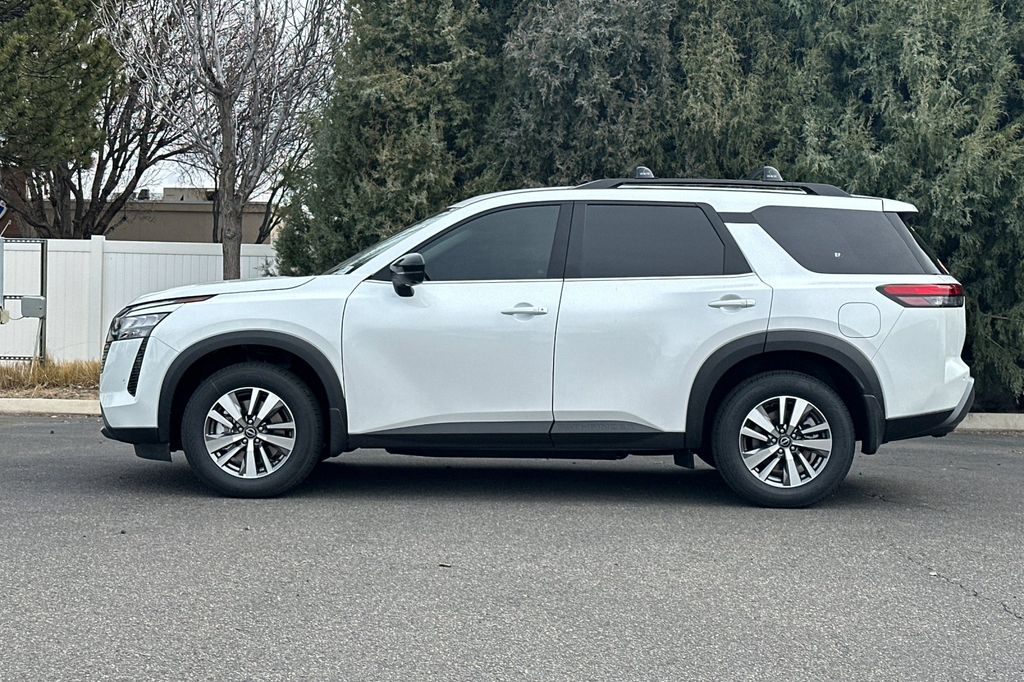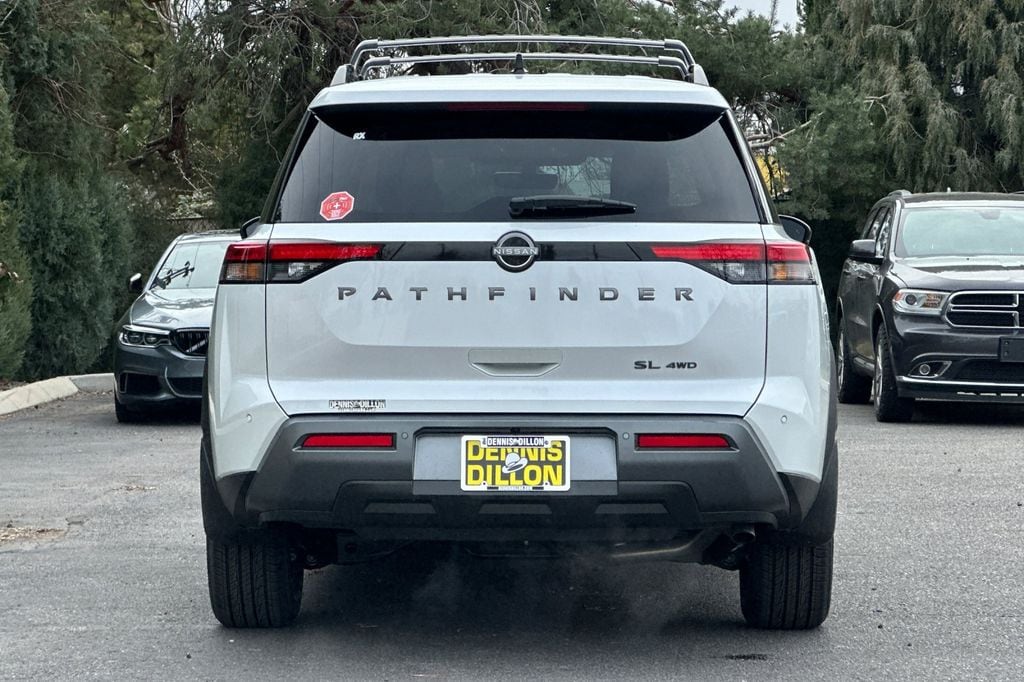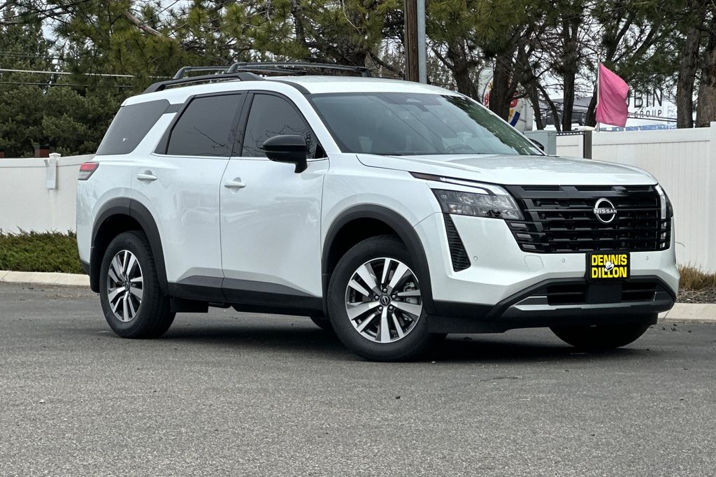 Everest White Pearl Tricoat 2026 Nissan Pathfinder SL 4D Sport Utility 4WD 9-Speed Automatic 3.5L V6 DOHC 18" Machined Alloy Wheels, 3rd row seats: bench, 4-Piece Black Splash Guards, 4-Wheel Disc Brakes, 6 Speakers, ABS brakes, Air Conditioning, Alloy wheels, AM/FM radio: SiriusXM w/360L, Auto High-beam Headlights, Auto-dimming Rear-View mirror, Automatic temperature control, Bench Seat Carpeted Floor Mats, Brake assist, Bumpers: body-color, Cross Bars, Delay-off headlights, Driver door bin, Driver vanity mirror, Dual front impact airbags, Dual front side impact airbags, Electronic Stability Control, Emergency communication system: NissanConnect Services, Four wheel independent suspension, Front anti-roll bar, Front Bucket Seats, Front Center Armrest, Front dual zone A/C, Front reading lights, Fully automatic headlights, Garage door transmitter: HomeLink, Heated door mirrors, Heated Front Bucket Seats, Heated front seats, Heated steering wheel, Illuminated entry, Knee airbag, Low tire pressure warning, NissanConnect featuring Apple CarPlay and Android Auto, Occupant sensing airbag, Outside temperature display, Overhead airbag, Overhead console, Panic alarm, Passenger door bin, Passenger vanity mirror, Power door mirrors, Power driver seat, Power Liftgate, Power steering, Power windows, Premium Paint, Radio data system, Radio: AM/FM Audio System with NissanConnect, Rear air conditioning, Rear anti-roll bar, Rear reading lights, Rear seat center armrest, Rear side impact airbag, Rear window defroster, Rear window wiper, Reclining 3rd row seat, Remote keyless entry, Security system, Speed control, Speed-sensing steering, Split folding rear seat, Spoiler, Steering wheel mounted audio controls, Tachometer, TailorFit Appointed Seating Surfaces, Telescoping steering wheel, Tilt steering wheel, Traction control, Trip computer, Turn signal indicator mirrors, Variably intermittent wipers.