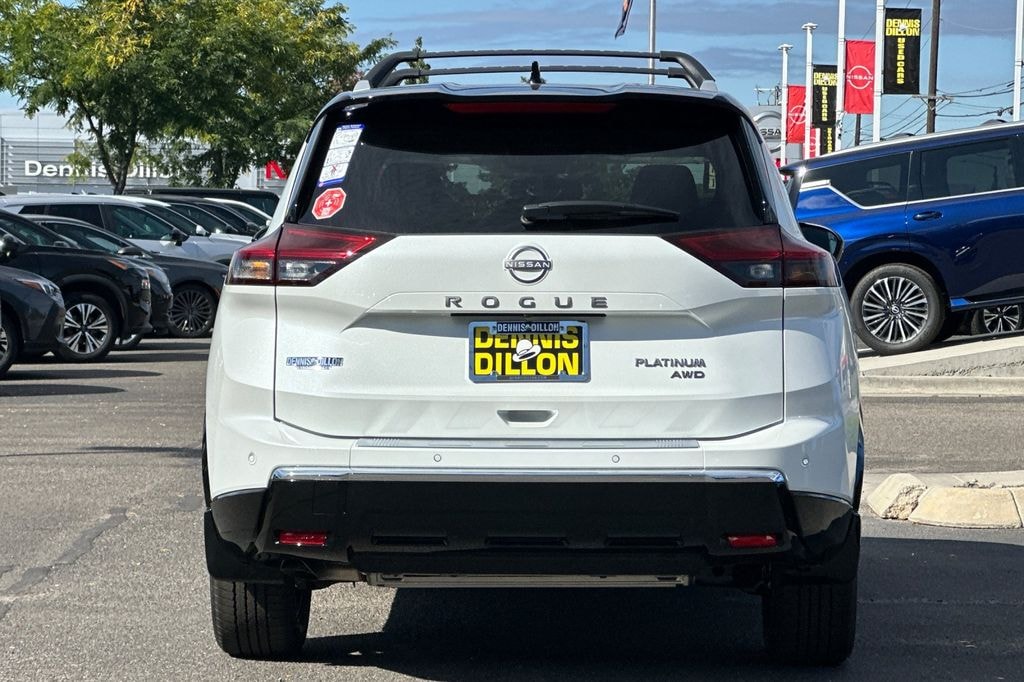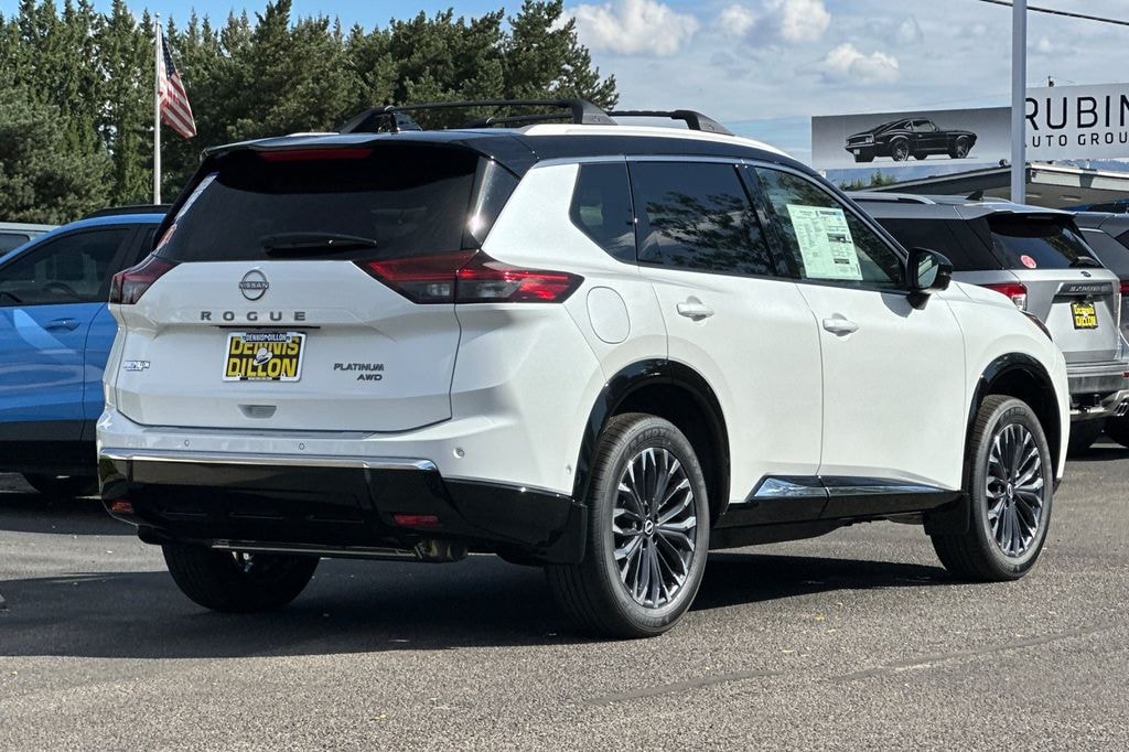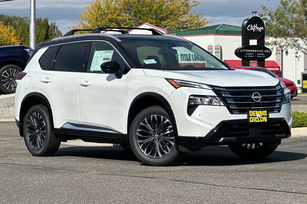 Everest White Pearl/Super Black 2026 Nissan Rogue Platinum 4D Sport Utility AWD CVT with Xtronic 1.5L DOHC 10 Speakers, 4-Wheel Disc Brakes, ABS brakes, Air Conditioning, Alloy wheels, AM/FM radio: SiriusXM w/360L, Auto High-beam Headlights, Auto-dimming Rear-View mirror, Automatic temperature control, Black Splash Guards (set of 4), Bose Premium Audio System, Brake assist, Bumpers: body-color, Chrome Rear Bumper Protector, Delay-off headlights, Driver door bin, Driver vanity mirror, Dual front impact airbags, Dual front side impact airbags, Electronic Stability Control, Emergency communication system: NissanConnect Services, First Aid Kit, Floor Mats with 2-Piece Cargo Area Protector, Four wheel independent suspension, Front anti-roll bar, Front Bucket Seats, Front Center Armrest, Front dual zone A/C, Front reading lights, Fully automatic headlights, Garage door transmitter: myQ Connected Garage, Head-Up Display, Heads-Up Display, Heated door mirrors, Heated Front Bucket Seats, Heated front seats, Heated Rear Seats, Heated steering wheel, Illuminated entry, Knee airbag, Low tire pressure warning, Memory seat, Motion-Activated Power Liftgate, Navigation system: Google Maps, Occupant sensing airbag, Outside temperature display, Overhead airbag, Overhead console, Panic alarm, Passenger door bin, Passenger vanity mirror, Platinum Premium Package, Power door mirrors, Power driver seat, Power Liftgate, Power moonroof, Power passenger seat, Power steering, Power windows, Premium Paint with Two-Tone, Quilted Semi-Aniline Leather-Appointed Seat Trim, Radio data system, Radio: AM/FM NissanConnect with Navigation, Rear anti-roll bar, Rear reading lights, Rear seat center armrest, Rear side impact airbag, Rear window defroster, Rear window wiper, Remote keyless entry, Roof Rail Cross Bars, Security system, Speed control, Speed-sensing steering, Speed-Sensitive Wipers, Split folding rear seat, Spoiler, Steering wheel mounted audio controls, Tachometer, Telescoping steering wheel, Tilt steering wheel, Traction control, Tri-Zone Automatic Temperature Control, Trip computer, Turn signal indicator mirrors, Variably intermittent wipers, Wheels: 19" Unique Dark Painted Aluminum Alloy, Wireless Apple CarPlay/Wireless Android Auto.