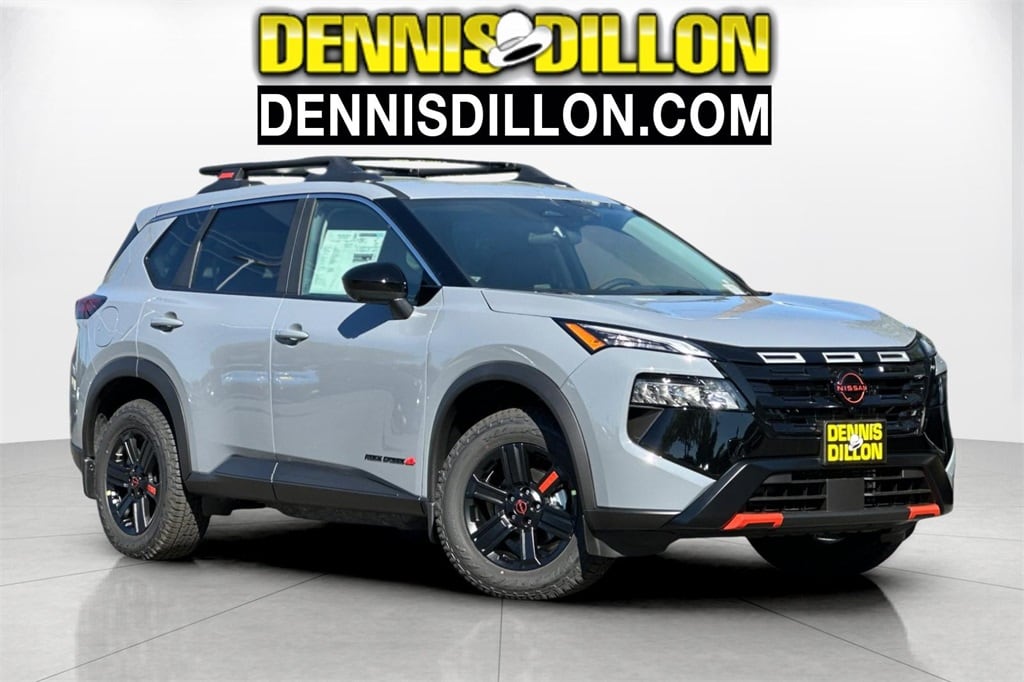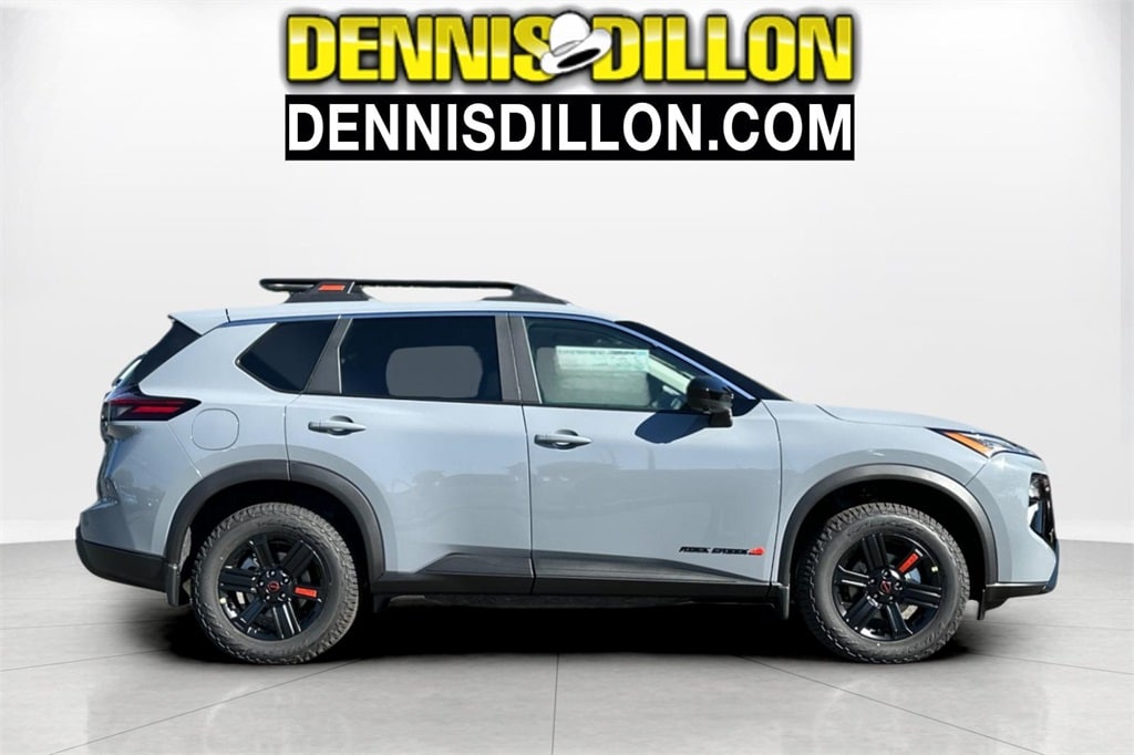 Boulder Gray Pearl 2026 Nissan Rogue Rock Creek 4D Sport Utility AWD CVT with Xtronic 1.5L DOHC 4-Wheel Disc Brakes, 6 Speakers, ABS brakes, Air Conditioning, Alloy wheels, AM/FM radio: SiriusXM, Apple CarPlay/Android Auto, Auto High-beam Headlights, Automatic temperature control, Black Splash Guards (Set of 4) (B92), Brake assist, Delay-off headlights, Driver door bin, Driver vanity mirror, Dual front impact airbags, Dual front side impact airbags, Electronic Stability Control, Emergency communication system: NissanConnect Services, Four wheel independent suspension, Front anti-roll bar, Front Bucket Seats, Front Center Armrest, Front dual zone A/C, Front reading lights, Fully automatic headlights, Heated door mirrors, Heated Front Bucket Seats, Heated front seats, Illuminated entry, Knee airbag, Leatherette & Ballistic Nylon Seating, Low tire pressure warning, Occupant sensing airbag, Outside temperature display, Overhead airbag, Overhead console, Panic alarm, Passenger door bin, Passenger vanity mirror, Power door mirrors, Power driver seat, Power Liftgate, Power steering, Power windows, Premium Paint, Radio data system, Radio: AM/FM NissanConnect, Rear anti-roll bar, Rear seat center armrest, Rear side impact airbag, Rear window defroster, Rear window wiper, Remote keyless entry, Roof rack, Speed control, Speed-sensing steering, Speed-Sensitive Wipers, Split folding rear seat, Spoiler, Steering wheel mounted audio controls, Tachometer, Telescoping steering wheel, Tilt steering wheel, Traction control, Trip computer, Variably intermittent wipers, Wheels: 17" Dark Painted Alloy.