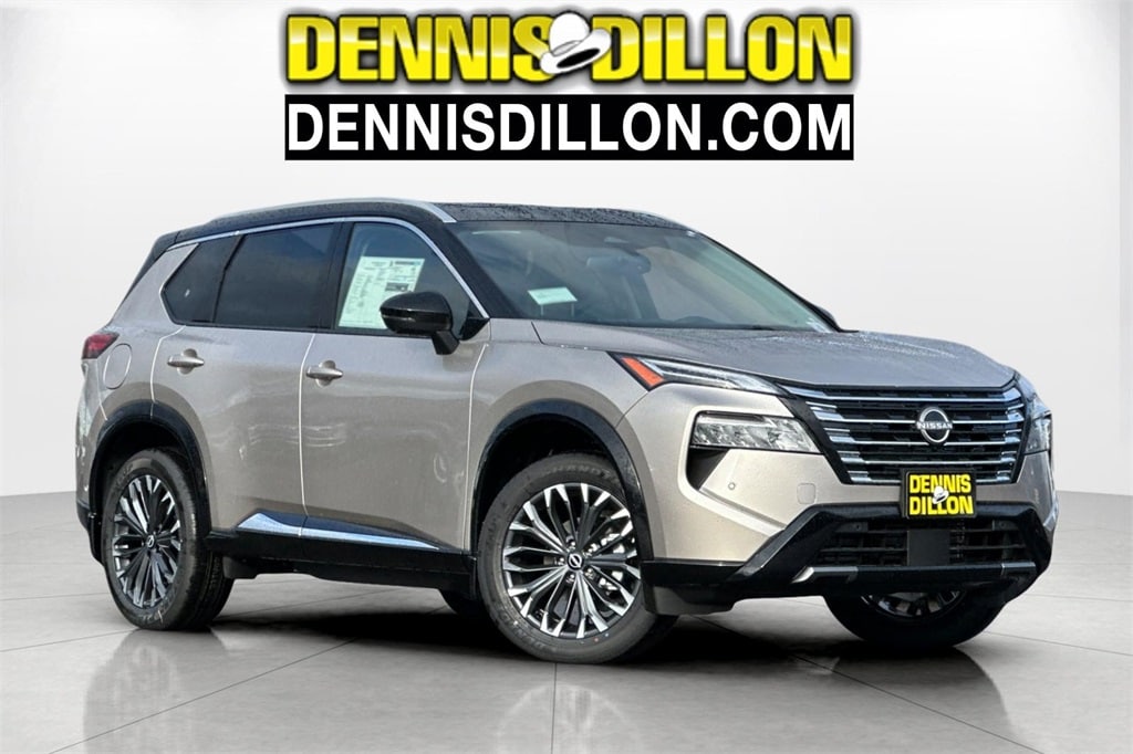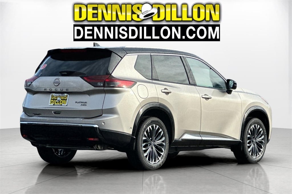 Champagne Silver/Black 2026 Nissan Rogue Platinum 4D Sport Utility AWD CVT with Xtronic 1.5L DOHC 10 Speakers, 4-Wheel Disc Brakes, ABS brakes, Air Conditioning, Alloy wheels, AM/FM radio: SiriusXM w/360L, Auto High-beam Headlights, Auto-dimming Rear-View mirror, Automatic temperature control, Black Splash Guards (set of 4), Bose Premium Audio System, Brake assist, Bumpers: body-color, Chrome Rear Bumper Protector, Delay-off headlights, Driver door bin, Driver vanity mirror, Dual front impact airbags, Dual front side impact airbags, Electronic Stability Control, Emergency communication system: NissanConnect Services, First Aid Kit, Floor Mats with 2-Piece Cargo Area Protector, Four wheel independent suspension, Front anti-roll bar, Front Bucket Seats, Front Center Armrest, Front dual zone A/C, Front reading lights, Fully automatic headlights, Garage door transmitter: myQ Connected Garage, Head-Up Display, Heads-Up Display, Heated door mirrors, Heated Front Bucket Seats, Heated front seats, Heated Rear Seats, Heated steering wheel, Illuminated entry, Knee airbag, Low tire pressure warning, Memory seat, Motion-Activated Power Liftgate, Navigation system: Google Maps, Occupant sensing airbag, Outside temperature display, Overhead airbag, Overhead console, Panic alarm, Passenger door bin, Passenger vanity mirror, Platinum Premium Package, Power door mirrors, Power driver seat, Power Liftgate, Power moonroof, Power passenger seat, Power steering, Power windows, Quilted Semi-Aniline Leather-Appointed Seat Trim, Radio data system, Radio: AM/FM NissanConnect with Navigation, Rear anti-roll bar, Rear reading lights, Rear seat center armrest, Rear side impact airbag, Rear window defroster, Rear window wiper, Remote keyless entry, Security system, Speed control, Speed-sensing steering, Speed-Sensitive Wipers, Split folding rear seat, Spoiler, Steering wheel mounted audio controls, Tachometer, Telescoping steering wheel, Tilt steering wheel, Traction control, Tri-Zone Automatic Temperature Control, Trip computer, Turn signal indicator mirrors, Variably intermittent wipers, Wheels: 19" Unique Dark Painted Aluminum Alloy, Wireless Apple CarPlay/Wireless Android Auto.
