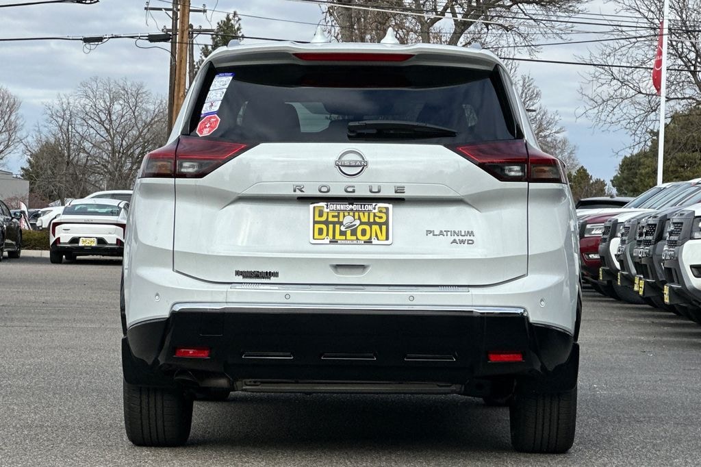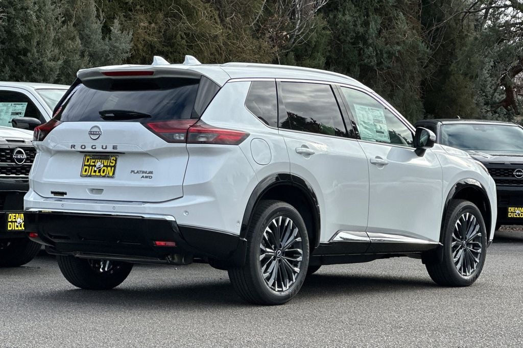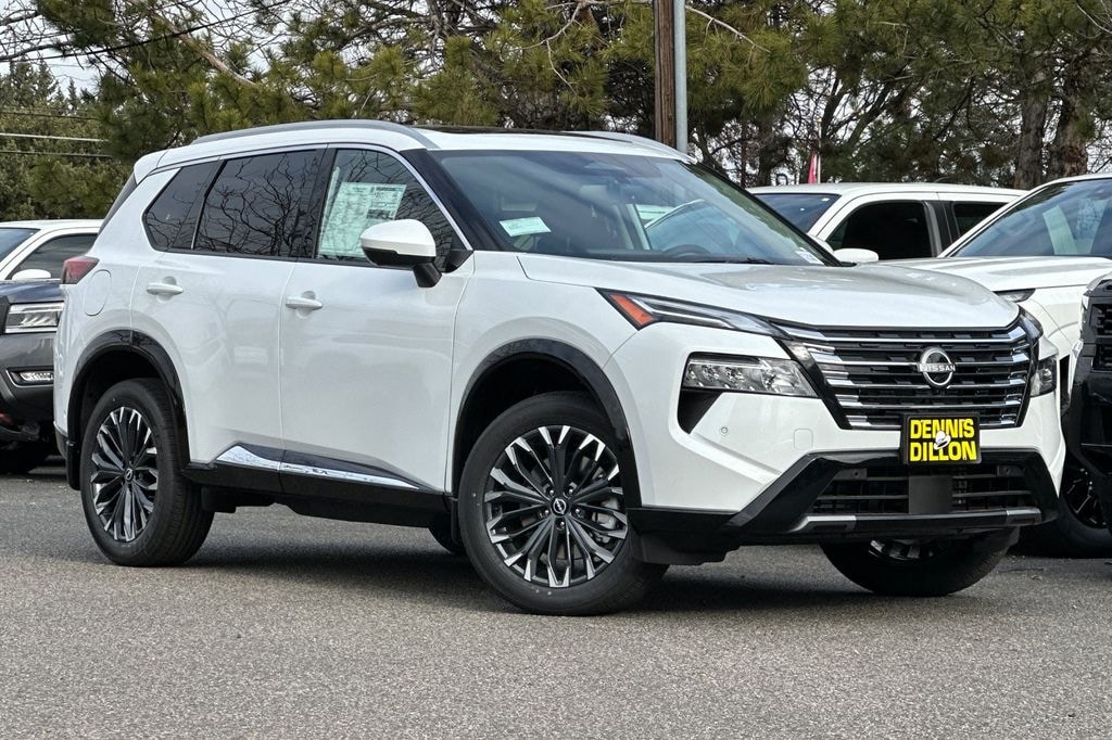 Everest White Pearl Tricoat 2026 Nissan Rogue Platinum 4D Sport Utility AWD CVT with Xtronic 1.5L DOHC 10 Speakers, 3D Enhanced Intelligent Around View Monitor, 4-Wheel Disc Brakes, ABS brakes, Air Conditioning, Alloy wheels, AM/FM radio: SiriusXM w/360L, Auto High-beam Headlights, Auto-dimming Rear-View mirror, Automatic temperature control, Black Splash Guards (set of 4), Bose Premium Audio System, Brake assist, Bumpers: body-color, Chrome Rear Bumper Protector, Delay-off headlights, Driver Attention Warning, Driver door bin, Driver vanity mirror, Dual front impact airbags, Dual front side impact airbags, Electronic Stability Control, Emergency communication system: NissanConnect Services, First Aid Kit, Floor Mats with 2-Piece Cargo Area Protector, Four wheel independent suspension, Front anti-roll bar, Front Bucket Seats, Front Center Armrest, Front dual zone A/C, Front reading lights, Fully automatic headlights, Garage door transmitter: myQ Connected Garage, Head-Up Display, Heads-Up Display, Heated door mirrors, Heated Front Bucket Seats, Heated front seats, Heated Rear Seats, Heated steering wheel, Illuminated entry, Knee airbag, Low tire pressure warning, Memory seat, Motion-Activated Power Liftgate, Navigation system: Google Maps, Occupant sensing airbag, Outside temperature display, Overhead airbag, Overhead console, Panic alarm, Passenger door bin, Passenger vanity mirror, Platinum Premium Package, Power door mirrors, Power driver seat, Power Liftgate, Power moonroof, Power passenger seat, Power steering, Power windows, Premium Paint, ProPILOT Assist 2.1, Quilted Semi-Aniline Leather-Appointed Seat Trim, Radio data system, Radio: AM/FM NissanConnect with Navigation, Rain-Sensing Wipers, Rear anti-roll bar, Rear reading lights, Rear seat center armrest, Rear side impact airbag, Rear window defroster, Rear window wiper, Remote keyless entry, Security system, Speed control, Speed-sensing steering, Speed-Sensitive Wipers, Split folding rear seat, Spoiler, Steering wheel mounted audio controls, Tachometer, Tech Package, Telescoping steering wheel, Tilt steering wheel, Traction control, Tri-Zone Automatic Temperature Control, Trip computer, Turn signal indicator mirrors, Variably intermittent wipers, Wheels: 19" Unique Dark Painted Aluminum Alloy, Wireless Apple CarPlay/Wireless Android Auto.