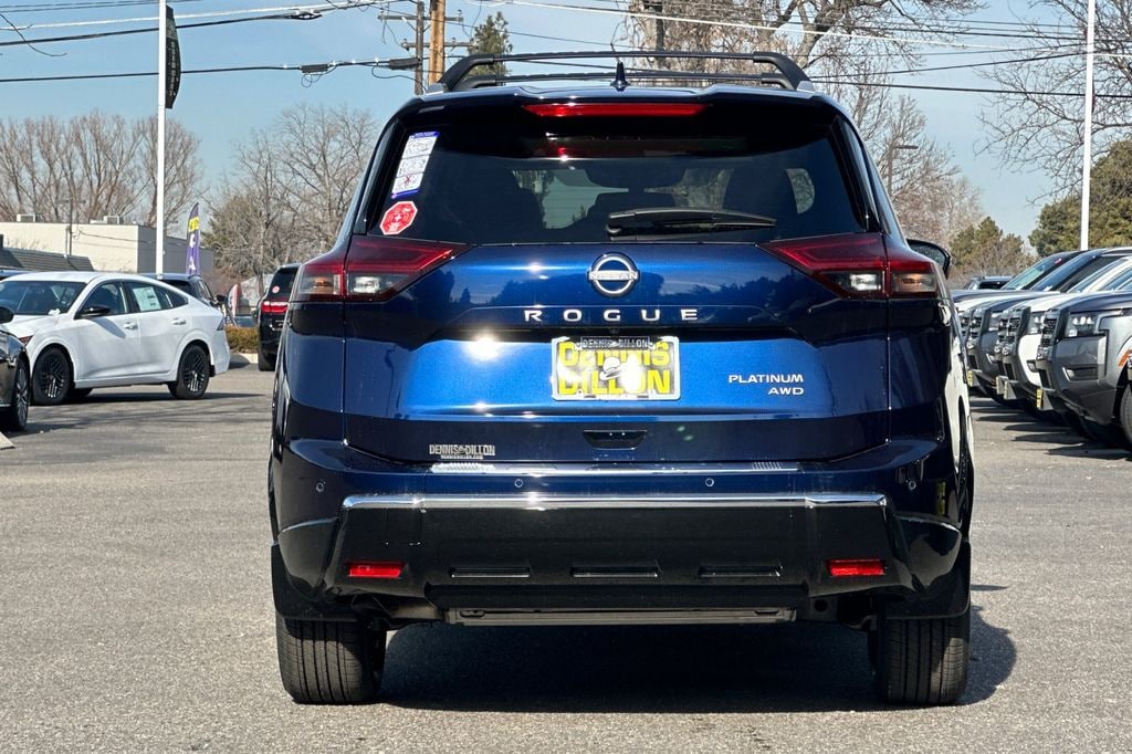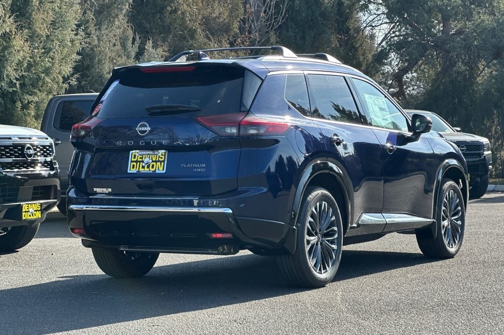 Deep Ocean Blue Pearl 2026 Nissan Rogue Platinum 4D Sport Utility AWD CVT with Xtronic 1.5L DOHC 10 Speakers, 4-Wheel Disc Brakes, ABS brakes, Air Conditioning, Alloy wheels, AM/FM radio: SiriusXM w/360L, Auto High-beam Headlights, Auto-dimming Rear-View mirror, Automatic temperature control, Black Splash Guards (set of 4), Bose Premium Audio System, Brake assist, Bumpers: body-color, Chrome Rear Bumper Protector, Delay-off headlights, Driver door bin, Driver vanity mirror, Dual front impact airbags, Dual front side impact airbags, Electronic Stability Control, Emergency communication system: NissanConnect Services, First Aid Kit, Floor Mats with 2-Piece Cargo Area Protector, Four wheel independent suspension, Front anti-roll bar, Front Bucket Seats, Front Center Armrest, Front dual zone A/C, Front reading lights, Fully automatic headlights, Garage door transmitter: myQ Connected Garage, Head-Up Display, Heads-Up Display, Heated door mirrors, Heated Front Bucket Seats, Heated front seats, Heated Rear Seats, Heated steering wheel, Illuminated entry, Knee airbag, Low tire pressure warning, Memory seat, Motion-Activated Power Liftgate, Navigation system: Google Maps, Occupant sensing airbag, Outside temperature display, Overhead airbag, Overhead console, Panic alarm, Passenger door bin, Passenger vanity mirror, Platinum Premium Package, Power door mirrors, Power driver seat, Power Liftgate, Power moonroof, Power passenger seat, Power steering, Power windows, Quilted Semi-Aniline Leather-Appointed Seat Trim, Radio data system, Radio: AM/FM NissanConnect with Navigation, Rear anti-roll bar, Rear reading lights, Rear seat center armrest, Rear side impact airbag, Rear window defroster, Rear window wiper, Remote keyless entry, Roof Rail Cross Bars, Security system, Speed control, Speed-sensing steering, Speed-Sensitive Wipers, Split folding rear seat, Spoiler, Steering wheel mounted audio controls, Tachometer, Telescoping steering wheel, Tilt steering wheel, Traction control, Tri-Zone Automatic Temperature Control, Trip computer, Turn signal indicator mirrors, Variably intermittent wipers, Wheels: 19" Unique Dark Painted Aluminum Alloy, Wireless Apple CarPlay/Wireless Android Auto.
