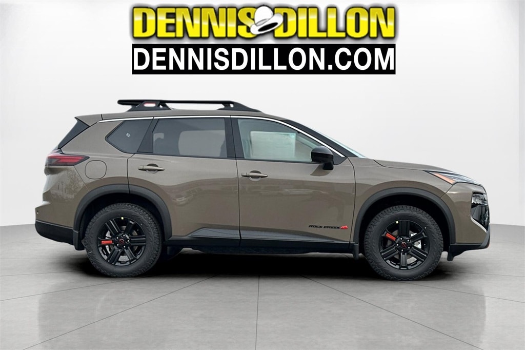 Baja Storm Metallic 2026 Nissan Rogue Rock Creek 4D Sport Utility AWD CVT with Xtronic 1.5L DOHC 4-Wheel Disc Brakes, 6 Speakers, ABS brakes, Air Conditioning, Alloy wheels, AM/FM radio: Sirius, Apple CarPlay/Android Auto, Auto High-beam Headlights, Automatic temperature control, Black Splash Guards (Set of 4) (B92), Brake assist, Delay-off headlights, Driver door bin, Driver vanity mirror, Dual front impact airbags, Dual front side impact airbags, Electronic Stability Control, Emergency communication system: NissanConnect Services, Four wheel independent suspension, Front anti-roll bar, Front Bucket Seats, Front Center Armrest, Front dual zone A/C, Front reading lights, Fully automatic headlights, Heated door mirrors, Heated Front Bucket Seats, Heated front seats, Illuminated entry, Knee airbag, Leatherette & Ballistic Nylon Seating, Low tire pressure warning, Occupant sensing airbag, Outside temperature display, Overhead airbag, Overhead console, Panic alarm, Passenger door bin, Passenger vanity mirror, Power door mirrors, Power driver seat, Power Liftgate, Power steering, Power windows, Premium Paint, Radio data system, Radio: AM/FM NissanConnect, Rear anti-roll bar, Rear seat center armrest, Rear side impact airbag, Rear window defroster, Rear window wiper, Remote keyless entry, Roof rack, Speed control, Speed-sensing steering, Speed-Sensitive Wipers, Split folding rear seat, Spoiler, Steering wheel mounted audio controls, Tachometer, Telescoping steering wheel, Tilt steering wheel, Traction control, Trip computer, Variably intermittent wipers, Wheels: 17" Dark Painted Alloy.