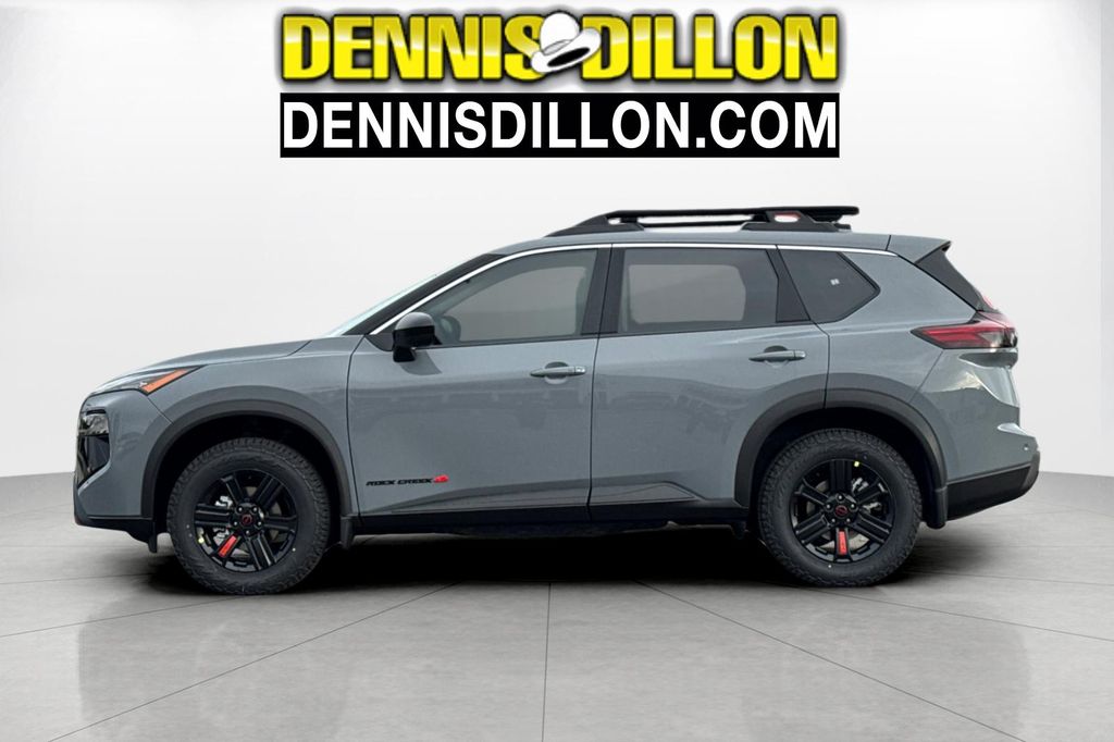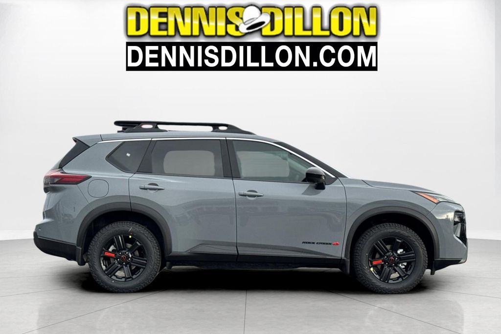 Boulder Gray Pearl 2026 Nissan Rogue Rock Creek 4D Sport Utility AWD CVT with Xtronic 1.5L DOHC 4-Wheel Disc Brakes, 6 Speakers, ABS brakes, Air Conditioning, Alloy wheels, AM/FM radio: Sirius, Apple CarPlay/Android Auto, Auto High-beam Headlights, Automatic temperature control, Black Splash Guards (Set of 4) (B92), Brake assist, Delay-off headlights, Driver door bin, Driver vanity mirror, Dual front impact airbags, Dual front side impact airbags, Electronic Stability Control, Emergency communication system: NissanConnect Services, Four wheel independent suspension, Front anti-roll bar, Front Bucket Seats, Front Center Armrest, Front dual zone A/C, Front reading lights, Fully automatic headlights, Heated door mirrors, Heated Front Bucket Seats, Heated front seats, Illuminated entry, Knee airbag, Leatherette & Ballistic Nylon Seating, Low tire pressure warning, Occupant sensing airbag, Outside temperature display, Overhead airbag, Overhead console, Panic alarm, Passenger door bin, Passenger vanity mirror, Power door mirrors, Power driver seat, Power Liftgate, Power steering, Power windows, Premium Paint, Radio data system, Radio: AM/FM NissanConnect, Rear anti-roll bar, Rear seat center armrest, Rear side impact airbag, Rear window defroster, Rear window wiper, Remote keyless entry, Roof rack, Speed control, Speed-sensing steering, Speed-Sensitive Wipers, Split folding rear seat, Spoiler, Steering wheel mounted audio controls, Tachometer, Telescoping steering wheel, Tilt steering wheel, Traction control, Trip computer, Variably intermittent wipers, Wheels: 17" Dark Painted Alloy.