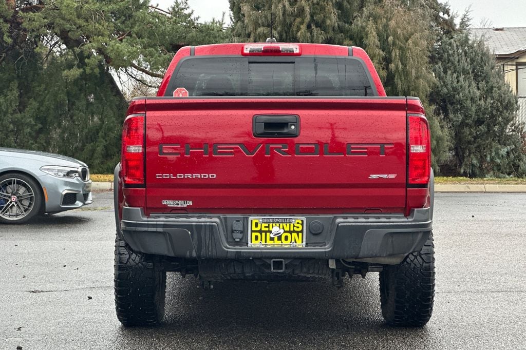 Clean CARFAX. CARFAX One-Owner. Cherry Red Tintcoat 2021 Chevrolet Colorado ZR2 4WD 8-Speed Automatic V6 2 USB Data Ports w/SD Card Reader, 3.42 Rear Axle Ratio, 4-Way Power Front Passenger Seat Adjuster, 4-Wheel Disc Brakes, 6 Speakers, 6-Speaker Audio System Feature, ABS brakes, Air Conditioning, Alloy wheels, AM/FM radio: SiriusXM, Apple CarPlay/Android Auto, Auto-dimming Rear-View mirror, Automatic temperature control, Black Rear Bumpers, Black Spray-On Bedliner w/Chevrolet Logo, Bose Premium 7-Speaker Audio System Feature, Compass, Delay-off headlights, Driver 6-Way Power Seat Adjuster, Driver door bin, Driver vanity mirror, Driver-Selectable Full-Locking Front Differential, Driver-Selectable Full-Locking Rear Differential, Dual front impact airbags, Dual front side impact airbags, Electronic Stability Control, Exterior Parking Camera Rear, Front anti-roll bar, Front Bucket Seats, Front Center Armrest, Front License Plate Kit, Front reading lights, Front wheel independent suspension, Fully automatic headlights, HD Radio, Heated door mirrors, Heated Driver & Front Passenger Seats, Heated front seats, Heated steering wheel, Heavy-Duty Trailering Package, Hitch Guidance, Illuminated entry, Integrated Trailer Brake Controller, Leather-Appointed Seat Trim, Low tire pressure warning, Occupant sensing airbag, Outside temperature display, Overhead airbag, Overhead console, Panic alarm, Passenger door bin, Passenger vanity mirror, Power door mirrors, Power Driver Lumbar Control Seat Adjuster, Power driver seat, Power Passenger Lumbar Control Seat Adjuster, Power passenger seat, Power steering, Power windows, Preferred Equipment Group 4ZR, Premium audio system: Chevrolet Infotainment 3 Plus, Radio data system, Radio: Chevrolet Infotainment 3 Plus System, Radio: Chevrolet Infotainment 3 Plus System w/Navi, Rear reading lights, Rear seat center armrest, Rear step bumper, Rear window defroster, Remote keyless entry, Security system, SiriusXM Radio, Speed control, Speed-sensing steering, Steering wheel mounted audio controls, Tachometer, Telescoping steering wheel, Tilt steering wheel, Tow/Haul Mode, Traction control, Trip computer, Variably intermittent wipers, Wheels: 17" x 8" Graphite & Oxide Gold Aluminum, ZR2 Off-Road Package.