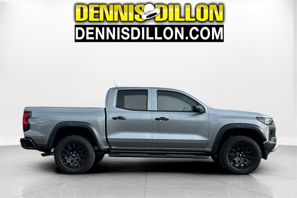 Clean CARFAX. Sterling Gray Metallic 2023 Chevrolet Colorado Trail Boss 4WD 8-Speed Automatic 2.7L Turbo 2.7L Turbo High-Output Calibration (LPO), 3.42 Rear Axle Ratio, 4-Way Manual Passenger Seat Adjuster, 4-Wheel Disc Brakes, 6 Speakers, 6-Speaker Audio System Feature, 6-Way Manual Driver Seat Adjuster, 8-Way Power Driver Seat Adjuster, ABS brakes, Adaptive Cruise Control, Air Conditioning, Alloy wheels, AM/FM radio: SiriusXM, Apple CarPlay/Android Auto, Auto High-beam Headlights, Automatic Emergency Braking, Black Painted Mirror Caps, Blind Zone Steering Assist, Brake assist, Chevy Safety Assist, Cloth Seat Trim, Compass, Delay-off headlights, Driver door bin, Driver vanity mirror, Dual front impact airbags, Dual front side impact airbags, Electronic Automatic Cruise Control, Electronic Stability Control, EZ-Lift & Lower Tailgate, Following Distance Indicator, Forward Collision Alert, Front anti-roll bar, Front Bucket Seats, Front Center Armrest, Front License Plate Kit, Front Pedestrian & Bicyclist Braking, Front wheel independent suspension, HD Surround Vision, Heated Power-Adjustable Outside Mirrors, Illuminated entry, IntelliBeam Automatic High Beam On/Off, Lane Keep Assist w/Lane Departure Warning, Low tire pressure warning, Manual Rear-Sliding Window, Navigation System, Occupant sensing airbag, Outside temperature display, Overhead airbag, Overhead console, Panic alarm, Passenger door bin, Passenger vanity mirror, Power door mirrors, Power Driver Lumbar Control Seat Adjuster, Power steering, Power windows, Preferred Equipment Group 0TR, Radio data system, Radio: 11.3" Diagonal Advanced Color LCD Display, Rear Cross Traffic Braking, Rear Park Assist, Rear Pedestrian Alert, Rear reading lights, Rear step bumper, Rear-Window Electric Defogger, Remote keyless entry, Safety Package, Security system, SiriusXM Radio, Speed-sensing steering, Split folding rear seat, Steering Wheel Mounted Audio Controls, Steering wheel mounted audio controls, StowFlex Tailgate Storage Compartment, Tachometer, Tailgate Keyed Cylinder Lock, Technology Package, Tilt steering wheel, Traction control, Trail Boss Convenience Package, Trail Boss Convenience Package II, Trip computer, Variably intermittent wipers, Wheels: 18" x 8.5" Black High Gloss Aluminum, Wireless Phone Projection.