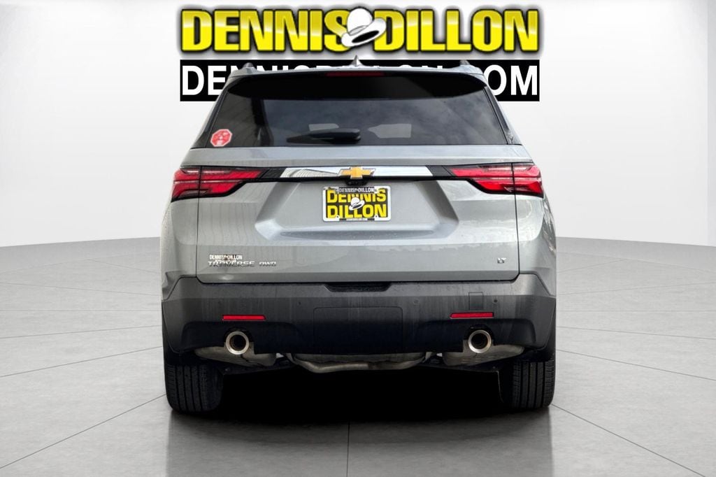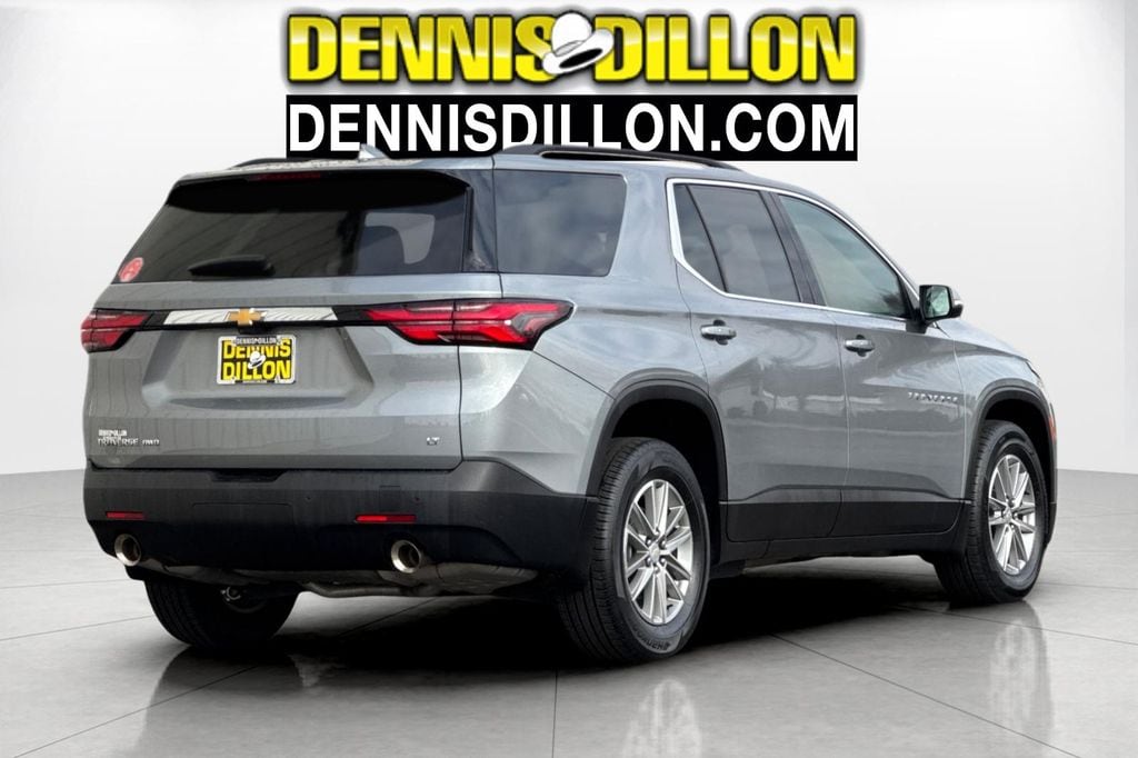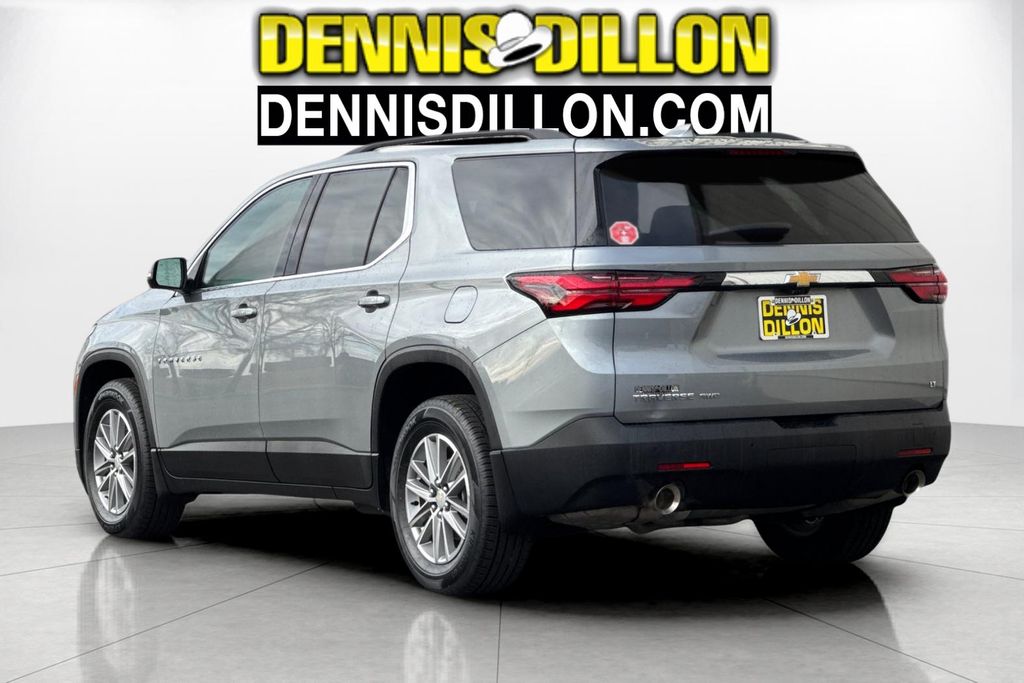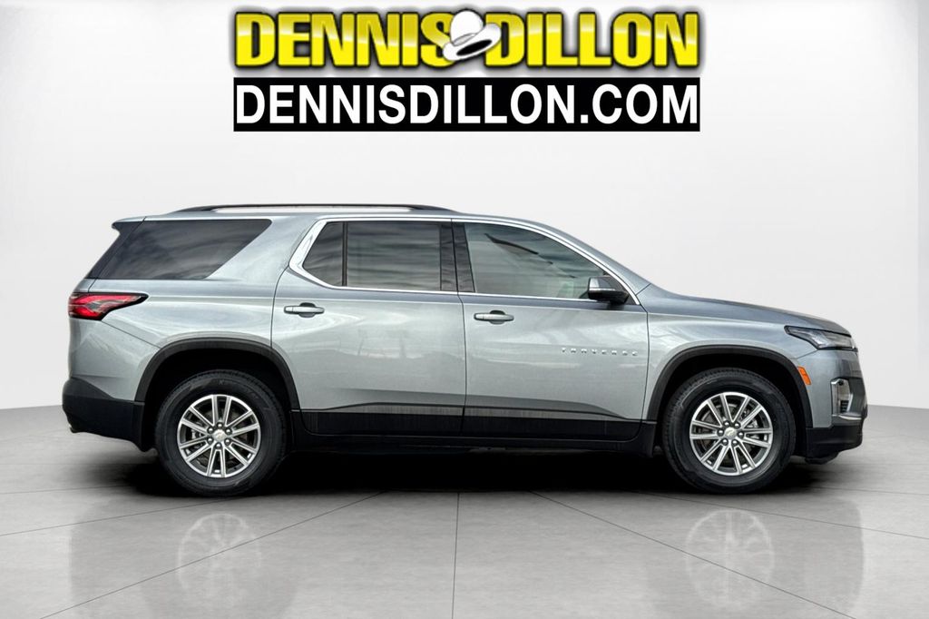 Clean CARFAX. Sterling Gray Metallic 2023 Chevrolet Traverse LT 1LT AWD 9-Speed Automatic 3.6L V6 SIDI VVT 2-Way Manual Front Passenger Seat Adjuster, 3.49 Axle Ratio, 3rd row seats: split-bench, 4-Wheel Disc Brakes, 6 Speakers, 6-Speaker Audio System Feature, 8-Passenger Seating (2-3-3 Seating Configuration), 8-Way Power Driver Seat Adjuster, ABS brakes, Air Conditioning, Alloy wheels, AM/FM radio: SiriusXM, Apple CarPlay/Android Auto, Auto High-beam Headlights, Automatic temperature control, Black Roof Rails, Brake assist, Bumpers: body-color, Compass, Custom Molded Front & Rear Splash Guards (LPO), Delay-off headlights, Driver door bin, Driver vanity mirror, Dual front impact airbags, Dual front side impact airbags, Electronic Stability Control, Emergency communication system, Exterior Parking Camera Rear, Four wheel independent suspension, Front anti-roll bar, Front Bucket Seats, Front Center Armrest, Front dual zone A/C, Front License Plate Bracket Mounting Package, Front reading lights, Fully automatic headlights, Garage door transmitter, HD Surround Vision, Heated door mirrors, Heated Driver & Front Passenger Seats, Heated front seats, Heavy-Duty Cooling System, Hitch Guidance w/Hitch View, Illuminated entry, Leather steering wheel, Low tire pressure warning, Occupant sensing airbag, Outside temperature display, Overhead airbag, Overhead console, Panic alarm, Passenger door bin, Passenger vanity mirror, Power door mirrors, Power Driver Lumbar Control, Power driver seat, Power Liftgate, Power steering, Power windows, Preferred Equipment Group 1LT, Premium Cloth Seat Trim, Radio data system, Radio: Chevrolet Infotainment 3 Plus System, Rear air conditioning, Rear anti-roll bar, Rear Camera Mirror Package, Rear Camera Mirror Washer, Rear Pedestrian Alert, Rear reading lights, Rear window defroster, Rear window wiper, Remote keyless entry, Security system, SiriusXM w/360L, Speed control, Speed-sensing steering, Spoiler, Steering wheel mounted audio controls, Tachometer, Telescoping steering wheel, Tilt steering wheel, Traction control, Trailering Assist Guidelines, Trailering Equipment, Trip computer, Turn signal indicator mirrors, Variably intermittent wipers, Voltmeter, Wheels: 18" Bright Silver-Painted Aluminum.