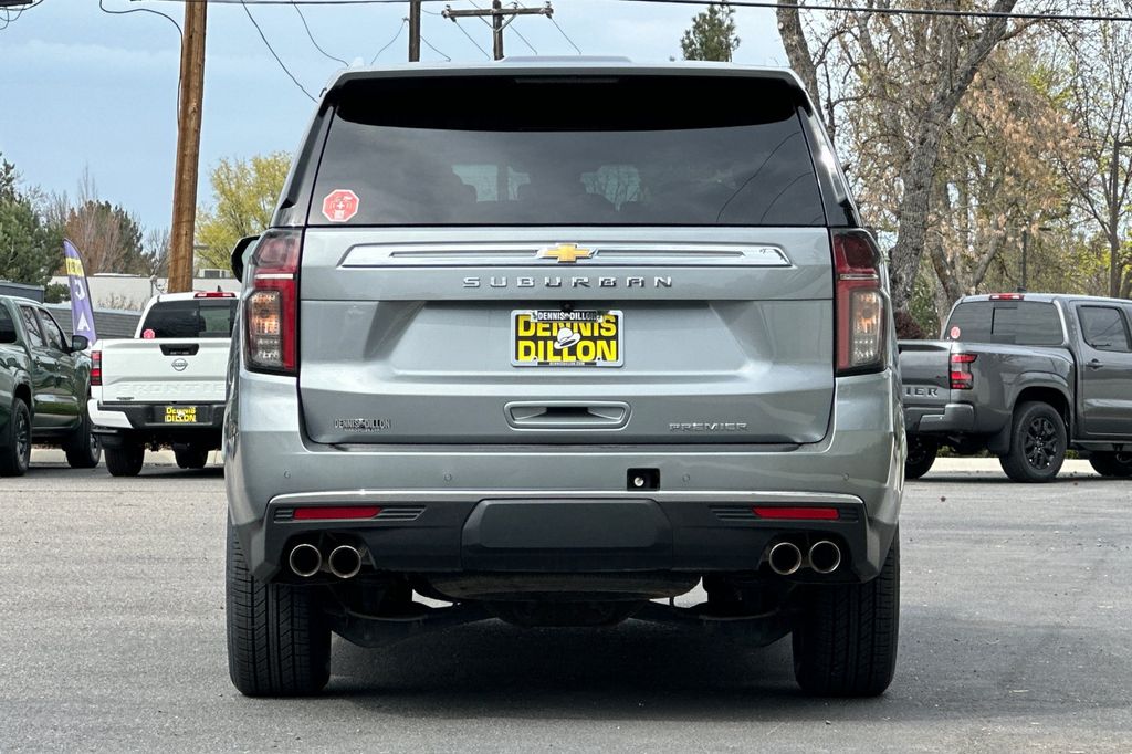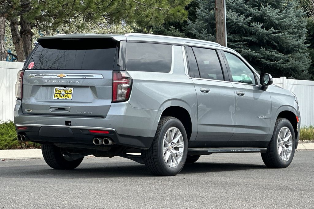 Clean CARFAX. CARFAX One-Owner. Sterling Gray Metallic 2024 Chevrolet Suburban Premier 4WD 10-Speed Automatic with Overdrive EcoTec3 5.3L V8 10 Speakers, 12-Way Power Driver & Passenger Seat Adjusters, 1st & 2nd Row Color-Keyed Carpeted Floor Mats, 2-Speed Active Electronic AutoTrac Transfer Case, 20" x 9" Polished Aluminum Wheels, 2nd Row Pwr Release 60/40 Split-Folding Bench Seat, 3.23 Rear Axle Ratio, 3rd Row 60/40 Power-Folding Split-Bench, 3rd row seats: split-bench, 4-Wheel Disc Brakes, ABS brakes, Adaptive suspension, Air Conditioning, Alloy wheels, AM/FM radio: SiriusXM with 360L, Apple CarPlay/Android Auto, Auto High-beam Headlights, Auto-dimming door mirrors, Auto-Dimming Inside Rear-View Mirror, Auto-dimming Rear-View mirror, Auto-leveling suspension, Automatic temperature control, Bose 10-Speaker Surround w/CenterPoint, Brake assist, Bright Front & Rear Door Sill Plates, Bumpers: body-color, Chrome Door Handles w/Body-Color Strip, Chrome Mirror Caps, Color-Keyed Carpeting Floor Covering, Compass, Delay-off headlights, Deleted 3 Years of Remote Access, Driver & Front Outboard Passenger Airbags, Driver door bin, Driver vanity mirror, Dual Exhaust System, Dual front impact airbags, Dual front side impact airbags, Electronic Stability Control, Emergency communication system: OnStar and Chevrolet connected services capable, Enhanced Driver Information Center, Floor Console, Floor Console w/Storage Area, Four wheel independent suspension, Front anti-roll bar, Front Bucket Seats, Front Center Armrest, Front dual zone A/C, Front reading lights, Fully automatic headlights, Garage door transmitter, Hands-Free Rear Power Programmable Liftgate, Heated 2nd Row Outboard Seats, Heated door mirrors, Heated Driver & Front Passenger Seats, Heated front seats, Heated rear seats, Heated Steering Wheel, Heated steering wheel, Hill Descent Control, Illuminated entry, Infotainment Display, Lane Change Alert w/Side Blind Zone Alert, LED Daytime Running Lamps, License Plate Front Mounting Package, Low tire pressure warning, Magnetic Ride Control Suspension, Memory seat, Memory Settings, Navigation System, Occupant sensing airbag, Outside Heated Power-Adjustable Mirrors, Outside temperature display, Overhead airbag, Overhead console, Panic alarm, Passenger door bin, Passenger vanity mirror, Perforated Heated & Ventilated Seats, Perforated Leather Seating Surfaces, Power door mirrors, Power driver seat, Power Liftgate, Power passenger seat, Power Release 2nd Row Bucket Seats, Power steering, Power Tilt & Telescopic Steering Column, Power windows, Preferred Equipment Group 1LZ, Premium audio system: Chevrolet Infotainment 3 Premium, Radio: Chevrolet Infotainment 3 Premium System, Rain sensing wipers, Rear air conditioning, Rear anti-roll bar, Rear Cross Traffic Alert, Rear reading lights, Rear window defroster, Rear window wiper, Remote keyless entry, Remote Start, Roof rack: xxxxxx, Safety Alert Seat, Security system, SiriusXM w/360L, Speed control, Speed-sensing steering, Split folding rear seat, Spoiler, Steering wheel memory, Steering wheel mounted audio controls, Tachometer, Telescoping steering wheel, Tilt steering wheel, Traction control, Trip computer, Turn signal indicator mirrors, Universal Home Remote, Variably intermittent wipers, Ventilated front seats, Voltmeter, Wireless Charging, Wrapped Steering Wheel.