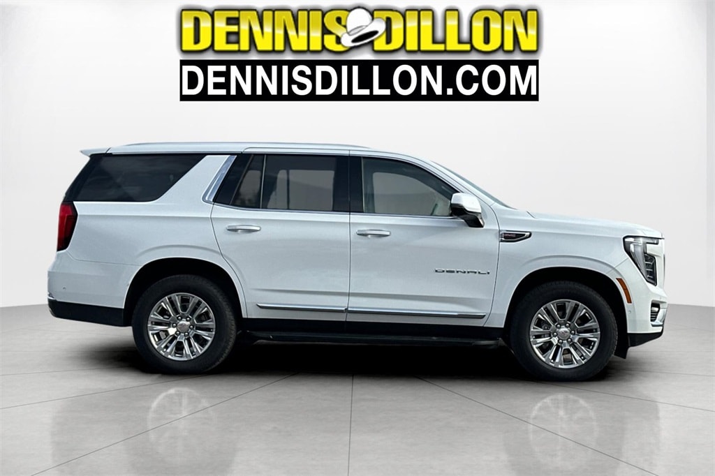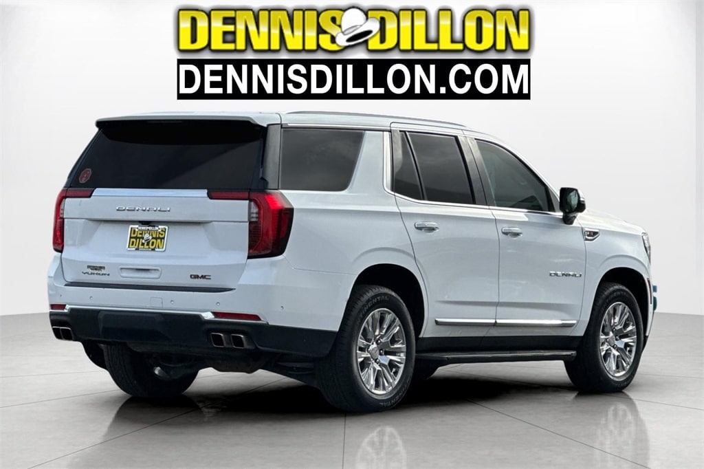 Clean CARFAX. Summit White 2025 GMC Yukon Denali 4WD 10-Speed Automatic with Overdrive EcoTec3 6.2L V8 10 Speakers, 15" Diagonal Multi-Color Head-Up Display, 3.23 Rear Axle Ratio, 3rd row seats: split-bench, 4-Way Power Driver Lumbar Seat Adjuster, 4-Way Power Front Passenger Lumbar Seat Adjuster, 4-Wheel Disc Brakes, ABS brakes, Adaptive suspension, Air Conditioning, Alloy wheels, AM/FM radio: SiriusXM with 360L, Apple CarPlay/Android Auto, Audio memory, Auto High-beam Headlights, Auto-dimming door mirrors, Auto-dimming Rear-View mirror, Auto-leveling suspension, Automatic temperature control, AutoSense Hands-Free Power Liftgate, Bodyside moldings, Bose 10-Speaker Surround w/CenterPoint, Brake assist, Bright Front & Rear Door Sill Plates, Bumpers: body-color, Compass, Delay-off headlights, Driver door bin, Driver vanity mirror, Dual Exhaust System, Dual front impact airbags, Dual front side impact airbags, Electronic Stability Control, Emergency communication system: OnStar and GMC connected services capable, Exterior Parking Camera Rear, Four wheel independent suspension, Front anti-roll bar, Front Bucket Seats, Front Center Armrest, Front dual zone A/C, Front fog lights, Front reading lights, Fully automatic headlights, Galvano Bodyside Moldings, Garage door transmitter, Heads-Up Display, Heated door mirrors, Heated Driver & Front Passenger Seats, Heated front seats, Heated rear seats, Heated steering wheel, Illuminated entry, License Plate Front Mounting Package, Low tire pressure warning, Magnetic Ride Control Suspension, Memory seat, Navigation system: GMC Connected Navigation, Occupant sensing airbag, Outside temperature display, Overhead airbag, Overhead console, Panic alarm, Passenger door bin, Passenger vanity mirror, Perforated Heated & Ventilated Dr & Frt Pass Seats, Perforated Leather Seating Surfaces, Power door mirrors, Power driver seat, Power Liftgate, Power passenger seat, Power Release 2nd Row Bucket Seats, Power steering, Power Tilt & Telescopic Steering Column, Power windows, Preferred Equipment Group 5SA, Radio: 16.8" Diagonal Premium GMC Infotainment Sys, Rain sensing wipers, Rear air conditioning, Rear anti-roll bar, Rear reading lights, Rear window defroster, Rear window wiper, Remote keyless entry, Security system, SiriusXM w/360L, Speed control, Speed-sensing steering, Split folding rear seat, Spoiler, Steering wheel memory, Steering wheel mounted audio controls, Tachometer, Telescoping steering wheel, Tilt steering wheel, Traction control, Trip computer, Turn signal indicator mirrors, Variably intermittent wipers, Ventilated front seats, Voltmeter, Wheels: 20" x 9" 6-Spoke Polished Aluminum.