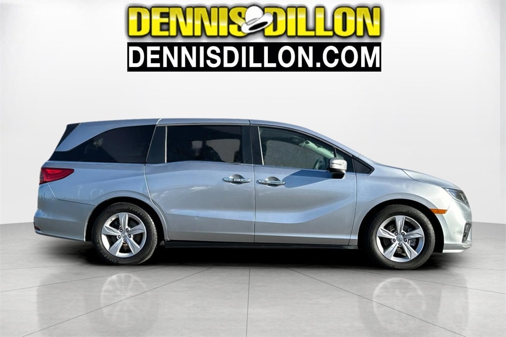 Clean CARFAX. 2019 Honda Odyssey EX FWD 9-Speed Automatic 3.5L V6 SOHC i-VTEC 24V 3rd row seats: split-bench, 4-Wheel Disc Brakes, 4.33 Axle Ratio, 7 Speakers, A/V remote: CabinControl, ABS brakes, Air Conditioning, Alloy wheels, AM/FM radio: SiriusXM, Anti-whiplash front head restraints, Apple CarPlay/Android Auto, Auto High-beam Headlights, Automatic temperature control, Blind Spot Information (BSI) System warning, Brake assist, Bumpers: body-color, Cloth Seat Trim, Delay-off headlights, Driver door bin, Driver vanity mirror, Driver's Seat Mounted Armrest, Dual front impact airbags, Dual front side impact airbags, Electronic Stability Control, Emergency communication system: HondaLink, Exterior Parking Camera Rear, Forward collision: Collision Mitigation Braking System (CMBS) + FCW mitigation, Four wheel independent suspension, Front anti-roll bar, Front Bucket Seats, Front dual zone A/C, Front fog lights, Front reading lights, Fully automatic headlights, Heated door mirrors, Heated Front Bucket Seats, Heated front seats, Illuminated entry, Knee airbag, Lane departure: Lane Keeping Assist System (LKAS) active, Low tire pressure warning, Occupant sensing airbag, Outside temperature display, Overhead airbag, Overhead console, Panic alarm, Passenger door bin, Passenger seat mounted armrest, Passenger vanity mirror, Power door mirrors, Power driver seat, Power passenger seat, Power steering, Power windows, Radio data system, Radio: 160-Watt AM/FM/HD/SiriusXM Audio System, Rear air conditioning, Rear anti-roll bar, Rear reading lights, Rear seat center armrest, Rear window defroster, Rear window wiper, Reclining 3rd row seat, Remote keyless entry, Security system, Speed control, Speed-sensing steering, Speed-Sensitive Wipers, Split folding rear seat, Spoiler, Steering wheel mounted audio controls, Tachometer, Telescoping steering wheel, Tilt steering wheel, Traction control, Trip computer, Turn signal indicator mirrors, Variably intermittent wipers, Wheels: 18" Dark Silver-Painted Alloy.