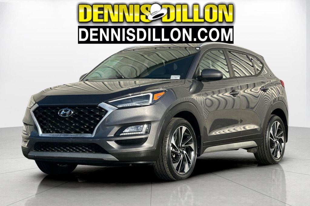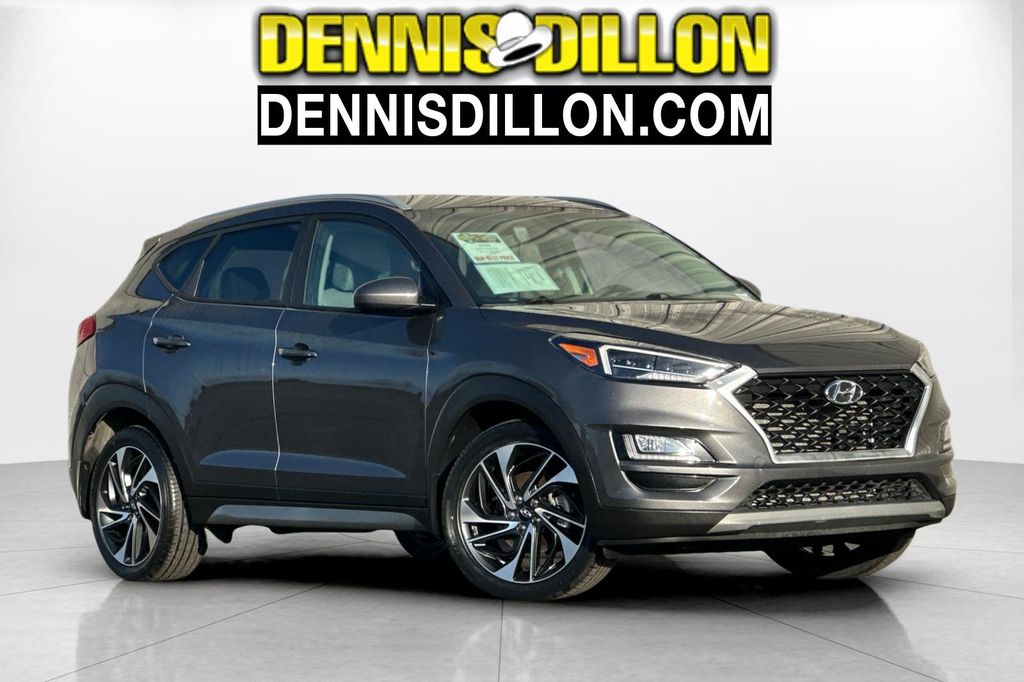 Clean CARFAX. Magnetic Force Metallic 2020 Hyundai Tucson Sport AWD 6-Speed Automatic with Shiftronic 2.4L I4 DGI DOHC 16V 4-Wheel Disc Brakes, 8 Speakers, ABS brakes, Air Conditioning, Alloy wheels, AM/FM radio: SiriusXM, Apple CarPlay & Android Auto, Auto-dimming Rear-View mirror, Automatic temperature control, Axle Ratio: 3.195, Brake assist, Bumpers: body-color, Cargo Cover, Carpeted Floor Mats, Delay-off headlights, Driver door bin, Driver vanity mirror, Dual front impact airbags, Dual front side impact airbags, Electronic Stability Control, Emergency communication system, Exterior Parking Camera Rear, Four wheel independent suspension, Front anti-roll bar, Front Bucket Seats, Front Center Armrest, Front dual zone A/C, Front fog lights, Front reading lights, Fully automatic headlights, Garage door transmitter: HomeLink, Heated door mirrors, Heated Front Bucket Seats, Heated front seats, Illuminated entry, Leather Shift Knob, Low tire pressure warning, Mudguards, Occupant sensing airbag, Option Group 01, Outside temperature display, Overhead airbag, Overhead console, Panic alarm, Passenger door bin, Passenger vanity mirror, Power door mirrors, Power driver seat, Power Liftgate, Power steering, Power windows, Radio: Infinity Audio System, Rear anti-roll bar, Rear seat center armrest, Rear window defroster, Rear window wiper, Remote keyless entry, Reversible Cargo Tray, Roof rack: rails only, Security system, Speed control, Speed-sensing steering, Split folding rear seat, Spoiler, Steering wheel mounted audio controls, Tachometer, Telescoping steering wheel, Tilt steering wheel, Traction control, Trip computer, Variably intermittent wipers, Wheel Locks, Wheels: 19" x 7.5J Alloy, YES Essentials Stain-Resistant Cloth Seat Trim.