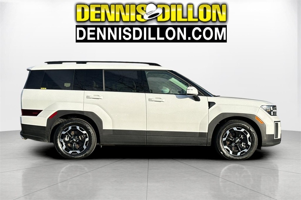 Serenity White 2024 Hyundai Santa Fe SEL AWD Shiftronic 2.5L I4 18" x 7.5J Alloy Wheels, 3rd row seats: bench, 4-Wheel Disc Brakes, 6 Speakers, ABS brakes, Air Conditioning, Alloy wheels, AM/FM radio: SiriusXM, Apple CarPlay & Android Auto, Auto High-beam Headlights, Automatic temperature control, Axle Ratio: 3.316, Brake assist, Bumpers: body-color, Delay-off headlights, Driver door bin, Driver vanity mirror, Dual front impact airbags, Dual front side impact airbags, Electronic Stability Control, Emergency communication system, Exterior Parking Camera Rear, Four wheel independent suspension, Front anti-roll bar, Front Bucket Seats, Front Center Armrest, Front dual zone A/C, Front reading lights, Fully automatic headlights, H-Tex Leatherette Seat Trim, Heated door mirrors, Heated Front Bucket Seats, Heated front seats, Illuminated entry, Knee airbag, Leather steering wheel, Low tire pressure warning, Occupant sensing airbag, Option Group 01, Outside temperature display, Overhead airbag, Overhead console, Panic alarm, Passenger door bin, Passenger vanity mirror, Power door mirrors, Power driver seat, Power Liftgate, Power steering, Power windows, Radio: AM/FM/HD Display Audio, Rear anti-roll bar, Rear seat center armrest, Rear side impact airbag, Rear window defroster, Rear window wiper, Remote keyless entry, Security system, Speed control, Speed-sensing steering, Split folding rear seat, Spoiler, Steering wheel mounted audio controls, Tachometer, Telescoping steering wheel, Tilt steering wheel, Traction control, Trip computer, Turn signal indicator mirrors, Variably intermittent wipers.
