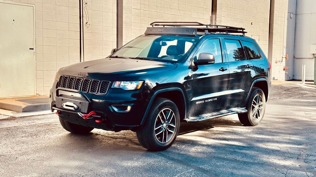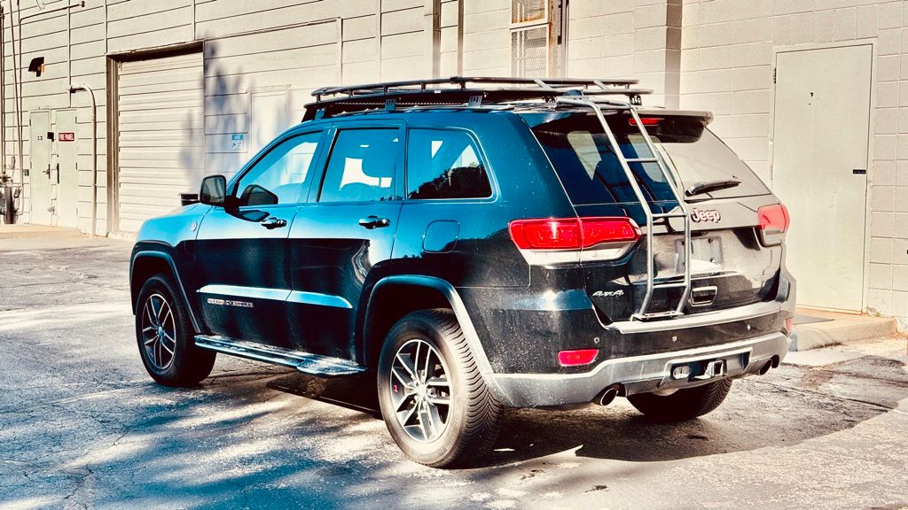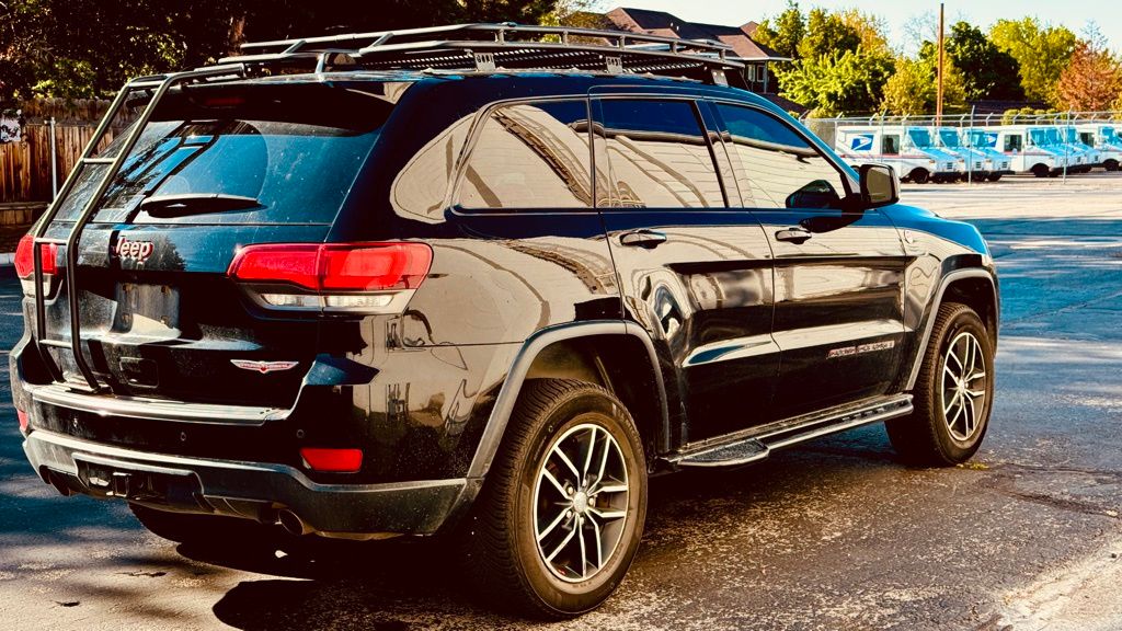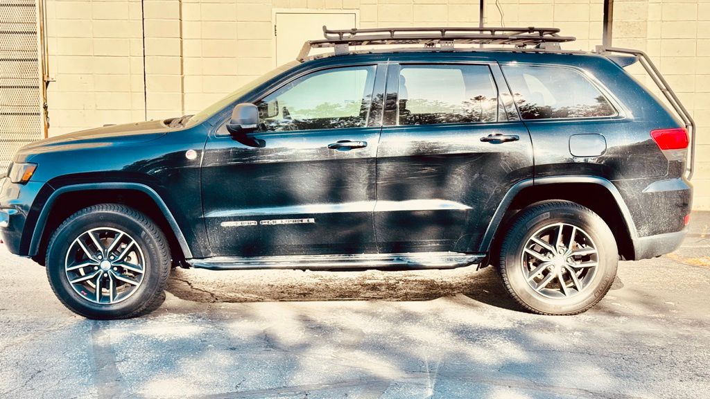 Clean CARFAX. CARFAX One-Owner. Diamond Black Crystal Pearlcoat 2018 Jeep Grand Cherokee Trailhawk 4WD 8-Speed Automatic 3.6L V6 24V VVT 10 Speakers, 230MM Rear Axle, 3.45 Rear Axle Ratio, 4-Wheel Disc Brakes, ABS brakes, Air Conditioning, Alloy wheels, AM/FM radio: SiriusXM, Anti-whiplash front head restraints, Apple CarPlay/Android Auto, Audio memory, Auto-dimming door mirrors, Auto-Dimming Exterior Passenger Mirror, Auto-dimming Rear-View mirror, Auto-leveling suspension, Automatic temperature control, Brake assist, Bumpers: body-color, Compass, Delay-off headlights, Driver door bin, Driver vanity mirror, Dual Bright Exhaust Tips, Dual front impact airbags, Dual front side impact airbags, Electronic Stability Control, Emergency communication system: SiriusXM Guardian, Engine Oil Cooler, Four wheel independent suspension, Front anti-roll bar, Front Bucket Seats, Front Center Armrest w/Storage, Front dual zone A/C, Front fog lights, Front License Plate Bracket, Front reading lights, Fully automatic headlights, Garage door transmitter, Heated door mirrors, Heated front seats, Heated rear seats, Heated steering wheel, Heavy-Duty Engine Cooling, Illuminated entry, Knee airbag, Leather Shift Knob, Low tire pressure warning, Memory seat, Navigation System, Normal Duty Suspension - Increased Travel, Occupant sensing airbag, Outside temperature display, Overhead airbag, Overhead console, Panic alarm, ParkView Rear Back-Up Camera, Passenger door bin, Passenger vanity mirror, Power door mirrors, Power driver seat, Power Liftgate, Power passenger seat, Power steering, Power windows, Quadra-Trac II 4WD System, Quick Order Package 2BJ, Radio data system, Radio: Uconnect 4C Nav w/8.4" Display, Rear anti-roll bar, Rear reading lights, Rear seat center armrest, Rear window defroster, Rear window wiper, Remote keyless entry, Roof rack: rails only, Security system, Speed control, Speed-Sensitive Wipers, Split folding rear seat, Spoiler, Steering wheel mounted audio controls, Tachometer, Telescoping steering wheel, Tilt steering wheel, Traction control, Trailhawk Leather/Suede Seats, Trip computer, Turn signal indicator mirrors, Variably intermittent wipers, Ventilated front seats, Wheels: 18" x 8.0" Off Road Aluminum.