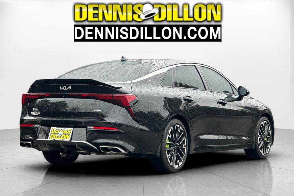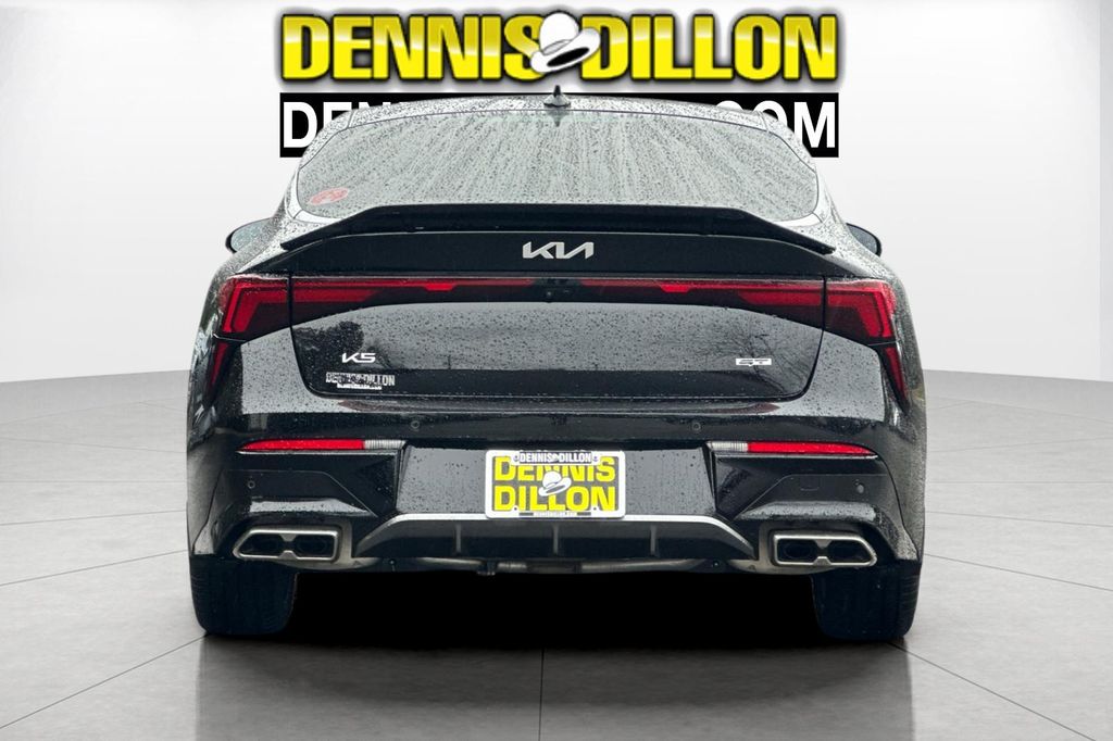 Clean CARFAX. Aurora Black Pearl 2025 Kia K5 GT FWD 8-Speed DCT 2.5L I4 DGI Turbocharged DOHC 16V LEV3-ULEV70 290hp 4-Wheel Disc Brakes, 6 Speakers, ABS brakes, Air Conditioning, Alloy wheels, AM/FM radio: SiriusXM, Auto High-beam Headlights, Automatic temperature control, Brake assist, Bumpers: body-color, Carpeted Floor Mats, Delay-off headlights, Driver door bin, Driver vanity mirror, Dual front impact airbags, Dual front side impact airbags, Electronic Stability Control, Emergency communication system: Kia Connect (includes 1 year free trial), Four wheel independent suspension, Front anti-roll bar, Front Bucket Seats, Front Center Armrest, Front dual zone A/C, Front fog lights, Front reading lights, Fully automatic headlights, Heated door mirrors, Heated front seats, Heated Sport Bucket Seats, Illuminated entry, Knee airbag, Leather Shift Knob, Leather steering wheel, Low tire pressure warning, Navigation System, Occupant sensing airbag, Outside temperature display, Overhead airbag, Overhead console, Panic alarm, Passenger door bin, Passenger vanity mirror, Power door mirrors, Power driver seat, Power moonroof, Power steering, Power windows, Radio data system, Radio: AM/FM Audio System, Rear anti-roll bar, Rear reading lights, Rear seat center armrest, Rear side impact airbag, Rear window defroster, Remote keyless entry, Security system, Speed control, Speed-sensing steering, Split folding rear seat, Sport steering wheel, Steering wheel mounted audio controls, SynTex Seat Trim, Tachometer, Telescoping steering wheel, Tilt steering wheel, Traction control, Trip computer, Turn signal indicator mirrors, Variably intermittent wipers, Wheels: 19" x 8.0J Gloss Black Machined Finish Alloy.