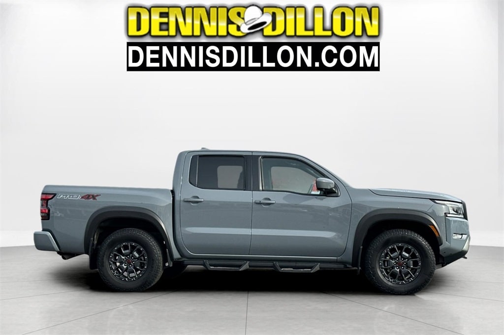Clean CARFAX. Boulder Gray Pearl 2023 Nissan Frontier PRO-4X 4WD 9-Speed Automatic 3.8L DI DOHC 24V V6 17" Accessory Dark Beadlock Style Alloy Wheels, 17" Alloy Wheels, 3.692 Axle Ratio, 4-Wheel Disc Brakes, 6 Speakers, ABS brakes, Air Conditioning, Alloy wheels, AM/FM radio: SiriusXM, Anti-whiplash front head restraints, Automatic temperature control, Brake assist, Bumpers: body-color, Delay-off headlights, Driver door bin, Driver vanity mirror, Dual front impact airbags, Dual front side impact airbags, Electronic Stability Control, Electronic Tailgate Lock, Emergency communication system: NissanConnect Services, Front anti-roll bar, Front Bucket Seats, Front Center Armrest, Front dual zone A/C, Front fog lights, Front reading lights, Front wheel independent suspension, Fully automatic headlights, Heated Steering Wheel, Illuminated entry, Illuminated Kick Plates, Intelligent Around View Monitor (I-AVM), Knee airbag, Leather Shift Knob, Low tire pressure warning, Navigation system: Nissan Navigation with Voice Recognition, Occupant sensing airbag, Off-Road Protection Package, Off-Road Style Step Rails, Overhead airbag, Overhead console, Panic alarm, Passenger door bin, Passenger vanity mirror, Power door mirrors, Power driver seat, Power steering, Power windows, PRO Convenience Package, PRO Embroidered Premium Cloth Seat Trim, PRO-4X Carpeted Floor Mats, PRO-4X Mud Flaps, PRO-4X Premium Package, Radio data system, Radio: SXM/AM/FM/AUX/USB Audio System w/6 Speakers, Rear anti-roll bar, Rear seat center armrest, Rear step bumper, Remote keyless entry, Security system, Speed control, Speed-sensing steering, Split folding rear seat, Steering wheel mounted audio controls, Tachometer, Tilt steering wheel, Tow Package: Hitch, Tow Harness, Traction control, Trip computer, Variably intermittent wipers, Voltmeter, Wireless Charging For Personal Devices.