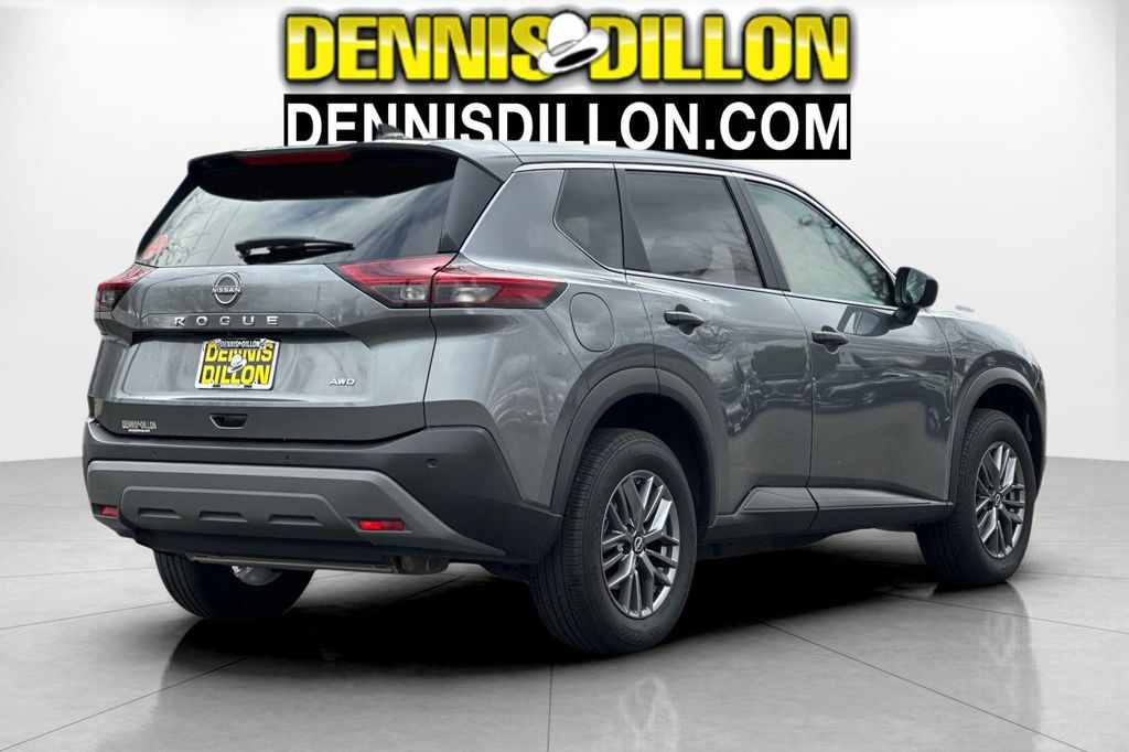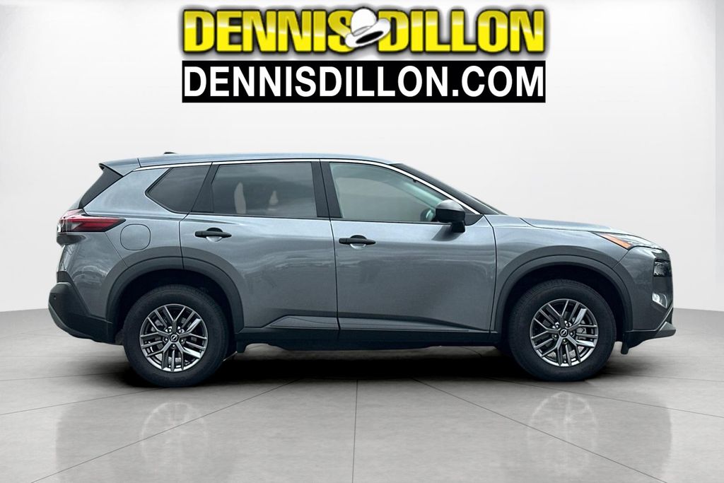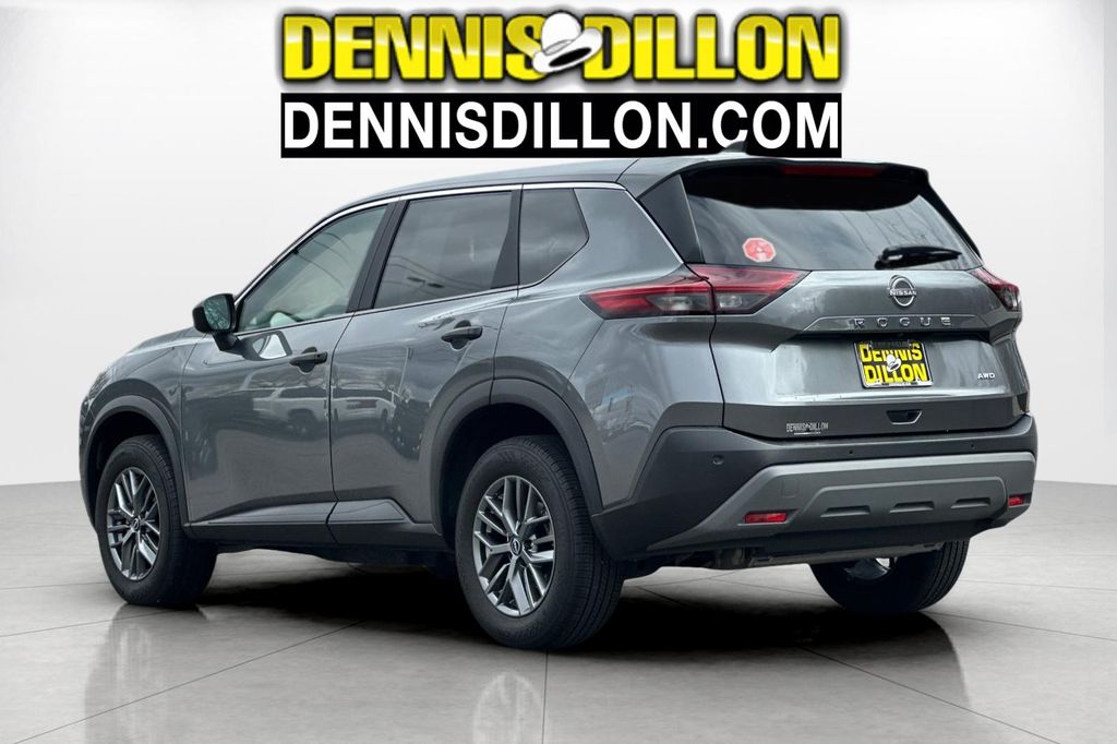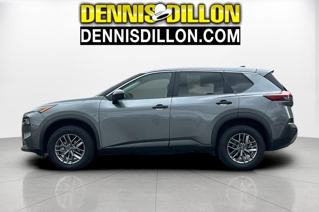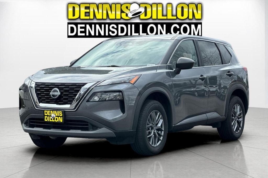 Gun Metallic 2023 Nissan Rogue S AWD CVT with Xtronic 1.5L I3 Turbocharged DOHC 12V LEV3-ULEV50 201hp 17" Aluminum Alloy Wheels, 4 Speakers, 4-Wheel Disc Brakes, 5.604 Axle Ratio, ABS brakes, Air Conditioning, Alloy wheels, AM/FM Radio, AM/FM radio: SiriusXM, Auto High-beam Headlights, Blind Spot Warning, Brake assist, Bumpers: body-color, Cloth Seat Trim, Delay-off headlights, Driver door bin, Driver vanity mirror, Dual front impact airbags, Dual front side impact airbags, Electronic Stability Control, First Aid Kit, Floor Mats w/1-Piece Cargo Area Protector, Four wheel independent suspension, Front anti-roll bar, Front Bucket Seats, Front Center Armrest, Front reading lights, Fully automatic headlights, Illuminated entry, Knee airbag, Low tire pressure warning, NissanConnect featuring Apple CarPlay and Android Auto, Occupant sensing airbag, Outside temperature display, Overhead airbag, Overhead console, Panic alarm, Passenger door bin, Passenger vanity mirror, Power door mirrors, Power steering, Power windows, Radio data system, Rear anti-roll bar, Rear Parking Sensors, Rear seat center armrest, Rear side impact airbag, Rear window defroster, Rear window wiper, Remote keyless entry, Speed control, Speed-Sensitive Wipers, Split folding rear seat, Spoiler, Steering wheel mounted audio controls, Tachometer, Telescoping steering wheel, Tilt steering wheel, Traction control, Trip computer, Variably intermittent wipers.