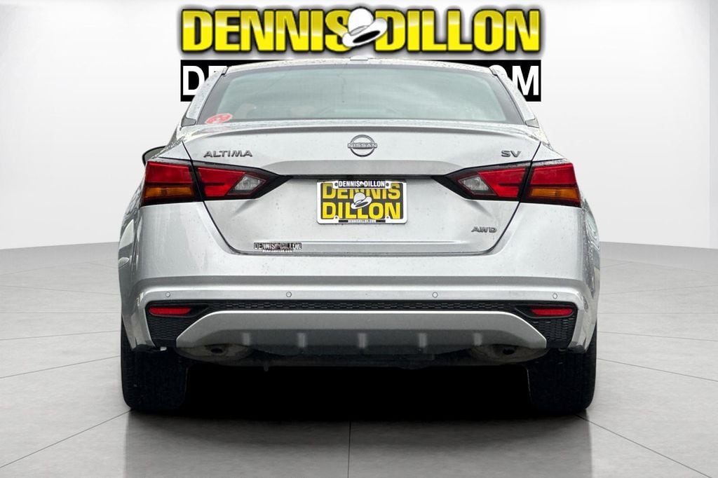 Clean CARFAX. Brilliant Silver Metallic 2024 Nissan Altima 2.5 SV AWD CVT with Xtronic 2.5L 4-Cylinder DOHC 16V 17" Machined Alloy Wheels, 4-Wheel Disc Brakes, 6 Speakers, ABS brakes, Air Conditioning, Alloy wheels, AM/FM radio: SiriusXM, Auto High-beam Headlights, Blind Spot Warning, Brake assist, Bumpers: body-color, Cloth Seat Trim, Delay-off headlights, Driver door bin, Driver vanity mirror, Dual front impact airbags, Dual front side impact airbags, Electronic Stability Control, Four wheel independent suspension, Front anti-roll bar, Front Bucket Seats, Front Center Armrest, Front reading lights, Fully automatic headlights, Illuminated entry, Knee airbag, Low tire pressure warning, NissanConnect featuring Apple CarPlay, Occupant sensing airbag, Outside temperature display, Overhead airbag, Overhead console, Panic alarm, Passenger door bin, Passenger vanity mirror, Power door mirrors, Power driver seat, Power steering, Power windows, Radio data system, Radio: AM/FM Audio System, Rear anti-roll bar, Rear Parking Sensors, Rear reading lights, Rear seat center armrest, Rear side impact airbag, Rear window defroster, Remote keyless entry, Security system, Speed control, Speed-sensing steering, Speed-Sensitive Wipers, Split folding rear seat, Steering wheel mounted audio controls, Tachometer, Telescoping steering wheel, Tilt steering wheel, Traction control, Trip computer, Variably intermittent wipers.