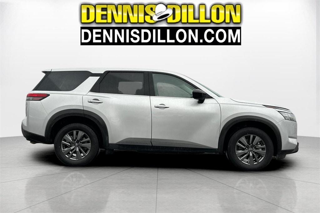 Clean CARFAX. Brilliant Silver Metallic 2024 Nissan Pathfinder S 4WD 9-Speed Automatic 3.5L V6 DOHC 3rd row seats: bench, 4-Wheel Disc Brakes, 6 Speakers, ABS brakes, Air Conditioning, Alloy wheels, AM/FM radio: SiriusXM, Auto High-beam Headlights, Automatic temperature control, Axle Ratio: 4.334, Bench Seat Carpeted Floor Mats (Set of 4), Blind Spot Warning, Brake assist, Bumpers: body-color, Cloth Seating Surfaces, Delay-off headlights, Driver door bin, Driver vanity mirror, Dual front impact airbags, Dual front side impact airbags, Electronic Stability Control, Four wheel independent suspension, Front anti-roll bar, Front Bucket Seats, Front Center Armrest, Front dual zone A/C, Front reading lights, Fully automatic headlights, Illuminated entry, Knee airbag, Low tire pressure warning, NissanConnect featuring Apple CarPlay and Android Auto, Occupant sensing airbag, Outside temperature display, Overhead airbag, Overhead console, Panic alarm, Passenger door bin, Passenger vanity mirror, Power door mirrors, Power steering, Power windows, Radio data system, Radio: AM/FM Audio System, Rear air conditioning, Rear anti-roll bar, Rear Parking Sensors, Rear reading lights, Rear side impact airbag, Rear window defroster, Rear window wiper, Reclining 3rd row seat, Remote keyless entry, Security system, Speed control, Speed-sensing steering, Split folding rear seat, Spoiler, Steering wheel mounted audio controls, Tachometer, Telescoping steering wheel, Tilt steering wheel, Traction control, Trip computer, Variably intermittent wipers, Wheels: 18" x 8J Painted Alloy.