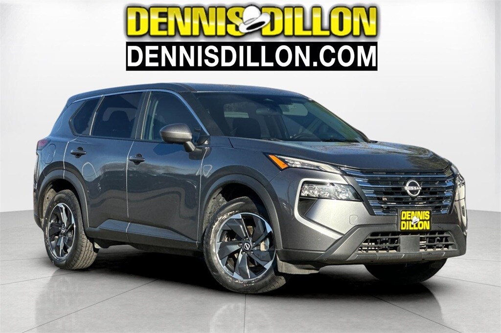 Clean CARFAX. Gun Metallic 2024 Nissan Rogue SV AWD CVT with Xtronic 1.5L DOHC 4-Wheel Disc Brakes, 5.676 Axle Ratio, 6 Speakers, ABS brakes, Air Conditioning, Alloy wheels, AM/FM radio: SiriusXM, Auto High-beam Headlights, Automatic temperature control, Brake assist, Bumpers: body-color, Cloth Seat Trim w/Patterned Inserts, Delay-off headlights, Driver door bin, Driver vanity mirror, Dual front impact airbags, Dual front side impact airbags, Electronic Stability Control, Emergency communication system: NissanConnect Services, Four wheel independent suspension, Front anti-roll bar, Front Bucket Seats, Front Center Armrest, Front dual zone A/C, Front reading lights, Fully automatic headlights, Heated door mirrors, Illuminated entry, Knee airbag, Low tire pressure warning, NissanConnect featuring Apple CarPlay and Android Auto, Occupant sensing airbag, Outside temperature display, Overhead airbag, Overhead console, Panic alarm, Passenger door bin, Passenger vanity mirror, Power door mirrors, Power driver seat, Power Liftgate, Power steering, Power windows, Radio data system, Radio: AM/FM NissanConnect, Rear anti-roll bar, Rear Parking Sensors, Rear seat center armrest, Rear side impact airbag, Rear window defroster, Rear window wiper, Remote keyless entry, Speed control, Speed-Sensitive Wipers, Split folding rear seat, Spoiler, Steering wheel mounted audio controls, Tachometer, Telescoping steering wheel, Tilt steering wheel, Traction control, Trip computer, Variably intermittent wipers, Wheels: 18" Dark Painted Machine Finished Alloy.
