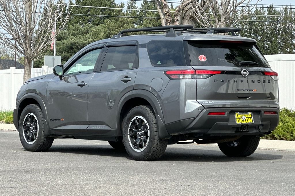 Clean CARFAX. CARFAX One-Owner. Gun Metallic 2025 Nissan Pathfinder Rock Creek 4WD 9-Speed Automatic 3.5L V6 DOHC 3rd row seats: bench, 4-Wheel Disc Brakes, 6 Speakers, ABS brakes, Air Conditioning, Alloy wheels, AM/FM radio: SiriusXM, Auto High-beam Headlights, Automatic temperature control, Black Splash Guards (set of 4), Brake assist, Delay-off headlights, Driver door bin, Driver vanity mirror, Dual front impact airbags, Dual front side impact airbags, Electronic Stability Control, Emergency communication system, Four wheel independent suspension, Front anti-roll bar, Front Bucket Seats, Front Center Armrest, Front dual zone A/C, Front fog lights, Front reading lights, Fully automatic headlights, Heated door mirrors, Heated Front Bucket Seats, Heated front seats, Illuminated entry, Knee airbag, Leather steering wheel, Leatherette-Appointed Seating Surfaces, Low tire pressure warning, NissanConnect featuring Apple CarPlay and Android Auto, Occupant sensing airbag, Outside temperature display, Overhead airbag, Overhead console, Panic alarm, Passenger door bin, Passenger vanity mirror, Power door mirrors, Power driver seat, Power Liftgate, Power steering, Power windows, Radio data system, Radio: AM/FM Audio System with NissanConnect, Rear air conditioning, Rear anti-roll bar, Rear Parking Sensors, Rear reading lights, Rear side impact airbag, Rear window defroster, Rear window wiper, Reclining 3rd row seat, Remote keyless entry, Rock Creek All-Season Floor Liners and All-Season Cargo Area Protector, Rock Creek Roof Rack, Roof rack, Security system, Speed control, Speed-sensing steering, Split folding rear seat, Spoiler, Steering wheel mounted audio controls, Tachometer, Telescoping steering wheel, Tilt steering wheel, Traction control, Trip computer, Turn signal indicator mirrors, Variably intermittent wipers, Wheels: 18" x 8J Machined Alloy with Black Finish.