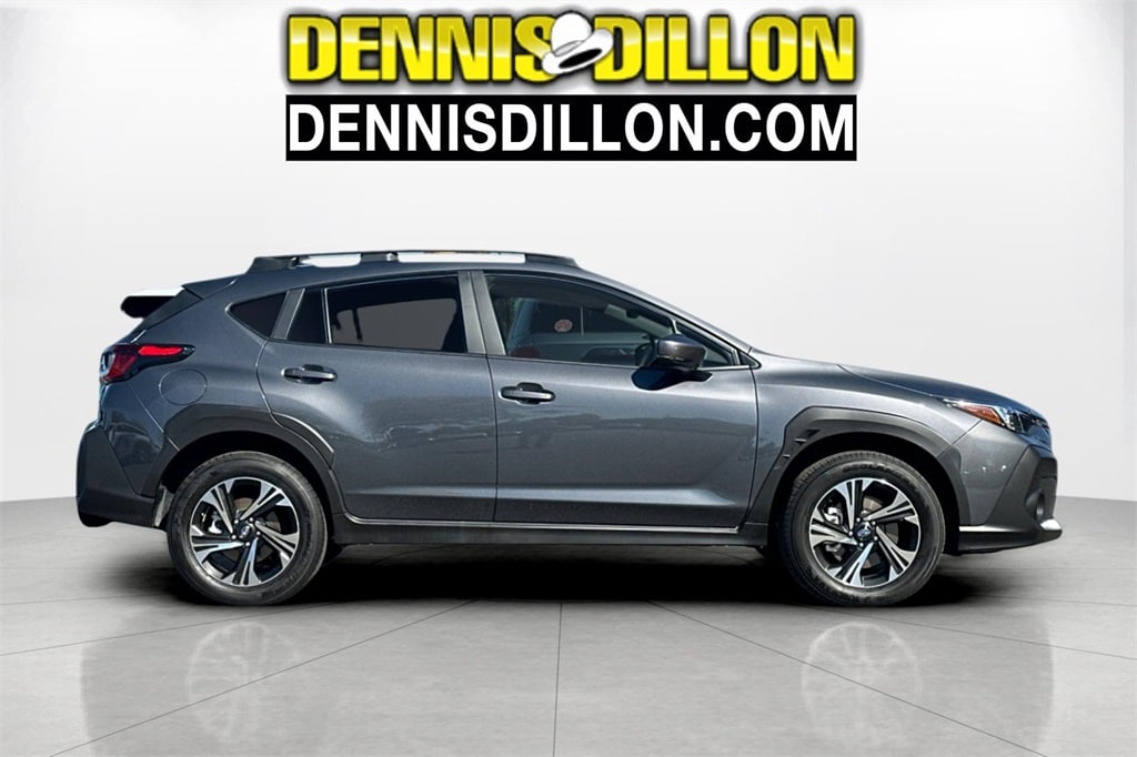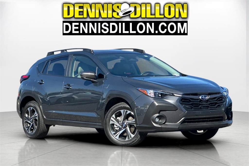 Clean CARFAX. Magnetite Gray Metallic 2024 Subaru Crosstrek Premium AWD Lineartronic CVT 2.0L 4-Cylinder DOHC 16V 10-Way Power Driver's Seat, 3.90 Axle Ratio, 4-Wheel Disc Brakes, 6 Speakers, ABS brakes, Air Conditioning, All-Weather Floor Liners, All-Weather Package, Alloy wheels, AM/FM radio: SiriusXM, Anti-whiplash front head restraints, Auto High-beam Headlights, Auto-Dimming Exterior Mirror w/Approach Light, Auto-Dimming Mirror w/Compass & HomeLink, Automatic temperature control, Blind Spot Detection w/Rear Cross-Traffic Alert, Brake assist, BSD/RCTA & Moonrf & All Weather Pkg & Pwr Dr. Seat, Bumpers: body-color, Cargo Cover, Crosstrek Mirror Package, Driver door bin, Driver vanity mirror, Dual front impact airbags, Dual front side impact airbags, Electronic Stability Control, Emergency communication system: STARLINK Safety and Security (Subscription Required), Exterior Parking Camera Rear, Four wheel independent suspension, Front anti-roll bar, Front Bucket Seats, Front Center Armrest, Front dual zone A/C, Front fog lights, Front reading lights, Fully automatic headlights, Heated Exterior Mirrors, Heated Front Seats, Heated Wipers, Illuminated entry, Knee airbag, Low tire pressure warning, Occupant sensing airbag, Outside temperature display, Overhead airbag, Overhead console, Panic alarm, Passenger door bin, Passenger vanity mirror, Power door mirrors, Power Moonroof, Power steering, Power windows, Premium Cloth Upholstery, Radio data system, Radio: Subaru STARLINK 11.6" Multimedia Plus Sys, Rear anti-roll bar, Rear seat center armrest, Rear window defroster, Rear window wiper, Remote keyless entry, Security system, Speed control, Speed-sensing steering, Split folding rear seat, Spoiler, STARLINK/Apple CarPlay/Android Auto, Steering wheel mounted audio controls, Tachometer, Telescoping steering wheel, Tilt steering wheel, Traction control, Trip computer, Turn signal indicator mirrors, Variably intermittent wipers, Wheels: 17" x 7.0J Dark Gray Aluminum Alloy.