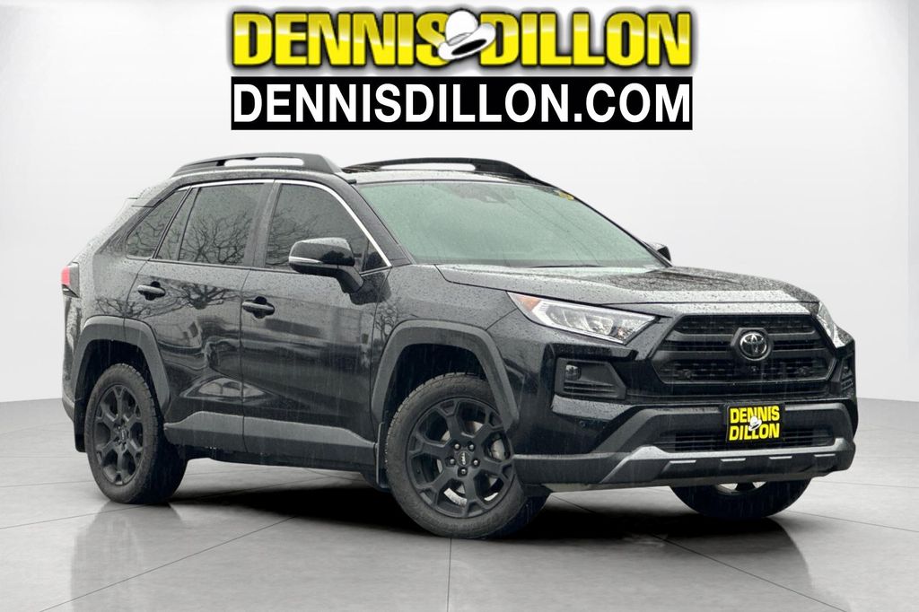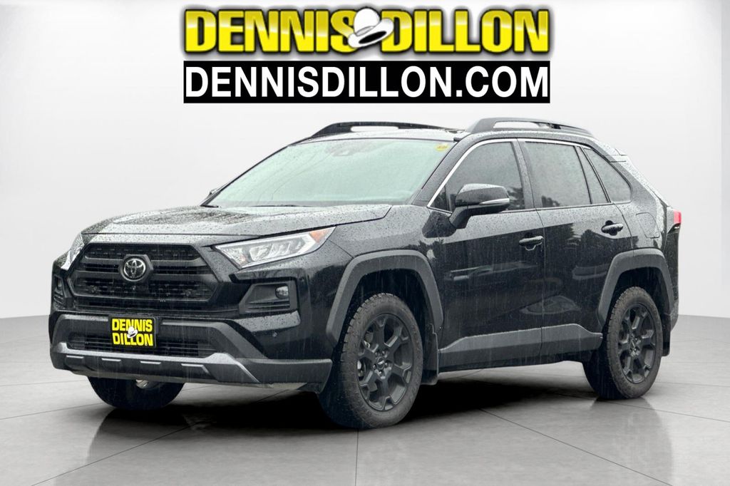 Black 2021 Toyota RAV4 TRD Off Road AWD 8-Speed Automatic 2.5L 4-Cylinder DOHC Dual VVT-i 4-Wheel Disc Brakes, 6 Speakers, ABS brakes, Air Conditioning, All Weather Floor Mats w/Cargo Tray, Alloy wheels, AM/FM radio: SiriusXM, Apple CarPlay/Android Auto, Auto High-beam Headlights, Automatic temperature control, Axle Ratio: 3.177, Brake assist, Bumpers: body-color, Delay-off headlights, Driver door bin, Driver vanity mirror, Dual front impact airbags, Dual front side impact airbags, Electronic Stability Control, Emergency communication system, Exterior Parking Camera Rear, Four wheel independent suspension, Front anti-roll bar, Front Bucket Seats, Front Center Armrest, Front Door Smart Key System w/Push Button Start, Front dual zone A/C, Front fog lights, Front LED Fog & Driving Lamp, Front reading lights, Fully automatic headlights, Heated door mirrors, Illuminated entry, Knee airbag, Low tire pressure warning, Occupant sensing airbag, Outside temperature display, Overhead airbag, Overhead console, Panic alarm, Passenger door bin, Passenger vanity mirror, Power door mirrors, Power driver seat, Power Liftgate, Power moonroof, Power steering, Power windows, Radio data system, Radio: Audio Plus, Rear anti-roll bar, Rear seat center armrest, Rear window defroster, Rear window wiper, Remote keyless entry, Roof rack: rails only, Security system, SofTex TRD Off Road Seat Trim, Speed control, Speed-sensing steering, Split folding rear seat, Spoiler, Steering wheel mounted audio controls, Tachometer, Telescoping steering wheel, Tilt & Slide Moon Roof, Tilt steering wheel, Traction control, Trip computer, Turn signal indicator mirrors, Variably intermittent wipers, Wheels: 18" 6-Spoke Matte-Black Alloy.