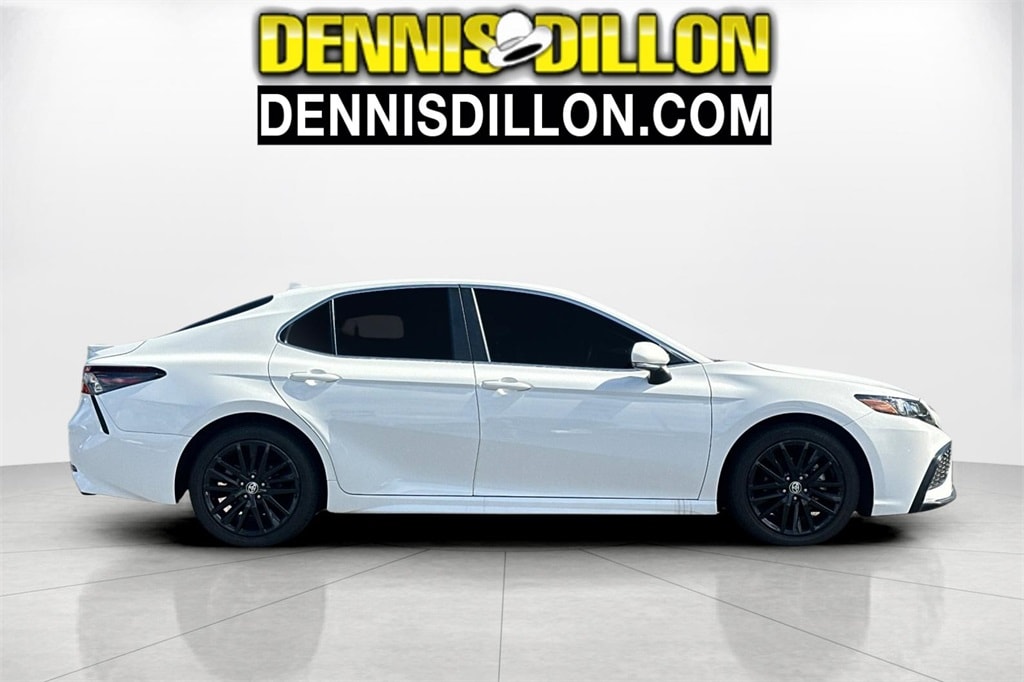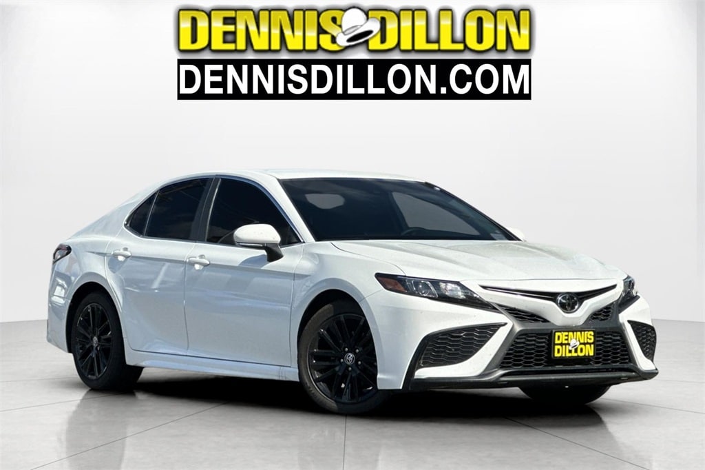 Clean CARFAX. White 2023 Toyota Camry FWD 8-Speed Automatic 2.5L I4 DOHC 16V 4-Wheel Disc Brakes, 6 Speakers, ABS brakes, Air Conditioning, Alloy wheels, AM/FM radio: SiriusXM, Apple CarPlay/Android Auto, Auto High-beam Headlights, Automatic temperature control, Brake assist, Bumpers: body-color, Delay-off headlights, Driver door bin, Driver vanity mirror, Dual front impact airbags, Dual front side impact airbags, Electronic Stability Control, Emergency communication system: Safety Connect (1-year trial), Exterior Parking Camera Rear, Four wheel independent suspension, Front anti-roll bar, Front Bucket Seats, Front Center Armrest, Front dual zone A/C, Front reading lights, Fully automatic headlights, Heated door mirrors, Illuminated entry, Knee airbag, Leather steering wheel, Low tire pressure warning, Occupant sensing airbag, Outside temperature display, Overhead airbag, Overhead console, Panic alarm, Passenger door bin, Passenger vanity mirror, Power door mirrors, Power driver seat, Power steering, Power windows, Radio data system, Radio: Audio, Rear anti-roll bar, Rear seat center armrest, Rear side impact airbag, Rear window defroster, Remote keyless entry, Security system, Speed control, Speed-sensing steering, Split folding rear seat, Spoiler, Sport SofTex Seat Trim w/Fabric Inserts, Steering wheel mounted audio controls, Tachometer, Telescoping steering wheel, Tilt steering wheel, Traction control, Trip computer, Turn signal indicator mirrors, Variably intermittent wipers.