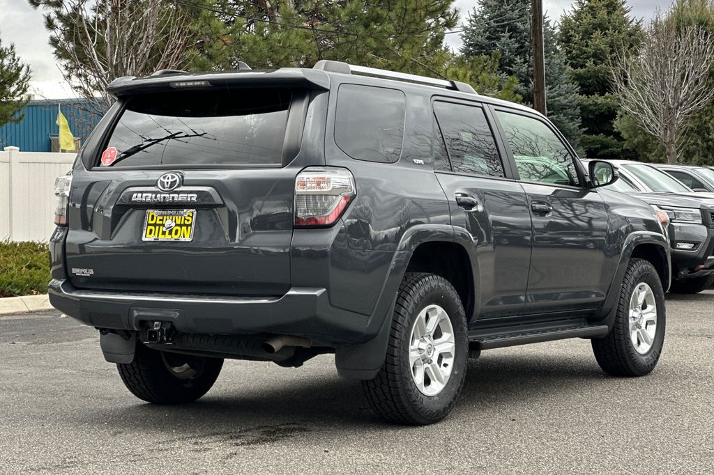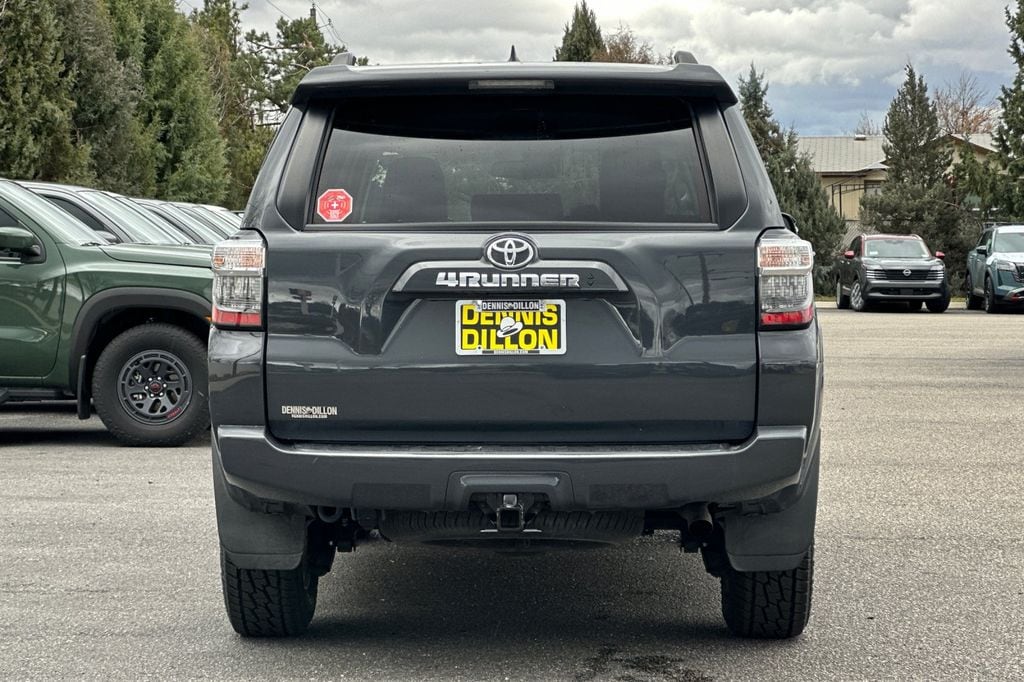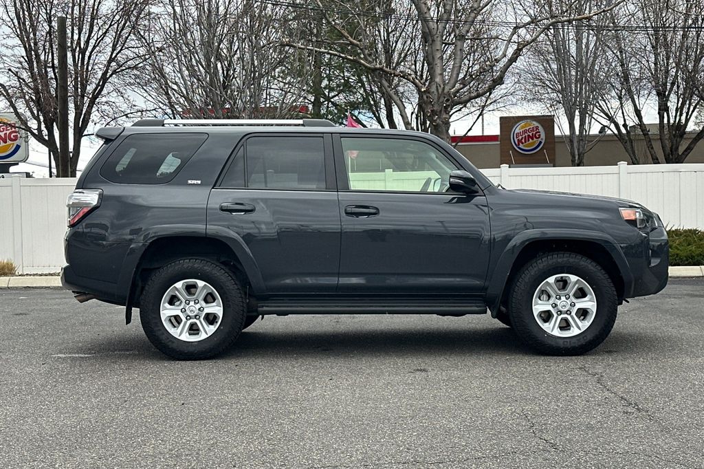 Clean CARFAX. Magnetic Gray 2024 Toyota 4Runner SR5 Premium 4WD 5-Speed with ECT 4.0L V6 DOHC 24V 17" 6-Spoke Alloy Wheels, 3.727 Axle Ratio, 4-Wheel Disc Brakes, 8 Speakers, ABS brakes, Air Conditioning, Alloy wheels, AM/FM radio: SiriusXM, Anti-whiplash front head restraints, Apple CarPlay/Android Auto, Auto High-beam Headlights, Auto-dimming Rear-View mirror, Brake assist, Bumpers: body-color, Compass, Driver door bin, Driver vanity mirror, Dual front impact airbags, Dual front side impact airbags, Electronic Stability Control, Emergency communication system: Safety Connect (1-year trial), Exterior Parking Camera Rear, Front anti-roll bar, Front Bucket Seats, Front Center Armrest, Front fog lights, Front reading lights, Front wheel independent suspension, Garage Door Opener, Garage door transmitter: HomeLink, Heated door mirrors, Heated Front Bucket Seats, Heated front seats, Heated Outside Rear-View Mirrors, Heated steering wheel, Illuminated entry, Knee airbag, Leather Shift Knob, Leather steering wheel, Low tire pressure warning, Navigation System, Occupant sensing airbag, Outside temperature display, Overhead airbag, Overhead console, Panic alarm, Passenger door bin, Passenger vanity mirror, Power door mirrors, Power driver seat, Power passenger seat, Power steering, Power windows, Radio: Premium Audio, Rear anti-roll bar, Rear seat center armrest, Rear window defroster, Rear window wiper, Remote keyless entry, Security system, SofTex Seat Trim, Speed control, Speed-sensing steering, Split folding rear seat, Spoiler, Steering wheel mounted audio controls, Tachometer, Telescoping steering wheel, Tilt steering wheel, Traction control, Trip computer, Turn signal indicator mirrors, Variably intermittent wipers.
