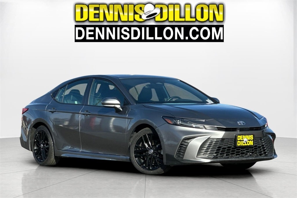 Clean CARFAX. 2025 Toyota Camry FWD eCVT 2.5L 4-Cylinder 16V DOHC 4-Wheel Disc Brakes, 6 Speakers, ABS brakes, Air Conditioning, Alloy wheels, AM/FM radio: SiriusXM, Apple CarPlay/Android Auto, Auto High-beam Headlights, Automatic temperature control, Brake assist, Bumpers: body-color, Delay-off headlights, Driver door bin, Driver vanity mirror, Dual front impact airbags, Dual front side impact airbags, Electronic Stability Control, Emergency communication system: Safety Connect (up to 10-year trial subscription), Exterior Parking Camera Rear, Four wheel independent suspension, Front anti-roll bar, Front Bucket Seats, Front Center Armrest, Front dual zone A/C, Front reading lights, Fully automatic headlights, Heated door mirrors, Illuminated entry, Knee airbag, Low tire pressure warning, Occupant sensing airbag, Outside temperature display, Overhead airbag, Overhead console, Panic alarm, Passenger door bin, Passenger vanity mirror, Power door mirrors, Power steering, Power windows, Radio data system, Rear anti-roll bar, Rear seat center armrest, Rear side impact airbag, Rear window defroster, Remote keyless entry, Security system, Speed control, Speed-sensing steering, Split folding rear seat, Steering wheel mounted audio controls, Telescoping steering wheel, Tilt steering wheel, Traction control, Trip computer, Turn signal indicator mirrors, Variably intermittent wipers.