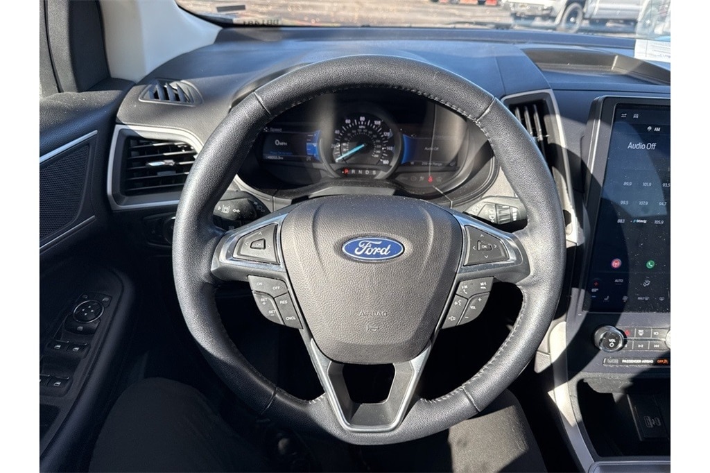 2023 Ford Edge SEL AWD 8-Speed Automatic EcoBoost 2.0L I4 GTDi DOHC Turbocharged VCT 3.80 Axle Ratio, 4-Wheel Disc Brakes, 6 Speakers, ABS brakes, ActiveX Seating Material Heated Bucket Seats, Air Conditioning, Alloy wheels, AM/FM radio: SiriusXM with 360L, Auto High-beam Headlights, Auto-dimming Rear-View mirror, Automatic temperature control, Brake assist, Bumpers: body-color, Compass, Delay-off headlights, Driver door bin, Driver vanity mirror, Dual front impact airbags, Dual front side impact airbags, Electronic Stability Control, Emergency communication system: SYNC 4 911 Assist, FordPass Connect, Four wheel independent suspension, Front anti-roll bar, Front Bucket Seats, Front Center Armrest w/Storage, Front dual zone A/C, Front reading lights, Fully automatic headlights, Heated door mirrors, Heated front seats, Illuminated entry, Knee airbag, Leather steering wheel, Leather-Wrapped Steering Wheel, Low tire pressure warning, Occupant sensing airbag, Outside temperature display, Overhead airbag, Overhead console, Panic alarm, Passenger door bin, Passenger vanity mirror, Power door mirrors, Power driver seat, Power passenger seat, Power steering, Power windows, Radio: AM/FM Stereo/MP3 Capable, Rear anti-roll bar, Rear Parking Sensors, Rear reading lights, Rear seat center armrest, Rear window defroster, Rear window wiper, Remote keyless entry, SiriusXM w/360L, Speed control, Speed-Sensitive Wipers, Split folding rear seat, Spoiler, Steering wheel mounted audio controls, SYNC 4A w/Enhanced Voice Recognition, Tachometer, Telescoping steering wheel, Tilt steering wheel, Traction control, Trip computer, Variably intermittent wipers, Wheels: 18" Sparkle Silver-Painted Aluminum.
