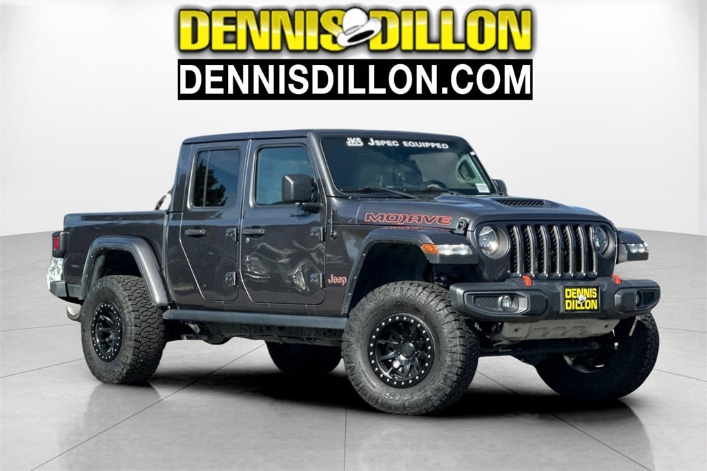 Clean CARFAX. Granite Crystal Metallic Clearcoat 2022 Jeep Gladiator Mojave 4WD 8-Speed Automatic 3.6L V6 24V VVT 240 Amp Alternator, 4-Wheel Disc Brakes, 4.10 Rear Axle Ratio, 9 Speakers, 97 MPH Vehicle Max Speed Calibration, ABS brakes, Air Conditioning, Alloy wheels, AM/FM radio: SiriusXM, Apple CarPlay/Android Auto, Auto-dimming Rear-View mirror, Automatic temperature control, Body Color 3-Piece Hard Top, Body Color Fender Flares (2-Piece), Brake assist, Class IV Receiver Hitch, Cold Weather Group, Compass, Delay-off headlights, Driver door bin, Driver vanity mirror, Dual front impact airbags, Dual front side impact airbags, Electronic Stability Control, Emergency communication system: SiriusXM Guardian, Freedom Panel Storage Bag, Front anti-roll bar, Front Bucket Seats, Front Center Armrest w/Storage, Front dual zone A/C, Front fog lights, Front License Plate Bracket, Front reading lights, Fully automatic headlights, Garage door transmitter, Heated door mirrors, Heated Front Seats, Heated Steering Wheel, Heavy Duty Suspension w/Gas Shocks, Heavy-Duty Engine Cooling, Illuminated entry, Integrated roll-over protection, Leather steering wheel, Low tire pressure warning, MOPAR Grab Handle Kit, MOPAR Hardtop Headliner, MOPAR Spray In Bedliner, Navigation System, No Soft Top, Occupant sensing airbag, Outside temperature display, Panic alarm, ParkView Rear Back-Up Camera, Passenger door bin, Passenger vanity mirror, Power door mirrors, Power steering, Power windows, Premium Cloth Seats w/Sport Bolsters, Quick Order Package 24D, Radio data system, Radio: Uconnect 4C Nav w/8.4" Display, Rear anti-roll bar, Rear reading lights, Rear Sliding Window, Rear Window Defroster, Remote keyless entry, Remote Start System, Security system, Speed control, Split folding rear seat, Steering wheel mounted audio controls, Tachometer, Telescoping steering wheel, Tilt steering wheel, Traction control, Trailer Hitch Zoom, Trailer Tow Package, Trip computer, Variably intermittent wipers, Voltmeter, Wheels: 17" x 7.5" Low Gloss Black Aluminum.