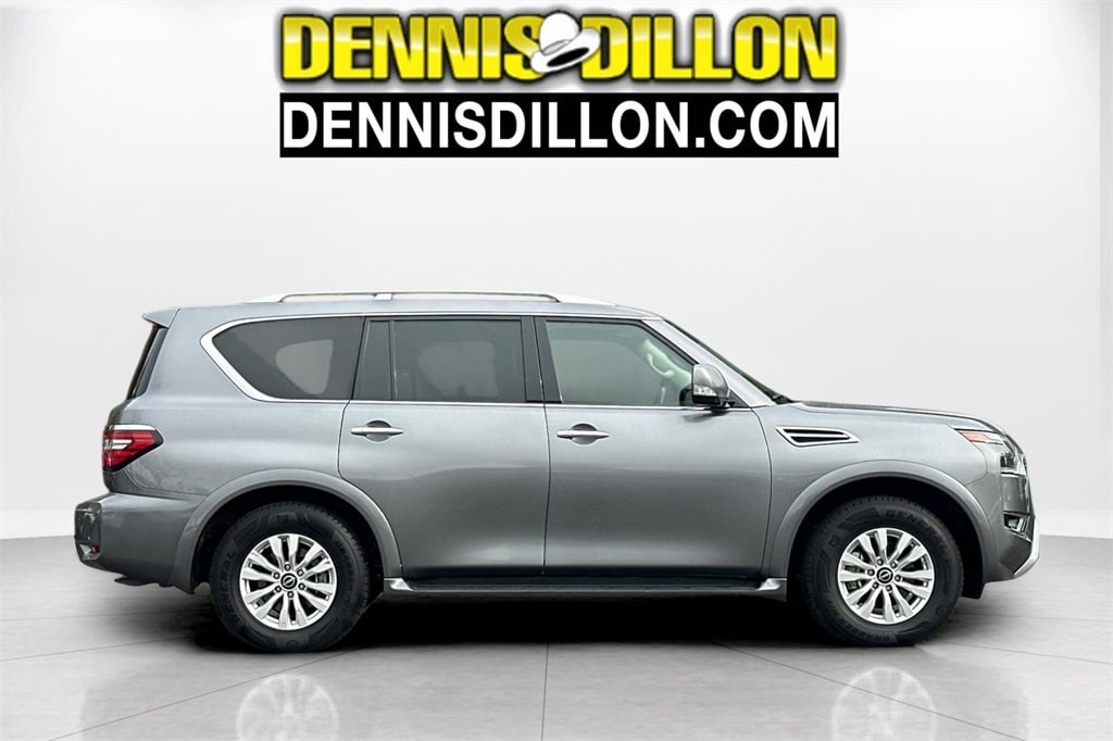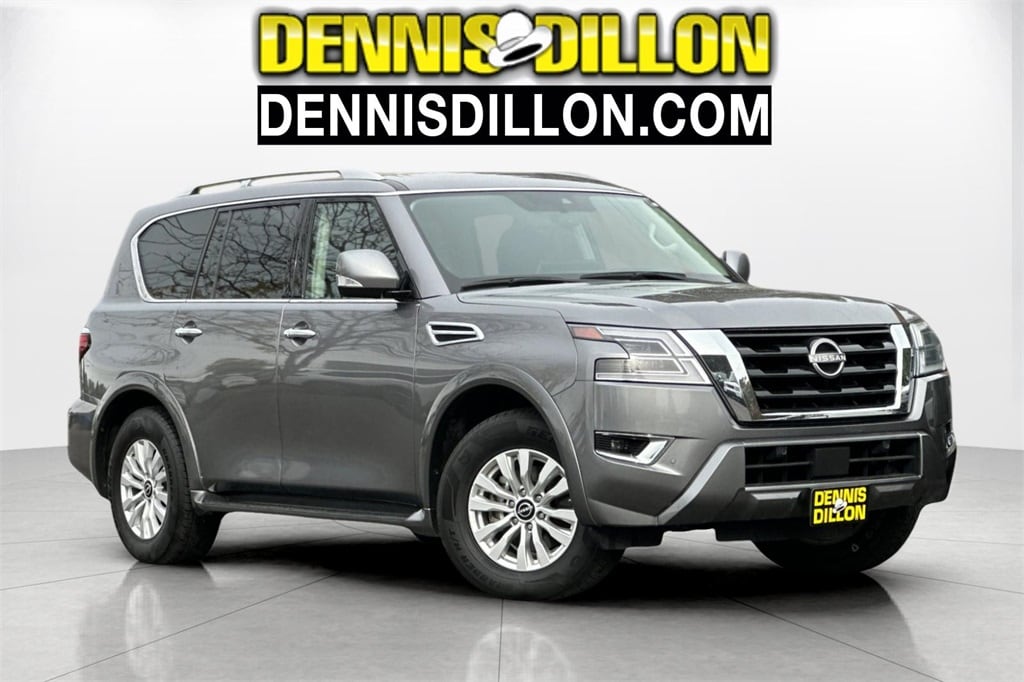 Clean CARFAX. Gun Metallic 2024 Nissan Armada SV 4WD 7-Speed Automatic 5.6L V8 DOHC 32V LEV3-ULEV125 400hp 18" x 8J Alloy Wheels, 2.937 Axle Ratio, 3rd row seats: split-bench, 4-Wheel Disc Brakes, 6 Speakers, ABS brakes, Air Conditioning, Alloy wheels, AM/FM radio: SiriusXM, Anti-whiplash front head restraints, Auto High-beam Headlights, Auto tilt-away steering wheel, Auto-dimming Rear-View mirror, Auto-leveling suspension, Automatic temperature control, Brake assist, Bumpers: body-color, Delay-off headlights, Driver door bin, Driver vanity mirror, Dual front impact airbags, Dual front side impact airbags, Electronic Stability Control, Emergency communication system: NissanConnect Services, Exterior Parking Camera Rear, Four wheel independent suspension, Front anti-roll bar, Front Bucket Seats, Front Center Armrest, Front dual zone A/C, Front fog lights, Front reading lights, Fully automatic headlights, Garage door transmitter: HomeLink, Heated door mirrors, Heated Front Bucket Seats, Heated front seats, Illuminated entry, Knee airbag, Leather Shift Knob, Leather steering wheel, Leatherette Seat Trim, Low tire pressure warning, Navigation System, Occupant sensing airbag, Outside temperature display, Overhead airbag, Overhead console, Panic alarm, Passenger door bin, Passenger vanity mirror, Power door mirrors, Power driver seat, Power passenger seat, Power steering, Power windows, Radio: NissanConnect w/SiriusXM, Rear air conditioning, Rear anti-roll bar, Rear reading lights, Rear seat center armrest, Rear window defroster, Rear window wiper, Reclining 3rd row seat, Remote keyless entry, Security system, Speed control, Speed-sensing steering, Speed-Sensitive Wipers, Split folding rear seat, Spoiler, Steering wheel mounted audio controls, Tachometer, Telescoping steering wheel, Tilt steering wheel, Traction control, Trip computer, Turn signal indicator mirrors, Variably intermittent wipers, Voltmeter.