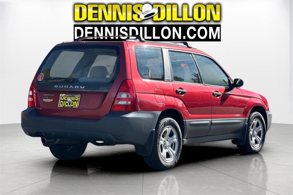 Red 2003 Subaru Forester 2.5X AWD 4-Speed Automatic with Overdrive 2.5L H4 SMPI SOHC 16" Styled Steel Wheels, 4 Speakers, 4.11 Axle Ratio, ABS brakes, Air Conditioning, AM/FM radio, AM/FM/WB Stereo w/Single Disc CD Player, Anti-whiplash front head restraints, CD player, Driver door bin, Driver vanity mirror, Dual front impact airbags, Dual front side impact airbags, Flat Woven Upholstery, Four wheel independent suspension, Front anti-roll bar, Front Bucket Seats, Front Center Armrest w/Storage, Front fog lights, Front reading lights, Front Sport Bucket Seats, Illuminated entry, Outside temperature display, Overhead console, Panic alarm, Passenger door bin, Passenger vanity mirror, Power door mirrors, Power steering, Power windows, Rear anti-roll bar, Rear window defroster, Rear window wiper, Remote keyless entry, Roof rack, Speed control, Speed-sensing steering, Split folding rear seat, Tachometer, Tilt steering wheel, Variably intermittent wipers, Weather band radio.